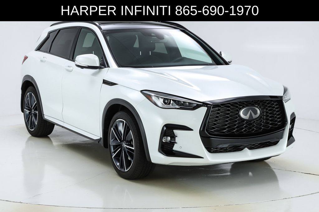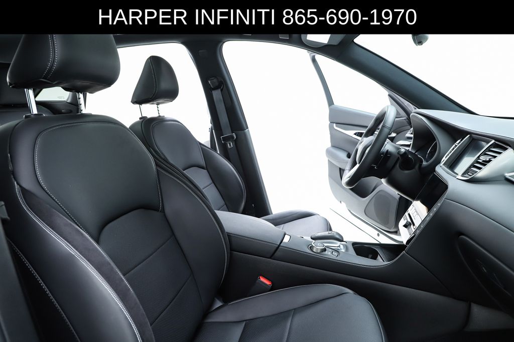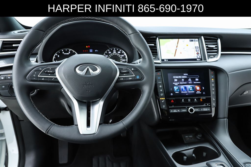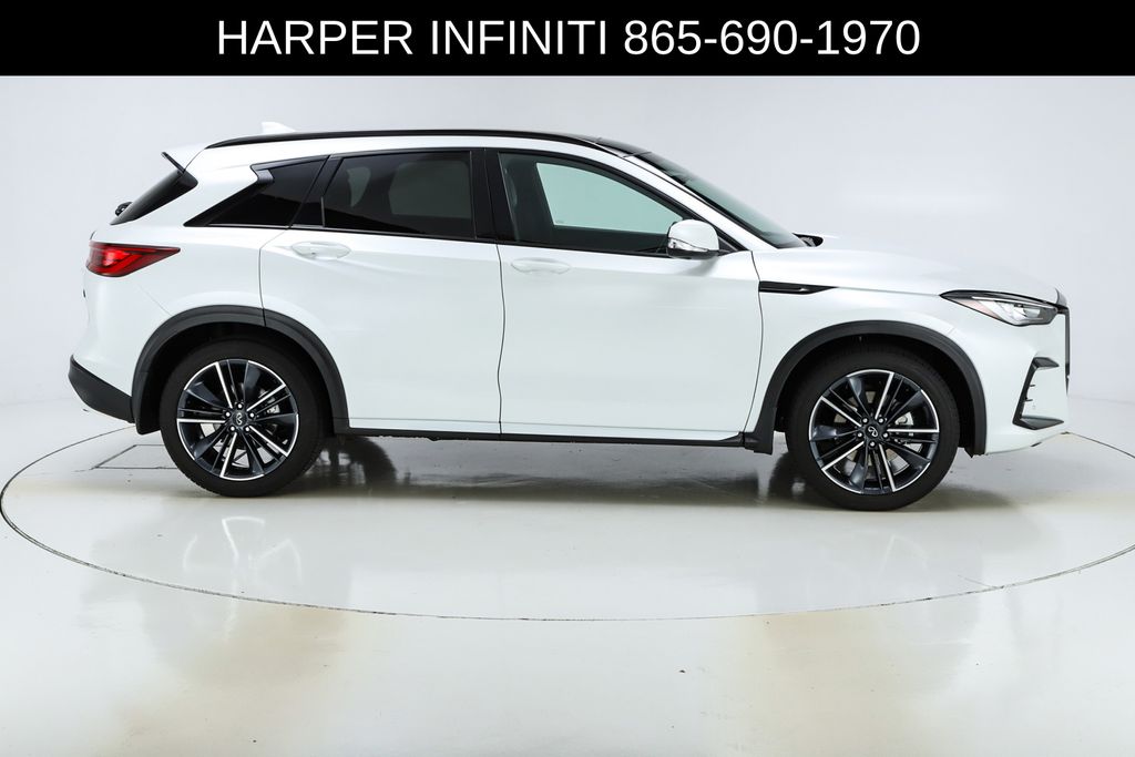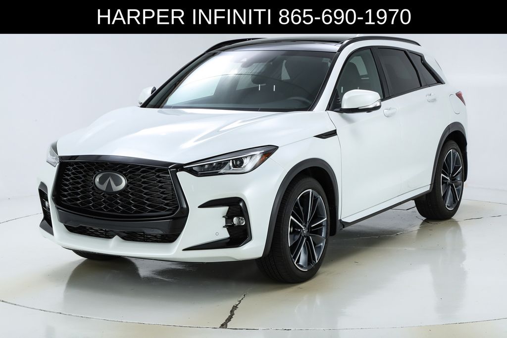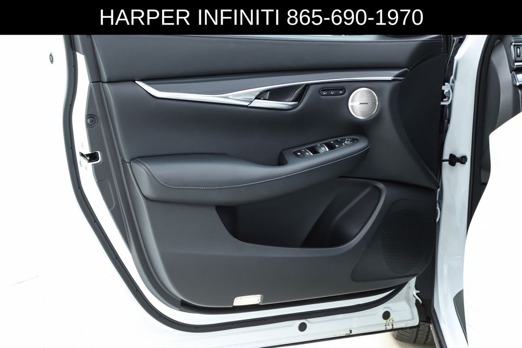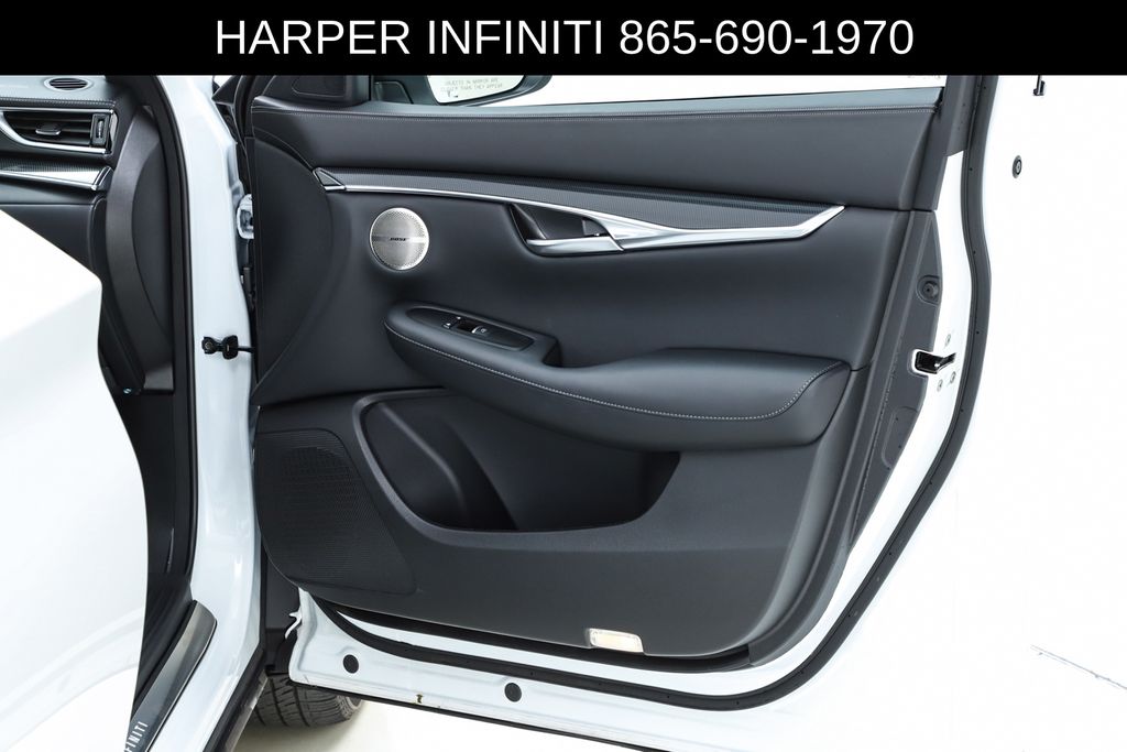 Harper INFINITI is pumped up to offer this good-looking 2025 INFINITI QX50 in Radiant White HARPER INFINITI believes in the quality of the vehicles we sell so well that we provide an UNLIMITED MILES, POWERTRAIN WARRANTY on every new and qualifying pre-owned vehicle it sells!!! This warranty is good at any ASE certified shop in the 48 continental United States!! Check out all these great options 12 Speakers, 4-Wheel Disc Brakes, ABS brakes, Air Conditioning, Alloy wheels, AM/FM radio: SiriusXM, Auto High-beam Headlights, Auto-dimming Rear-View mirror, Automatic temperature control, Bose Premium Audio System, Brake assist, Bumpers: body-color, CD player, Climate Controlled Front Bucket Seats, Delay-off headlights, Driver door bin, Driver vanity mirror, Dual front impact airbags, Dual front side impact airbags, Electronic Stability Control, Emergency communication system: INFINITI InTouch (1-year complimentary trial), Exterior Parking Camera Rear, Four wheel independent suspension, Front anti-roll bar, Front Bucket Seats, Front Center Armrest, Front dual zone A/C, Front fog lights, Front reading lights, Fully automatic headlights, Garage door transmitter: HomeLink, Heated door mirrors, Heated front seats, Heated steering wheel, Illuminated entry, Illuminated Kick Plates, Knee airbag, Leather Shift Knob, Leather steering wheel, Low tire pressure warning, Memory seat, Navigation system: INFINITI InTouch Navigation, Occupant sensing airbag, Outside temperature display, Overhead airbag, Overhead console, Panic alarm, Passenger door bin, Passenger vanity mirror, Power door mirrors, Power driver seat, Power Liftgate, Power moonroof, Power passenger seat, Power steering, Power windows, Radio data system, Rear anti-roll bar, Rear reading lights, Rear seat center armrest, Rear side impact airbag, Rear window defroster, Rear window wiper, Remote keyless entry, Security system, Semi-Aniline Leather-Appointed Seat Trim, Speed control, Speed-sensing steering, Speed-Sensitive Wipers, Splash Guards (Set of 4), Split folding rear seat, Spoiler, Steering wheel mounted audio controls, Tachometer, Telescoping steering wheel, Tilt steering wheel, Traction control, Trip computer, Turn signal indicator mirrors, Variably intermittent wipers, Ventilated front seats, and Wheels: 20" Dark-Painted Machine-Finished Alloy.