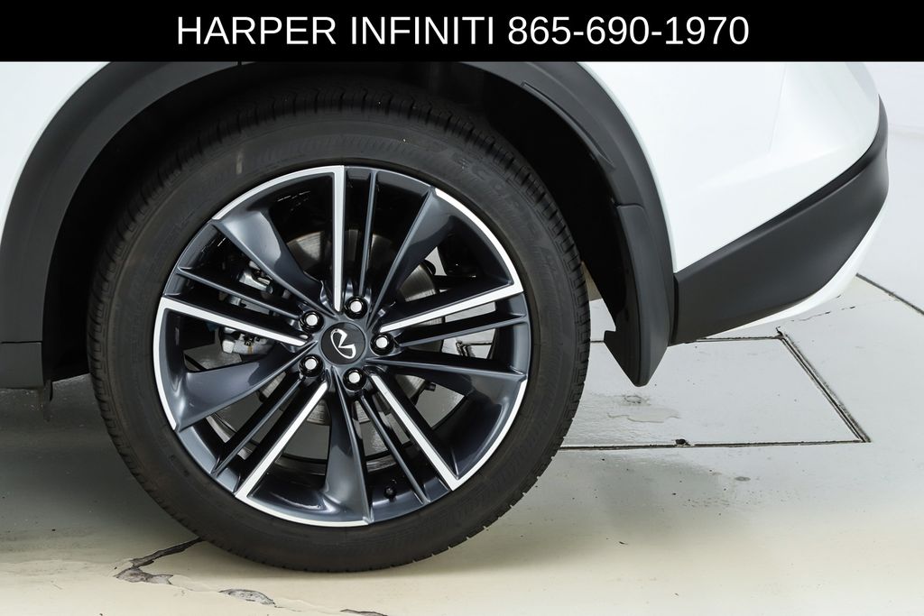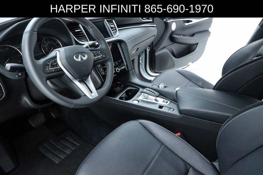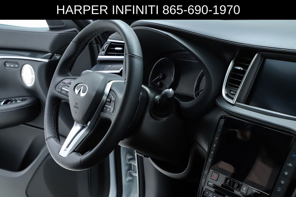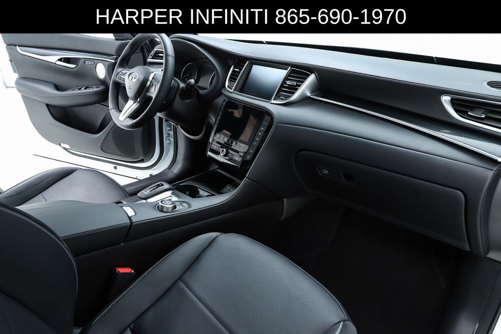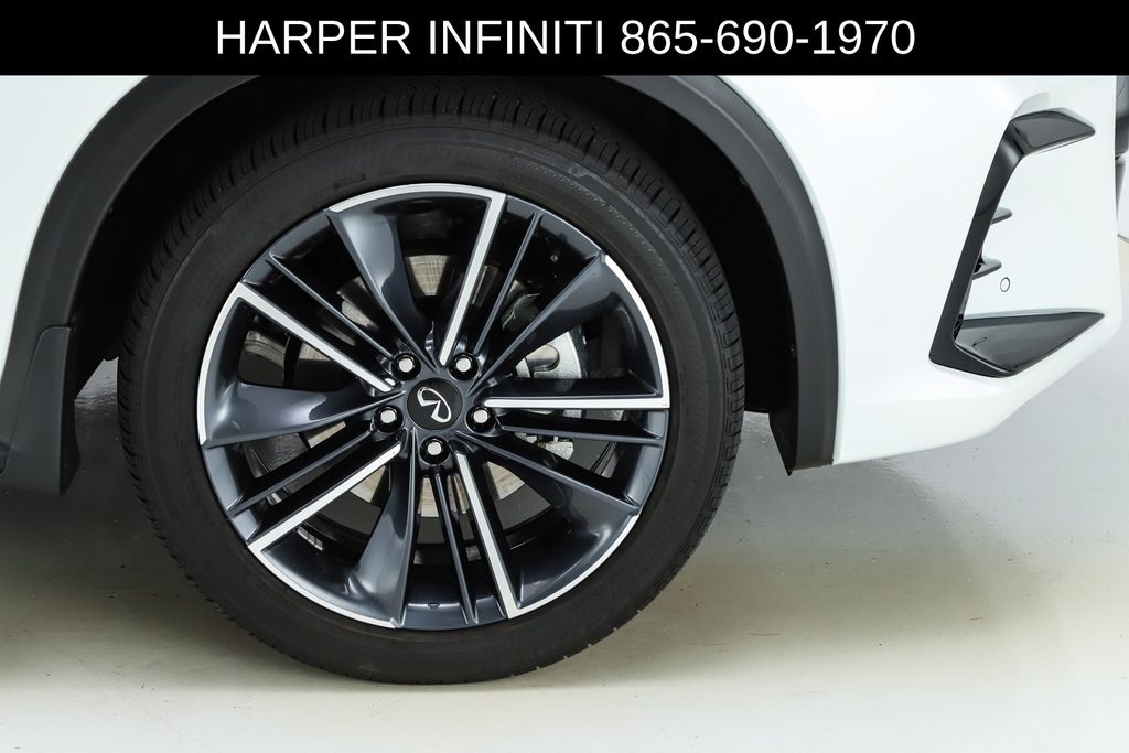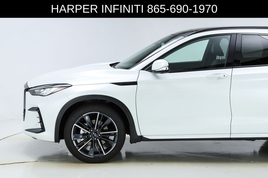 Harper INFINITI is pumped up to offer this good-looking 2025 INFINITI QX50 in Radiant White HARPER INFINITI believes in the quality of the vehicles we sell so well that we provide an UNLIMITED MILES, POWERTRAIN WARRANTY on every new and qualifying pre-owned vehicle it sells!!! This warranty is good at any ASE certified shop in the 48 continental United States!! Check out all these great options 12 Speakers, 4-Wheel Disc Brakes, ABS brakes, Air Conditioning, Alloy wheels, AM/FM radio: SiriusXM, Auto High-beam Headlights, Auto-dimming Rear-View mirror, Automatic temperature control, Bose Premium Audio System, Brake assist, Bumpers: body-color, CD player, Climate Controlled Front Bucket Seats, Delay-off headlights, Driver door bin, Driver vanity mirror, Dual front impact airbags, Dual front side impact airbags, Electronic Stability Control, Emergency communication system: INFINITI InTouch (1-year complimentary trial), Exterior Parking Camera Rear, Four wheel independent suspension, Front anti-roll bar, Front Bucket Seats, Front Center Armrest, Front dual zone A/C, Front fog lights, Front reading lights, Fully automatic headlights, Garage door transmitter: HomeLink, Heated door mirrors, Heated front seats, Heated steering wheel, Illuminated entry, Illuminated Kick Plates, Knee airbag, Leather Shift Knob, Leather steering wheel, Low tire pressure warning, Memory seat, Navigation system: INFINITI InTouch Navigation, Occupant sensing airbag, Outside temperature display, Overhead airbag, Overhead console, Panic alarm, Passenger door bin, Passenger vanity mirror, Power door mirrors, Power driver seat, Power Liftgate, Power moonroof, Power passenger seat, Power steering, Power windows, Radio data system, Rear anti-roll bar, Rear reading lights, Rear seat center armrest, Rear side impact airbag, Rear window defroster, Rear window wiper, Remote keyless entry, Security system, Semi-Aniline Leather-Appointed Seat Trim, Speed control, Speed-sensing steering, Speed-Sensitive Wipers, Splash Guards (Set of 4), Split folding rear seat, Spoiler, Steering wheel mounted audio controls, Tachometer, Telescoping steering wheel, Tilt steering wheel, Traction control, Trip computer, Turn signal indicator mirrors, Variably intermittent wipers, Ventilated front seats, and Wheels: 20" Dark-Painted Machine-Finished Alloy.