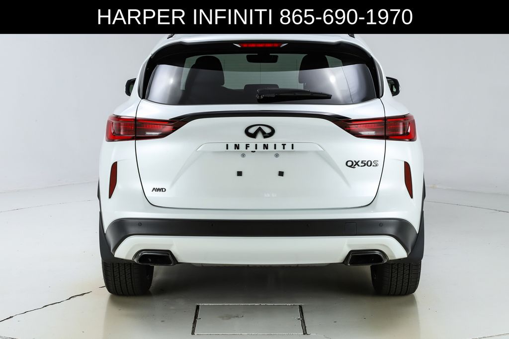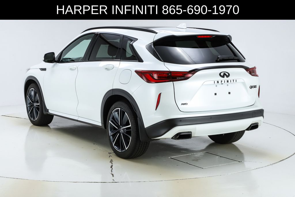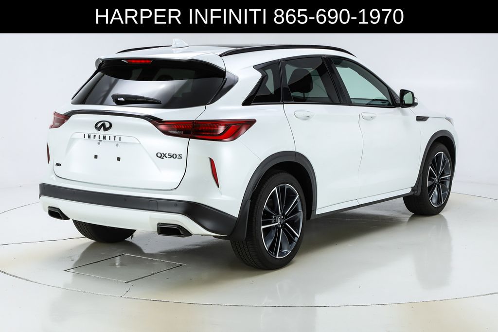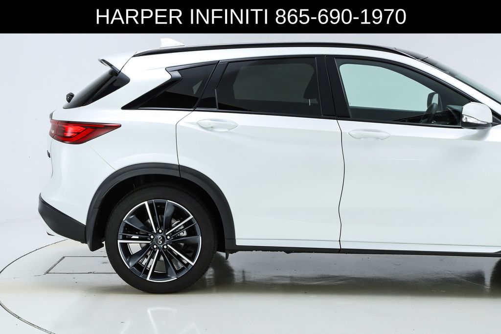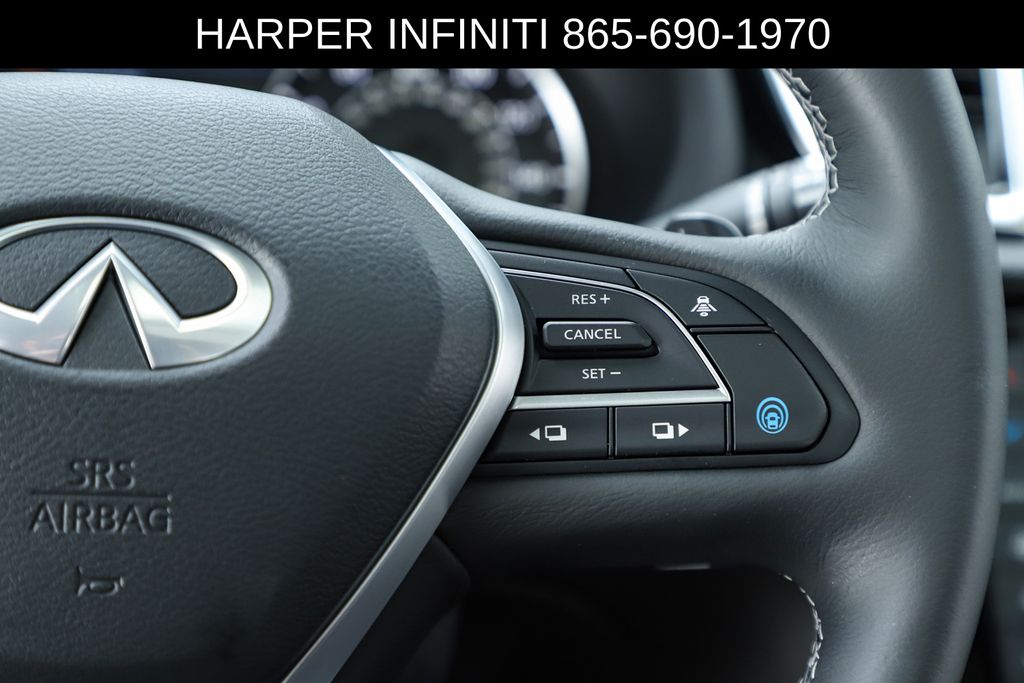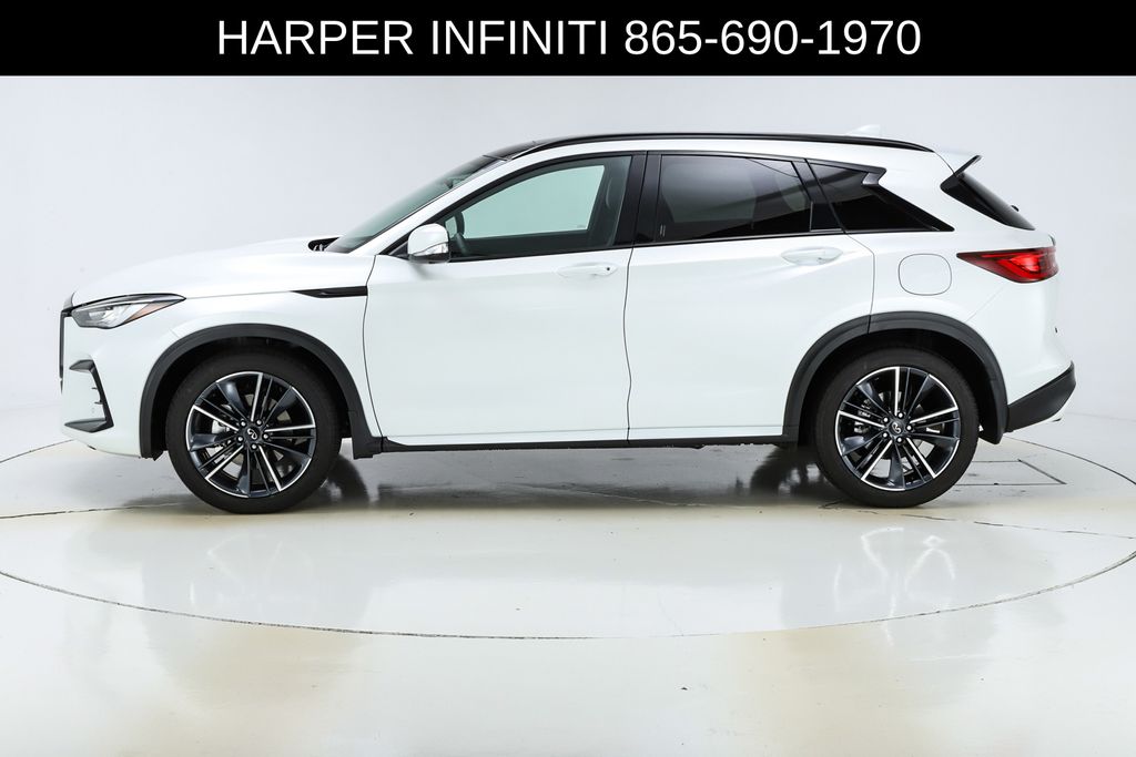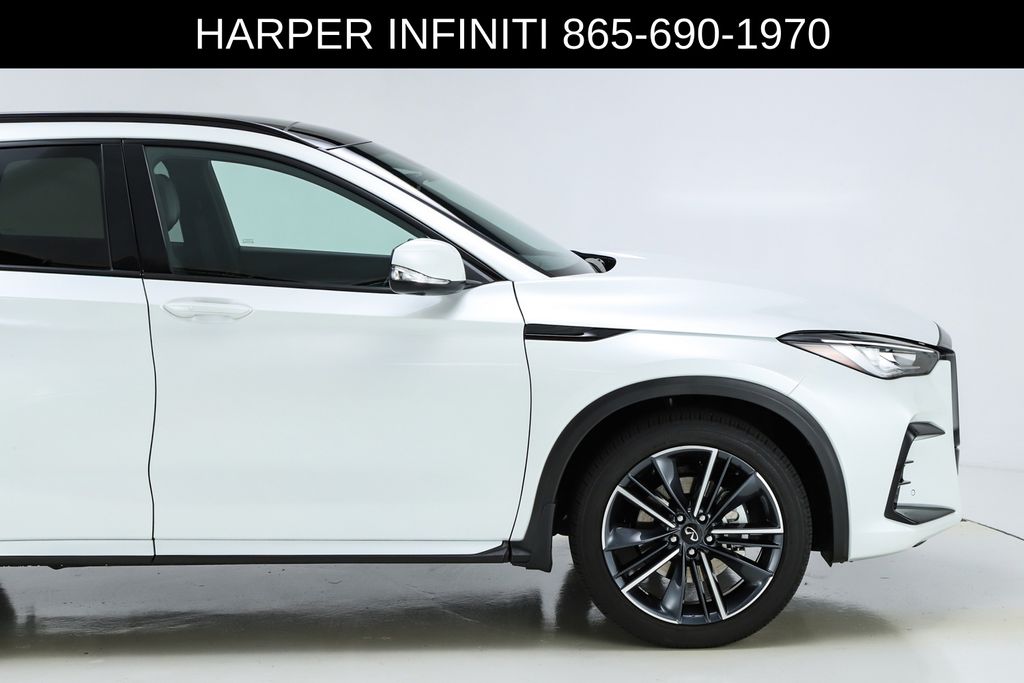 Harper INFINITI is pumped up to offer this good-looking 2025 INFINITI QX50 in Radiant White HARPER INFINITI believes in the quality of the vehicles we sell so well that we provide an UNLIMITED MILES, POWERTRAIN WARRANTY on every new and qualifying pre-owned vehicle it sells!!! This warranty is good at any ASE certified shop in the 48 continental United States!! Check out all these great options 12 Speakers, 4-Wheel Disc Brakes, ABS brakes, Air Conditioning, Alloy wheels, AM/FM radio: SiriusXM, Auto High-beam Headlights, Auto-dimming Rear-View mirror, Automatic temperature control, Bose Premium Audio System, Brake assist, Bumpers: body-color, CD player, Climate Controlled Front Bucket Seats, Delay-off headlights, Driver door bin, Driver vanity mirror, Dual front impact airbags, Dual front side impact airbags, Electronic Stability Control, Emergency communication system: INFINITI InTouch (1-year complimentary trial), Exterior Parking Camera Rear, Four wheel independent suspension, Front anti-roll bar, Front Bucket Seats, Front Center Armrest, Front dual zone A/C, Front fog lights, Front reading lights, Fully automatic headlights, Garage door transmitter: HomeLink, Heated door mirrors, Heated front seats, Heated steering wheel, Illuminated entry, Illuminated Kick Plates, Knee airbag, Leather Shift Knob, Leather steering wheel, Low tire pressure warning, Memory seat, Navigation system: INFINITI InTouch Navigation, Occupant sensing airbag, Outside temperature display, Overhead airbag, Overhead console, Panic alarm, Passenger door bin, Passenger vanity mirror, Power door mirrors, Power driver seat, Power Liftgate, Power moonroof, Power passenger seat, Power steering, Power windows, Radio data system, Rear anti-roll bar, Rear reading lights, Rear seat center armrest, Rear side impact airbag, Rear window defroster, Rear window wiper, Remote keyless entry, Security system, Semi-Aniline Leather-Appointed Seat Trim, Speed control, Speed-sensing steering, Speed-Sensitive Wipers, Splash Guards (Set of 4), Split folding rear seat, Spoiler, Steering wheel mounted audio controls, Tachometer, Telescoping steering wheel, Tilt steering wheel, Traction control, Trip computer, Turn signal indicator mirrors, Variably intermittent wipers, Ventilated front seats, and Wheels: 20" Dark-Painted Machine-Finished Alloy.