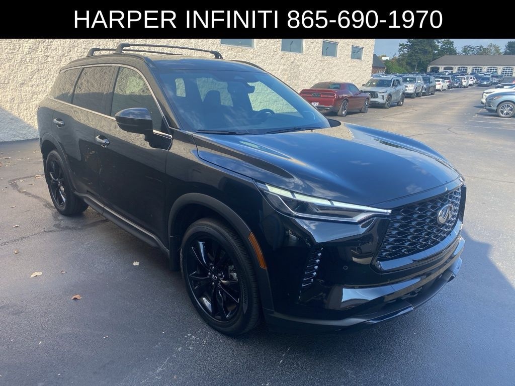 Harper INFINITI is very proud to offer this good-looking 2025 INFINITI QX60 in Mineral Black HARPER INFINITI believes in the quality of the vehicles we sell so well that we provide an UNLIMITED MILES, POWERTRAIN WARRANTY on every new and qualifying pre-owned vehicle it sells!!! This warranty is good at any ASE certified shop in the 48 continental United States!! Check out all these great options Navigation system: INFINITI InTouch Navigation, 3rd row seats: bench, 4-Wheel Disc Brakes, ABS brakes, Air Conditioning, Alloy wheels, AM/FM radio: SiriusXM, Auto High-beam Headlights, Auto tilt-away steering wheel, Auto-dimming Rear-View mirror, Automatic temperature control, Brake assist, Delay-off headlights, Driver door bin, Driver vanity mirror, Dual front impact airbags, Dual front side impact airbags, Electronic Stability Control, Exterior Parking Camera Rear, Four wheel independent suspension, Front anti-roll bar, Front Bucket Seats, Front dual zone A/C, Front reading lights, Fully automatic headlights, Garage door transmitter: HomeLink, Heated door mirrors, Heated front seats, Heated rear seats, Heated steering wheel, Illuminated entry, Knee airbag, Leather Shift Knob, Leather steering wheel, Leather-Appointed Seating Surfaces, Low tire pressure warning, Memory seat, Occupant sensing airbag, Outside temperature display, Overhead airbag, Overhead console, Panic alarm, Passenger door bin, Passenger vanity mirror, Power door mirrors, Power driver seat, Power Liftgate, Power moonroof, Power passenger seat, Power steering, Power windows, Radio data system, Rain sensing wipers, Rear air conditioning, Rear anti-roll bar, Rear reading lights, Rear side impact airbag, Rear window defroster, Rear window wiper, Reclining 3rd row seat, Remote keyless entry, Security system, Speed control, Speed-sensing steering, Speed-Sensitive Wipers, Split folding rear seat, Spoiler, Steering wheel memory, Steering wheel mounted audio controls, Tachometer, Telescoping steering wheel, Tilt steering wheel, Traction control, Trip computer, Turn signal indicator mirrors, and Variably intermittent wipers.