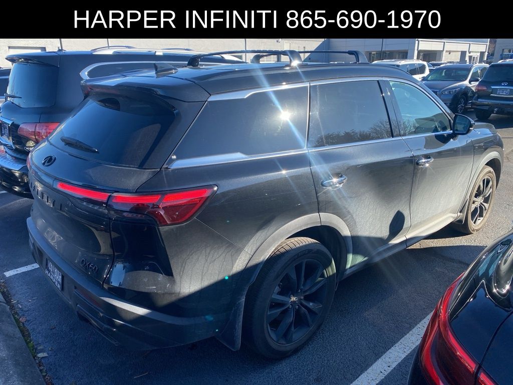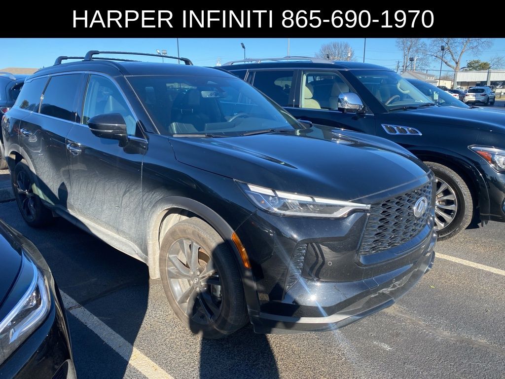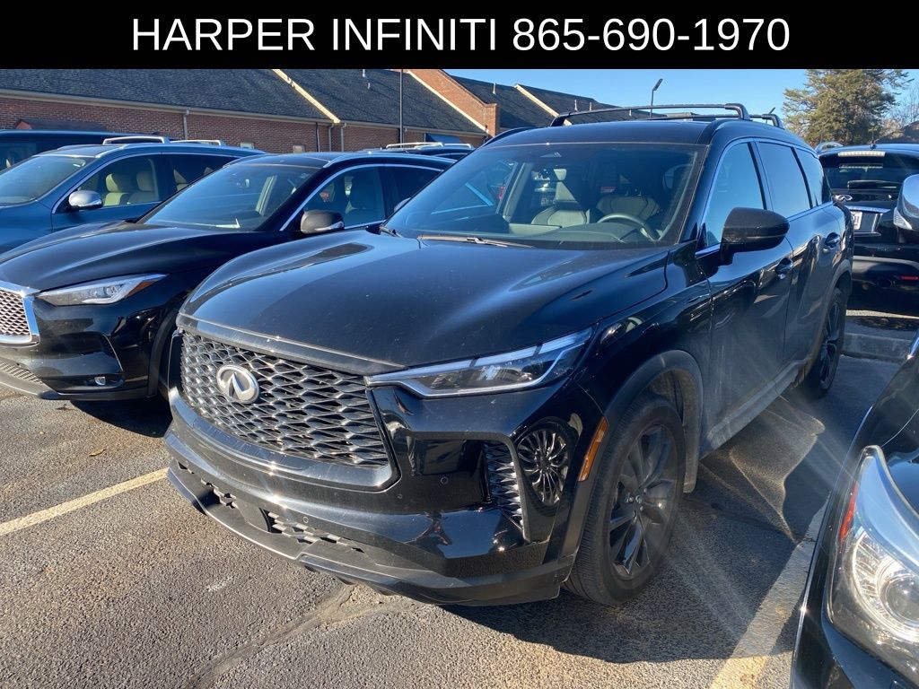 Harper INFINITI is pumped up to offer this charming 2025 INFINITI QX60 in Mineral Black HARPER INFINITI believes in the quality of the vehicles we sell so well that we provide an UNLIMITED MILES, POWERTRAIN WARRANTY on every new and qualifying pre-owned vehicle it sells!!! This warranty is good at any ASE certified shop in the 48 continental United States!! Check out all these great options Black Edition (Gloss Black Finish BI & Emblems, Gloss Black Finish Grille Surround, Gloss Black Finish Rear Badge, Gloss Black Finish Roof Rails, Illuminated Front & Rear Kick Plates, Radiant Grille BI in Bright Chrome Finish, Welcome Lighting, and Wheels: 20" x 8J Sporty Mach Aluminum Alloy), 17 Speakers, 3rd row seats: bench, 4-Wheel Disc Brakes, ABS brakes, Air Conditioning, Alloy wheels, AM/FM radio: SiriusXM, Anti-whiplash front head restraints, Apple CarPlay/Android Auto, Auto High-beam Headlights, Auto tilt-away steering wheel, Auto-dimming door mirrors, Auto-dimming Rear-View mirror, Automatic temperature control, Black Cross Bar, Black Edition (K12), Bose Performance Series 17-Speaker Sound System, Brake assist, Bumpers: body-color, Climate Controlled Front Bucket Seats, Delay-off headlights, Driver door bin, Driver vanity mirror, Dual front impact airbags, Dual front side impact airbags, Electronic Stability Control, Emergency communication system: INFINITI InTouch, Exterior Parking Camera Rear, Floor Mats w/Bench Seats on 3rd Row Tray, Four wheel independent suspension, Front anti-roll bar, Front Bucket Seats, Front Center Armrest, Front dual zone A/C, Front reading lights, Fully automatic headlights, Garage door transmitter: HomeLink, Heated door mirrors, Heated front seats, Heated rear seats, Heated steering wheel, Illuminated entry, Knee airbag, Leather Shift Knob, Leather steering wheel, Leather-Appointed Seating Surfaces, Literature Kit, Low tire pressure warning, Memory seat, Navigation system: INFINITI InTouch Navigation, Occupant sensing airbag, Outside temperature display, Overhead airbag, Overhead console, Panic alarm, Passenger door bin, Passenger vanity mirror, Power door mirrors, Power driver seat, Power Liftgate, Power moonroof, Power passenger seat, Power steering, Power windows, Premium Paint, Radio data system, Radio: Bose Performance Series, Rain sensing wipers, Rear air conditioning, Rear anti-roll bar, Rear reading lights, Rear seat center armrest, Rear side impact airbag, Rear window defroster, Rear window wiper, Reclining 3rd row seat, Remote keyless entry, Security system, Speed control, Speed-sensing steering, Speed-Sensitive Wipers, Splash Guards, Split folding rear seat, Spoiler, Steering wheel memory, Steering wheel mounted audio controls, Tachometer, Telescoping steering wheel, Tilt steering wheel, Traction control, Trip computer, Turn signal indicator mirrors, Variably intermittent wipers, Ventilated front seats, and Wheels: 20" x 8J Sporty Machined Aluminum Alloy.