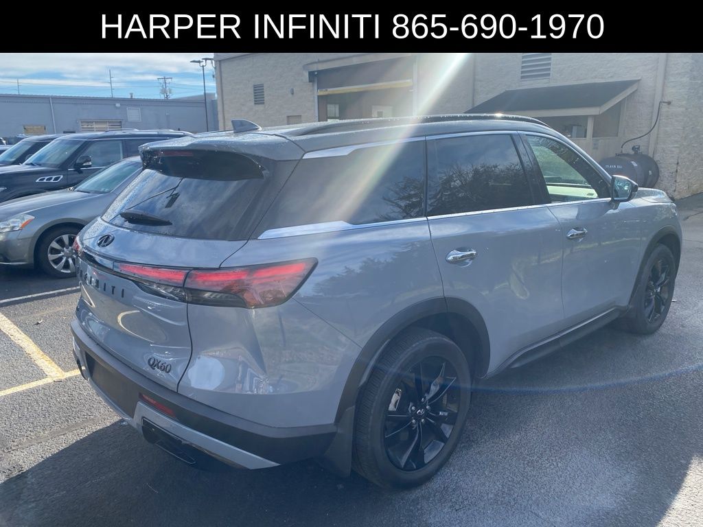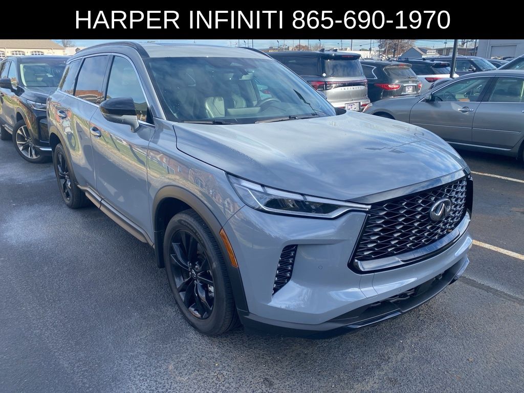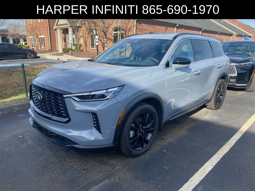 Harper INFINITI is proud to offer this wonderful-looking 2025 INFINITI QX60 in Harbor Gray HARPER INFINITI believes in the quality of the vehicles we sell so well that we provide an UNLIMITED MILES, POWERTRAIN WARRANTY on every new and qualifying pre-owned vehicle it sells!!! This warranty is good at any ASE certified shop in the 48 continental United States!! Check out all these great options 3rd row seats: bench, 4-Wheel Disc Brakes, ABS brakes, Air Conditioning, Alloy wheels, AM/FM radio: SiriusXM, Auto High-beam Headlights, Auto tilt-away steering wheel, Auto-dimming Rear-View mirror, Automatic temperature control, Brake assist, Delay-off headlights, Driver door bin, Driver vanity mirror, Dual front impact airbags, Dual front side impact airbags, Electronic Stability Control, Exterior Parking Camera Rear, Four wheel independent suspension, Front anti-roll bar, Front Bucket Seats, Front dual zone A/C, Front reading lights, Fully automatic headlights, Garage door transmitter: HomeLink, Heated door mirrors, Heated front seats, Heated rear seats, Heated steering wheel, Illuminated entry, Knee airbag, Leather Shift Knob, Leather steering wheel, Leather-Appointed Seating Surfaces, Low tire pressure warning, Memory seat, Navigation system: INFINITI InTouch Navigation, Occupant sensing airbag, Outside temperature display, Overhead airbag, Overhead console, Panic alarm, Passenger door bin, Passenger vanity mirror, Power door mirrors, Power driver seat, Power Liftgate, Power moonroof, Power passenger seat, Power steering, Power windows, Radio data system, Rain sensing wipers, Rear air conditioning, Rear anti-roll bar, Rear reading lights, Rear side impact airbag, Rear window defroster, Rear window wiper, Reclining 3rd row seat, Remote keyless entry, Security system, Speed control, Speed-sensing steering, Speed-Sensitive Wipers, Split folding rear seat, Spoiler, Steering wheel memory, Steering wheel mounted audio controls, Tachometer, Telescoping steering wheel, Tilt steering wheel, Traction control, Trip computer, Turn signal indicator mirrors, and Variably intermittent wipers.