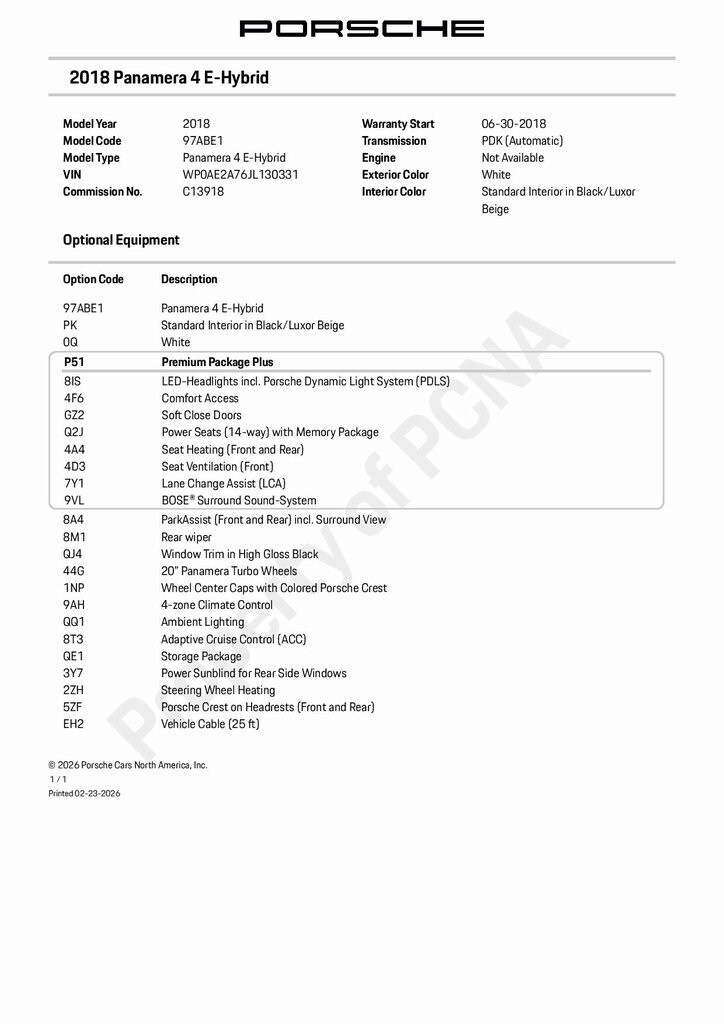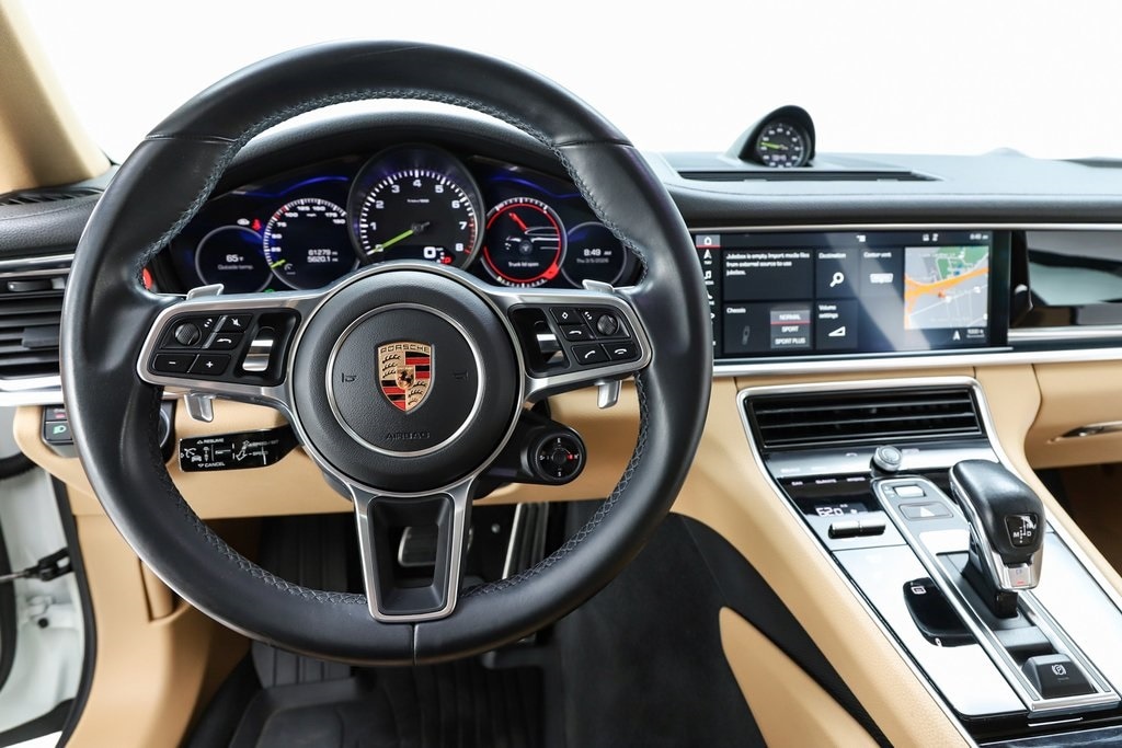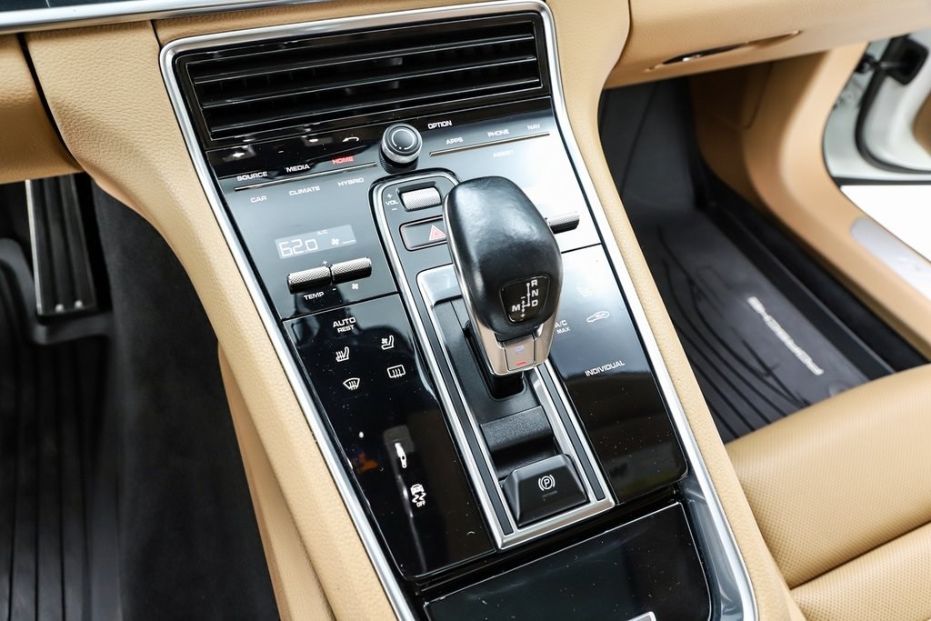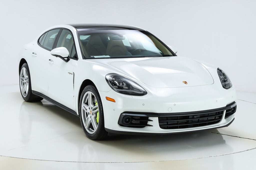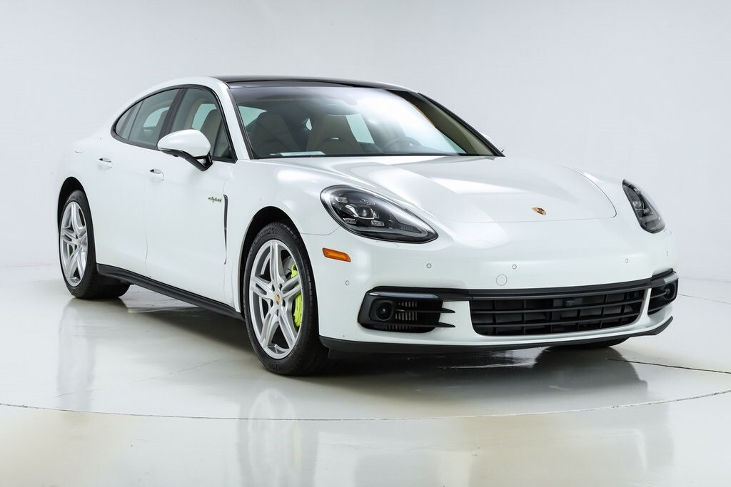 2018 Porsche Panamera E-Hybrid 4 AWD in White over Black/Luxor Brige leather interior. V6 mated to a 8-Speed Porsche Doppelkupplung (PDK) Transmission. For all options, please view the Porsche Build Sheet located within the vehicle's photos. Our Pre-Owned vehicles are priced to market, making the transaction as transparent and hassle-free as possible.