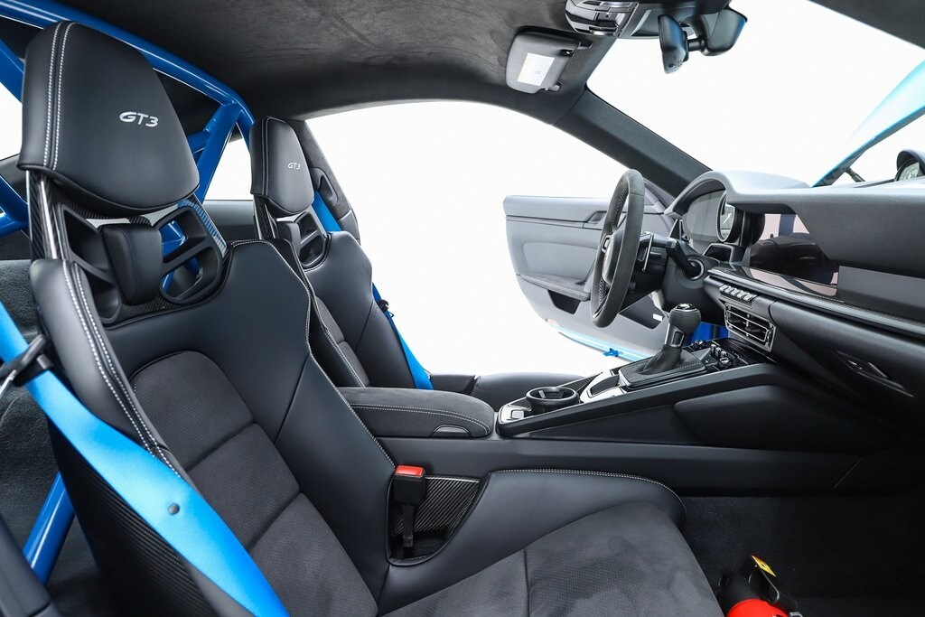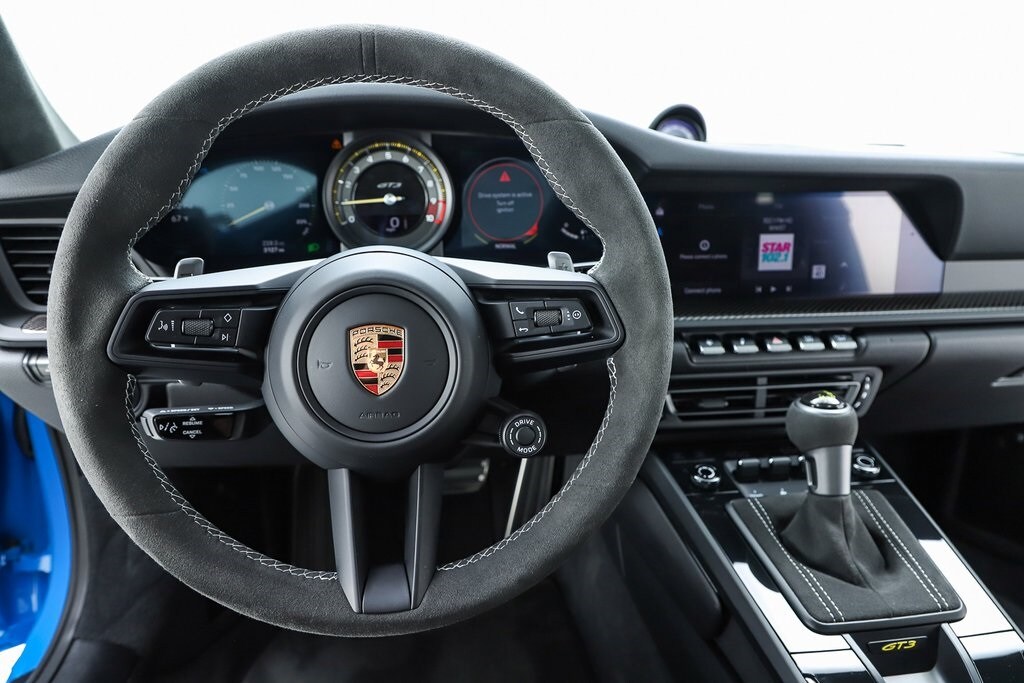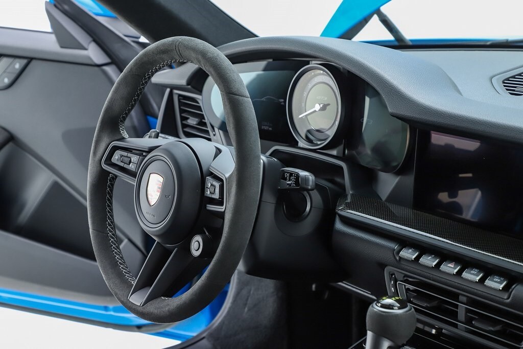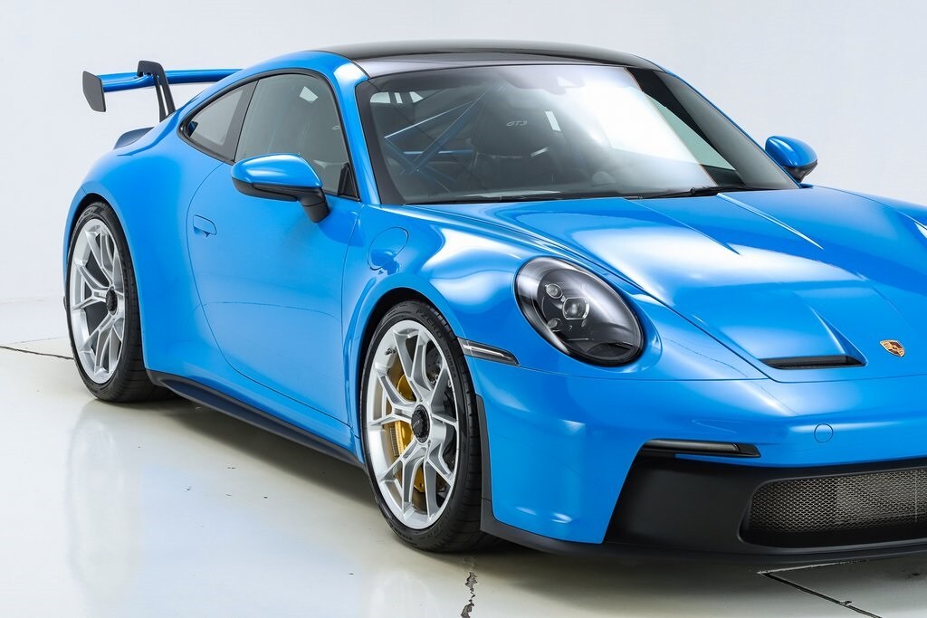 2023 Porsche 911 GT3 RWD in Shark Blue over Black interior with GT Silver Stiching and Leather/Race-Tex trim. 4.0L H6 with 502hp mated to a 7-Speed Porsche Doppelkupplung (PDK) Transmission. For all options, please view the Porsche Build Sheet located within the vehicle's photos.