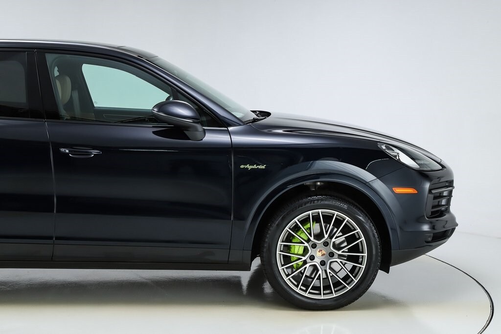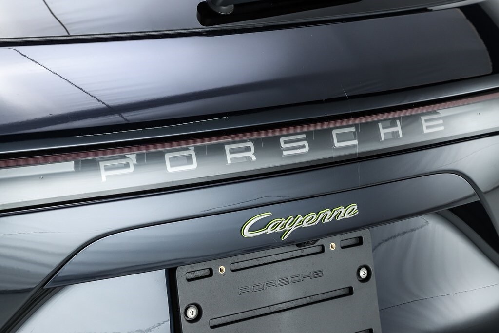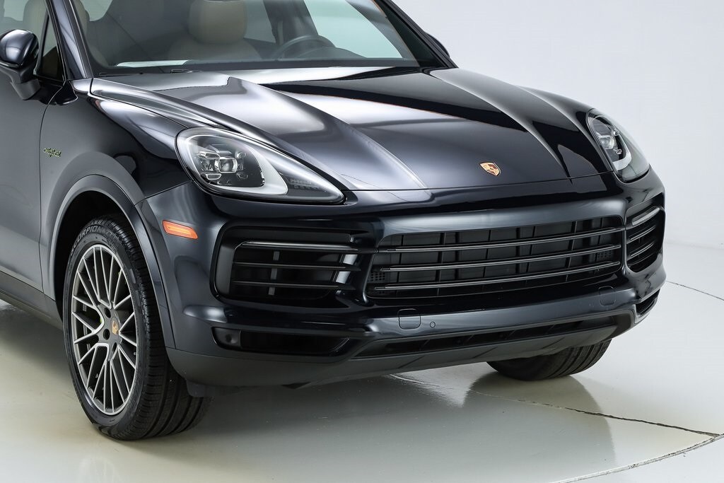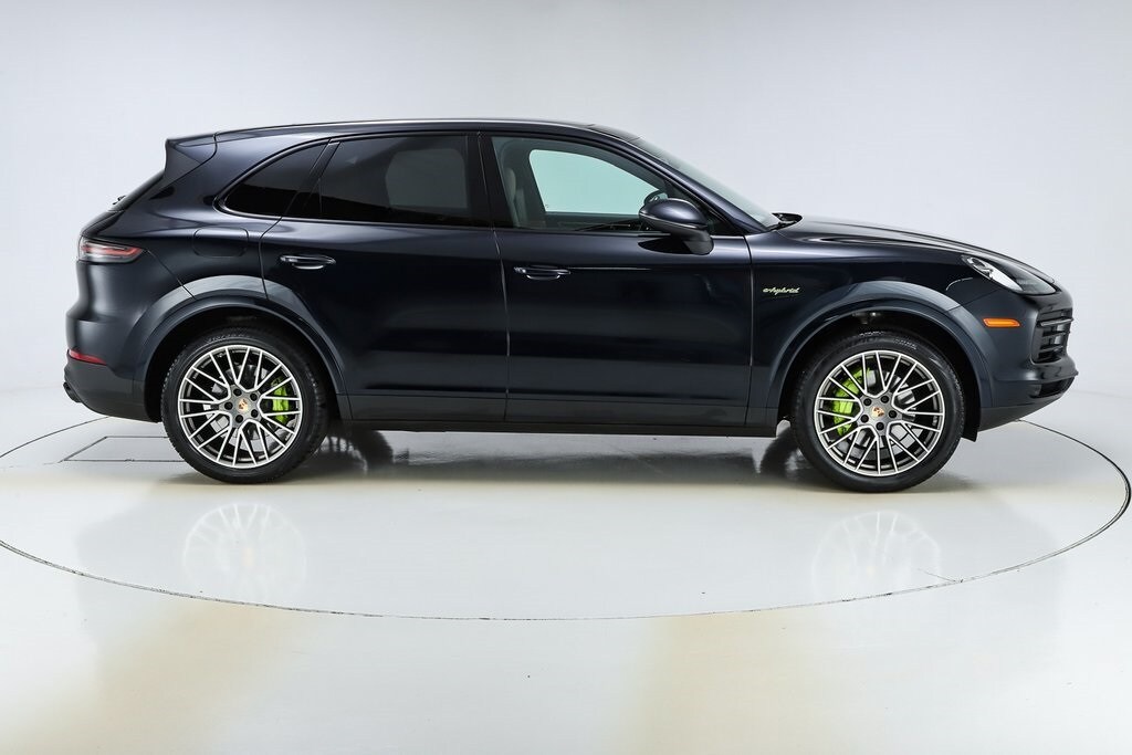Locally owned 1-owneer! 2023 Porsche Cayenne E-Hybrid Platinum Edition AWD in Moonlight Blue Metallic over Black/Mojave Beige leather interior. Electric and Gas Motor mated to a 8-Speed Automatic with Tiptronic Transmission. For all options, please view the Porsche Build Sheet located within the vehicle's photos.