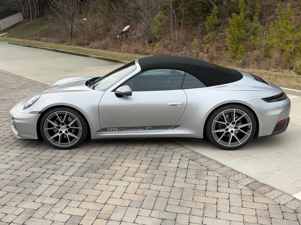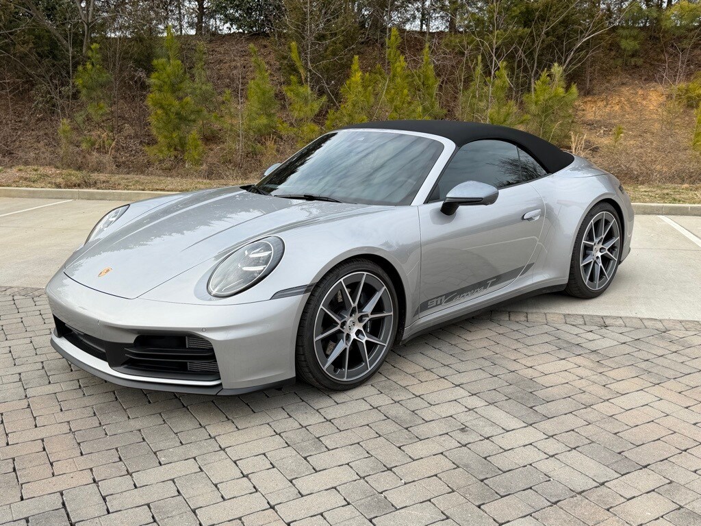 Locally owned 2025 Porsche 911 Carrera T in GT Silver Metallic over Black leather interior. 3.0L H6 with 388hp mated to a 6-Speed Manual Transmission. For all options, please view the Porsche Build Sheet located within the vehicle's photos.