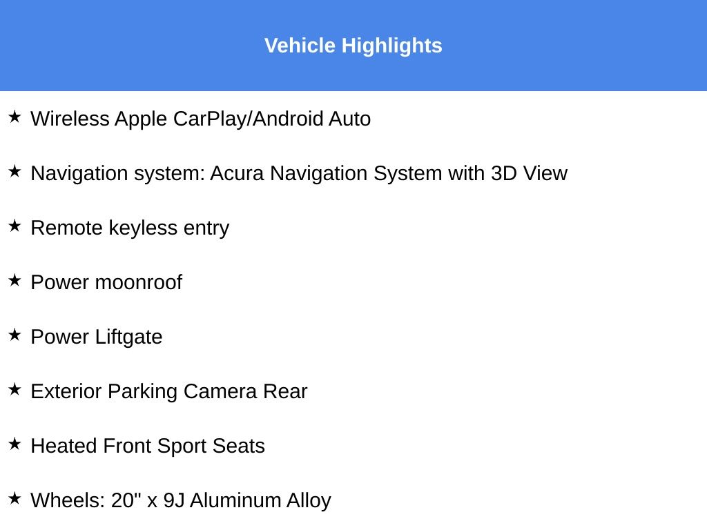 - Navigation system: Acura Navigation System with 3D View
