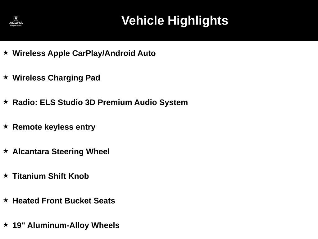 Outfitted with a powerful 2.0L I4 DOHC 16V engine and a slick 6-Speed Manual transmission, the Integra Type S offers a thrilling and engaging driving dynamic that will ignite your senses. Wireless Apple CarPlay and Android Auto integration, along with a wireless charging pad, ensure seamless connectivity and convenience at your fingertips.