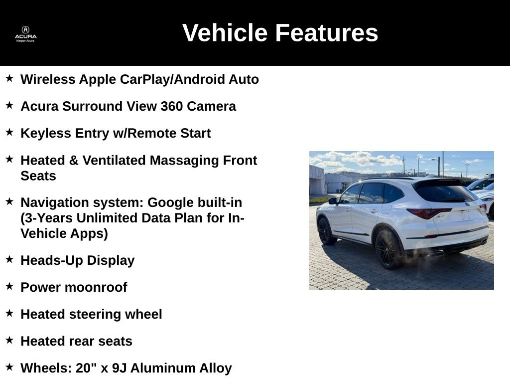 Innovative technologies abound, including the Acura Surround View 360 Camera, which provides a bird's-eye view of your surroundings for effortless parking and maneuvering. The Heads-Up Display projects critical information directly into your line of sight, keeping you focused on the road ahead.
