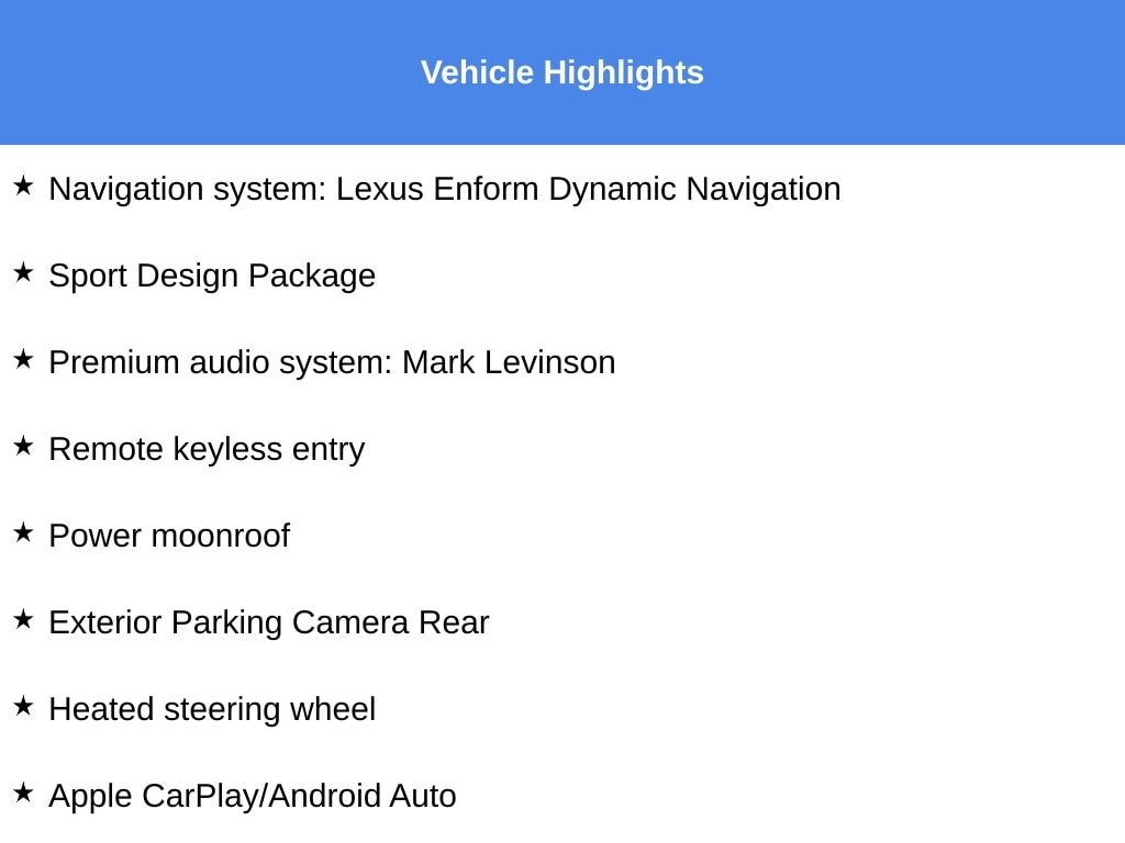 ⢠Navigation system: Lexus Enform Dynamic Navigation