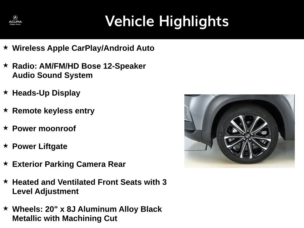 This CX-50 is packed with a wealth of premium features that elevate the driving experience. Enjoy the convenience of the power liftgate, the clarity of the Bose 12-speaker audio system, and the added safety of the Heads-Up Display. The heated and ventilated front seats provide optimal comfort, while the 20-inch alloy wheels with a striking black metallic finish give the vehicle a bold, sporty appearance.