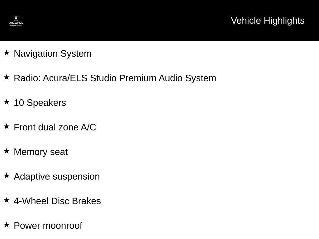 - Premium audio system: Acura/ELS Studio
