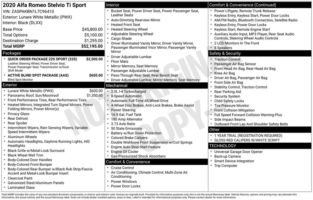 Looked at the field and was completely blown away by Stelvio. It has an amazing build, fun to drive, and handles like a sportscar. In fact, I was looking at Gulia and see very little difference in handling between it and Stelvio. It has all the safety features you can want, and great performance- a winning combination. Have had no new car glitches and runs well city or on the road. The lack of Apple or Android is my only disappointment. It will be available later this year. Should have waited but I would have missed the fun having it now. . - 5.0