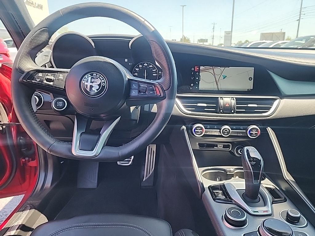 Beneath the sculpted exterior lies a potent I4 engine mated to an 8-speed automatic transmission, delivering an exhilarating driving experience with 24 city / 33 highway MPG. The Veloce trim level elevates the Giulia with performance-focused features, including a limited-slip differential, aluminum paddle shifters, and a sport-tuned suspension for exceptional handling.