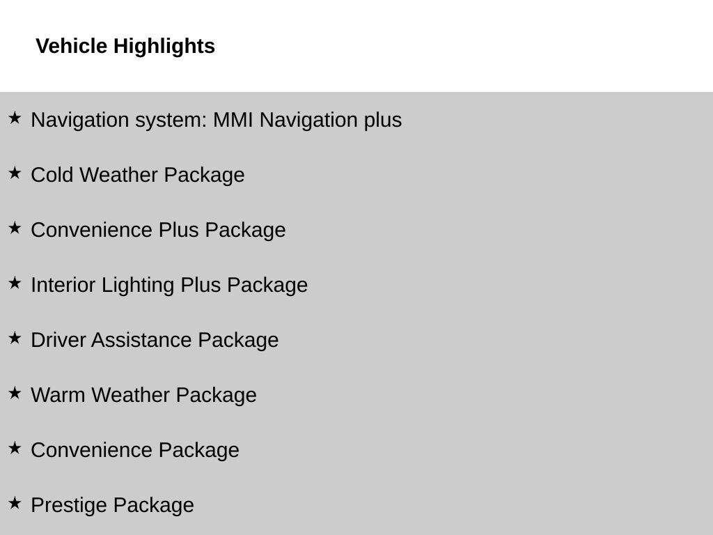 - Smart device integration: Audi smartphone interface (Apple CarPlay/Android Auto)