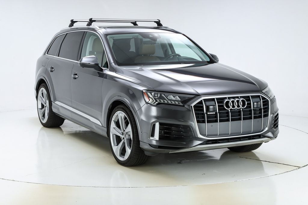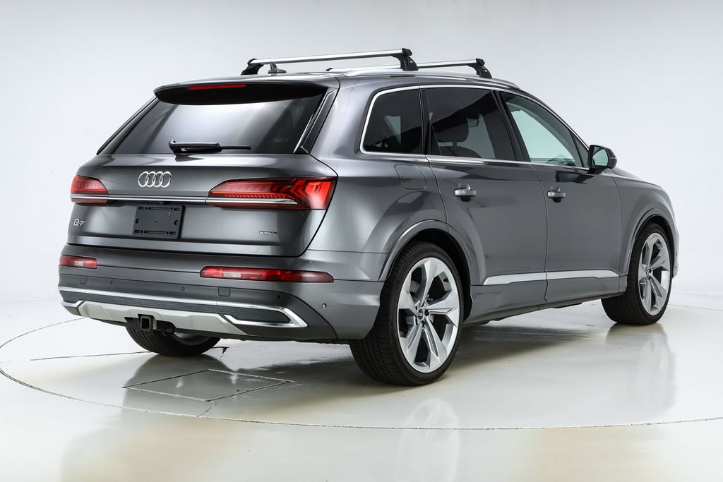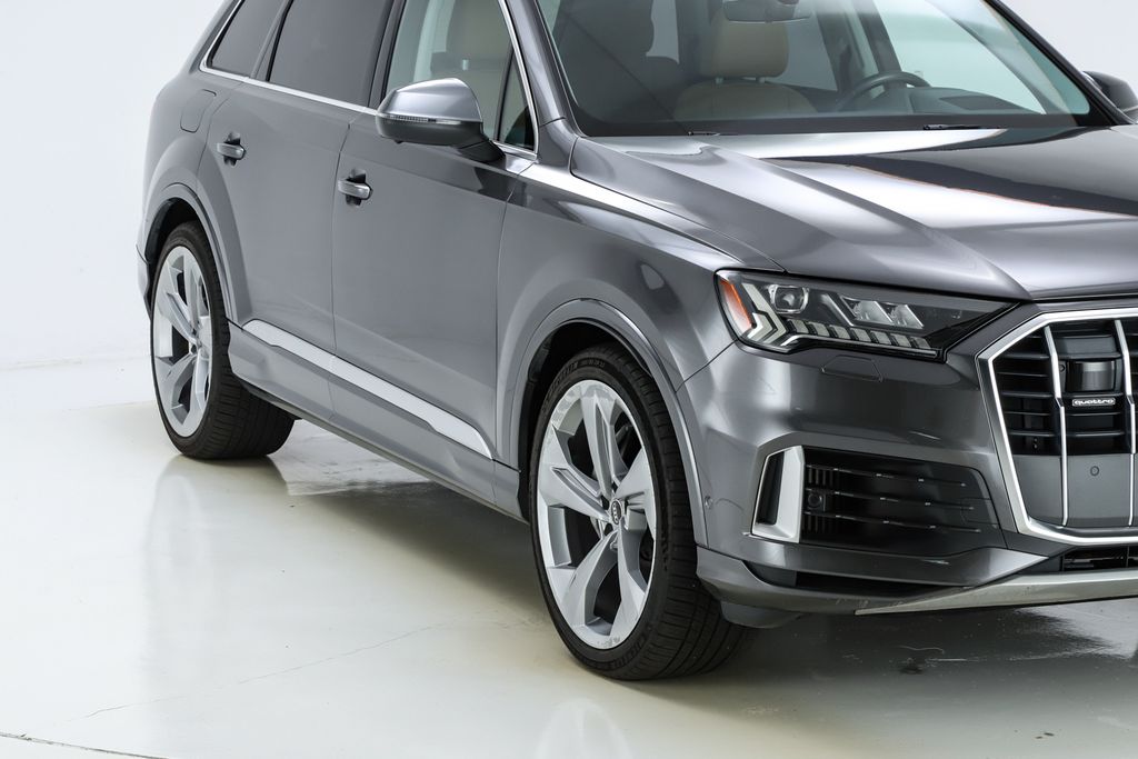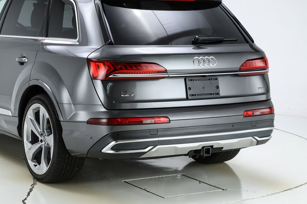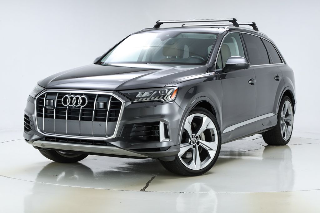 Check out all these great options Ambient Interior Lighting Package, Contour/Ambient LED Interior Lighting Package, Convenience Package (3-Spoke Multifunction Steering Wheel w/Paddles, Audi Phone Box w/Wireless Charging, Heated Auto-Dimming Power Folding Exterior Mirrors, and Topview Camera System), Executive Package (4-Zone Automatic Climate Control, Audi Active Lane Assist w/Emergency Assist, Audi Adaptive Cruise Assist w/Traffic Jam Assist, Driver & Passenger Front Seats w/Ventilation, Heated Rear Seats, and Rear Door/Side Windows & Tailgate Sunshades), Interior Protection Package, Prestige Package (Bang & Olufsen 3D Premium Sound System, Comfort Adaptive Air Suspension, Dual-Pane Acoustic Side Windows, Head-Up Display, Illuminated Door Sills, Intersection Assist, Matrix-Design LED Headlights, Power Soft-Closing Doors, Traffic Sign Recognition, and Wheels: 20" 5-Spoke Turbine-Design), Towing Package (Tow Hitch Receiver), 10 Speakers, 3.204 Axle Ratio, 3rd row seats: bench, 4-Wheel Disc Brakes, ABS brakes, Air Conditioning, Alloy wheels, AM/FM radio: SiriusXM, Audi smartphone interface (Apple CarPlay/Android Auto), Auto High-beam Headlights, Auto-dimming Rear-View mirror, Automatic temperature control, Brake assist, Bumpers: body-color, Compass, Delay-off headlights, Driver door bin, Driver vanity mirror, Dual front impact airbags, Dual front side impact airbags, Electronic Stability Control, Emergency communication system: Audi connect CARE, PRIME & PLUS, Exterior Parking Camera Rear, Four wheel independent suspension, Front & Rear Doors Audi Beam-Rings, Front anti-roll bar, Front Bucket Seats, Front Center Armrest, Front dual zone A/C, Front fog lights, Front reading lights, Fully automatic headlights, Garage door transmitter: HomeLink, Genuine wood door panel insert, Heated door mirrors, Heated Front Bucket Seats, Heated front seats, Illuminated entry, Leather Seating Surfaces, Leather Shift Knob, Leather steering wheel, Low tire pressure warning, Memory seat, Navigation system: Audi MMI Navigation plus with Touch Response, Occupant sensing airbag, Outside temperature display, Overhead airbag, Overhead console, Panic alarm, Passenger door bin, Passenger vanity mirror, Power door mirrors, Power driver seat, Power Liftgate, Power moonroof, Power passenger seat, Power steering, Power windows, Privacy Trunk Cover, Radio data system, Radio: Audi Sound System, Rain sensing wipers, Rear air conditioning, Rear anti-roll bar, Rear fog lights, Rear reading lights, Rear seat center armrest, Rear window defroster, Rear window wiper, Reclining 3rd row seat, Remote keyless entry, Roof rack: rails only, Security system, Speed control, Speed-sensing steering, Split folding rear seat, Spoiler, Steering wheel memory, Steering wheel mounted audio controls, Tachometer, Telescoping steering wheel, Tilt steering wheel, Traction control, Trip computer, Turn signal indicator mirrors, Variably intermittent wipers, Wheels: 19" 5-Arm-Star Design, and Wheels: 22" Audi Sport 5-Arm-Edge Design. Please contact Harper Audi at (865) 691-2834 for details. Come see why Harper has the easiest car buying experience in the South! Samurai Gray Metallic quattro 8-Speed Automatic with Tiptronic 3.0L TFSI V6 DOHC 2021 Audi Q7 55 Prestige in Samurai Gray Metallic, 3-Spoke Multifunction Steering Wheel w/Paddles, 4-Zone Automatic Climate Control, Ambient Interior Lighting Package, Audi Active Lane Assist w/Emergency Assist, Audi Adaptive Cruise Assist w/Traffic Jam Assist, Audi Phone Box w/Wireless Charging, Bang & Olufsen 3D Premium Sound System, Comfort Adaptive Air Suspension, Contour/Ambient LED Interior Lighting Package, Convenience Package, Driver & Passenger Front Seats w/Ventilation, Dual-Pane Acoustic Side Windows, Executive Package, Head-Up Display, Heated Auto-Dimming Power Folding Exterior Mirrors, Heated Rear Seats, Illuminated Door Sills, Interior Protection Package, Intersection Assist, Matrix-Design LED Headlights, Power Soft-Closing Doors, Prestige