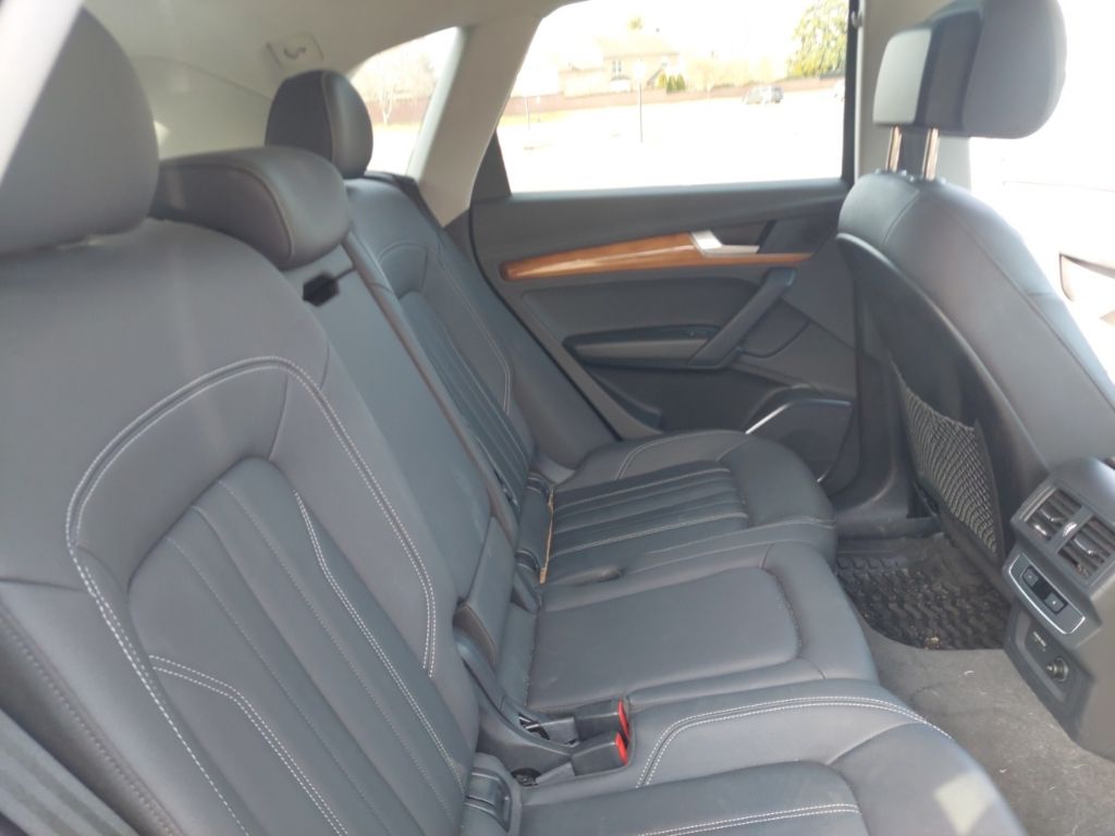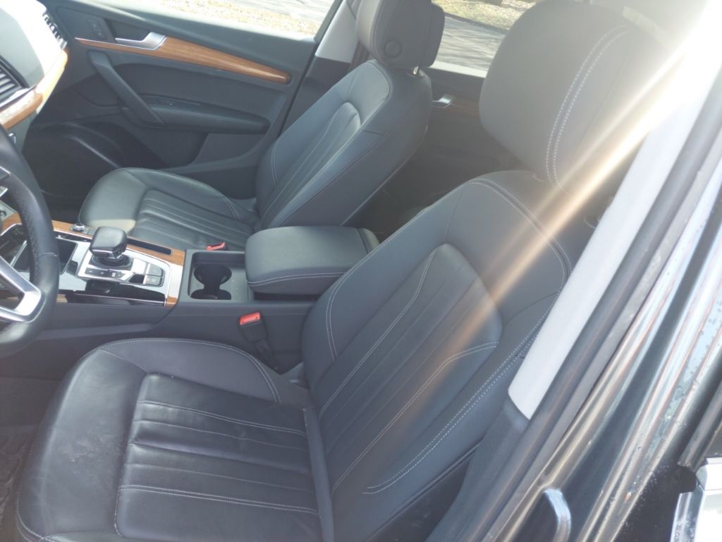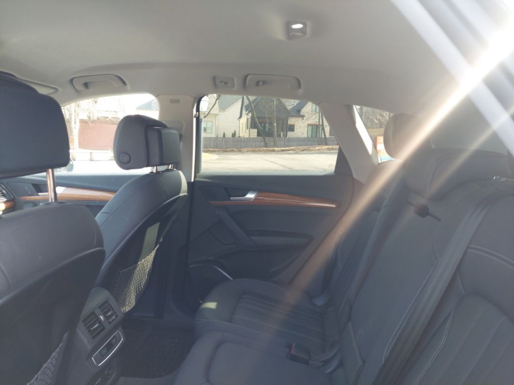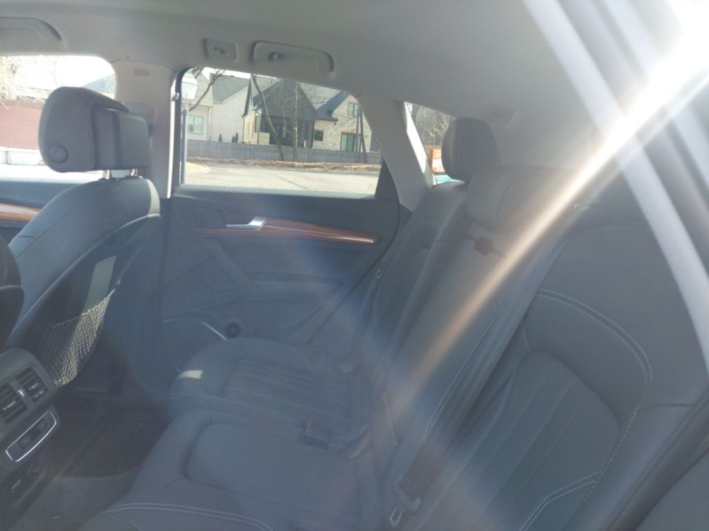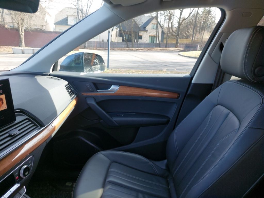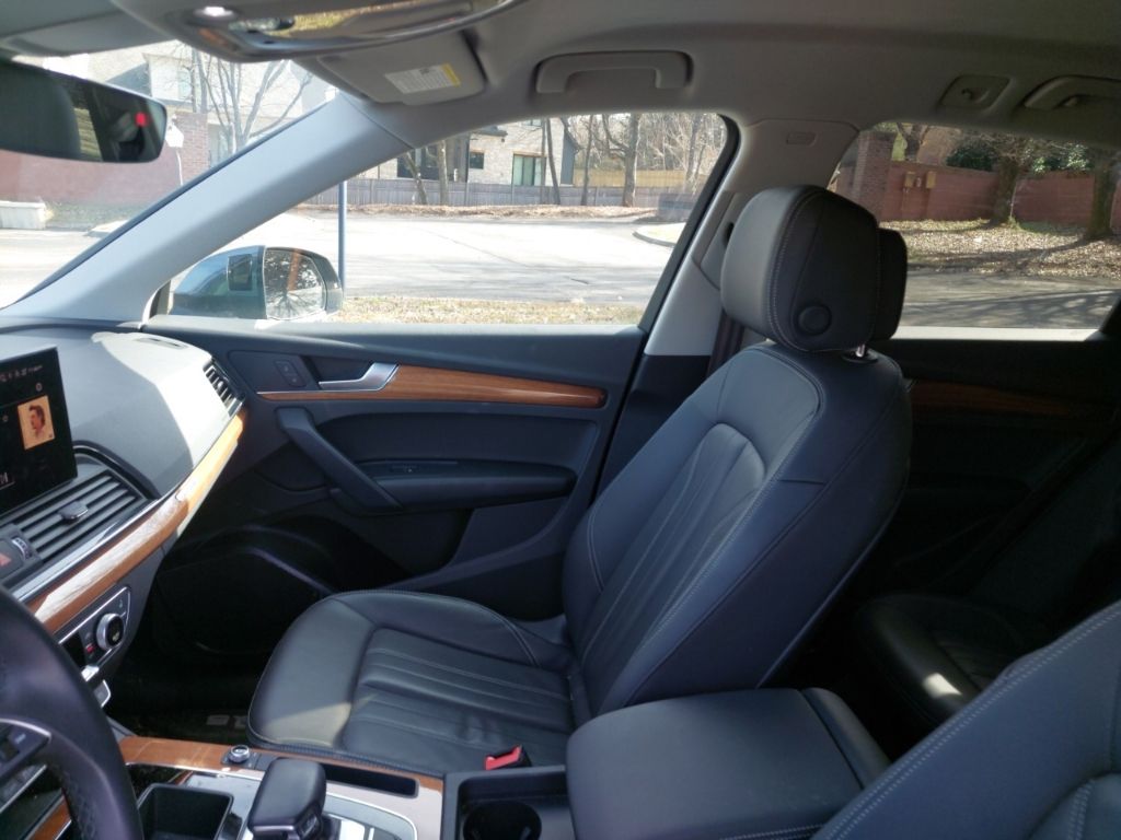 Q5 Prestige with Warm Weather package (Sport Seat both front seats identical with cool ventilation). Riding on air. There is no other way to put it. The sport seats difference other than cooling is “wings” that hold your butt and back in place, a 24 position electric adjustment on BOTH identical front seats with thigh support extenders, excellent for a couple with very bad backs. Power: watch out for fishtailing as you can feel G forces when accelerating, if you want. When researching a replacement for our sloppy 2017 Pilot I noticed most owners of other new vehicles in the south were complaining about AC unable to keep up with the Florida, Texas and desert heats. No problem here, the Q5 has more cool air than needed here at 5200’ in the sunny July southwest desert. Instrumentation is terrific with heads up display, maps and routing directly in front of the driver. (What is more ridiculous than the cars that put the map in the center stack and aim it straight to the rear of the car? Who is sitting on the shift to look forward at the map?) Moving on, the interior materials scream quality. Plenty of rear legroom for a knee replacement patient and headroom not a problem anywhere. Rear seats recline a couple inches. Owners manual very well written with detail. You can spend an evening laughing hysterically at the index though. Looking to program the garage door opener? Look in a subcategory under “O”, “Open and Close”! It goes on, and kept us looking up things just to laugh at where they are. Summarizing: most comfortable luxurious road rocket I’ve ever owned. - 5.0