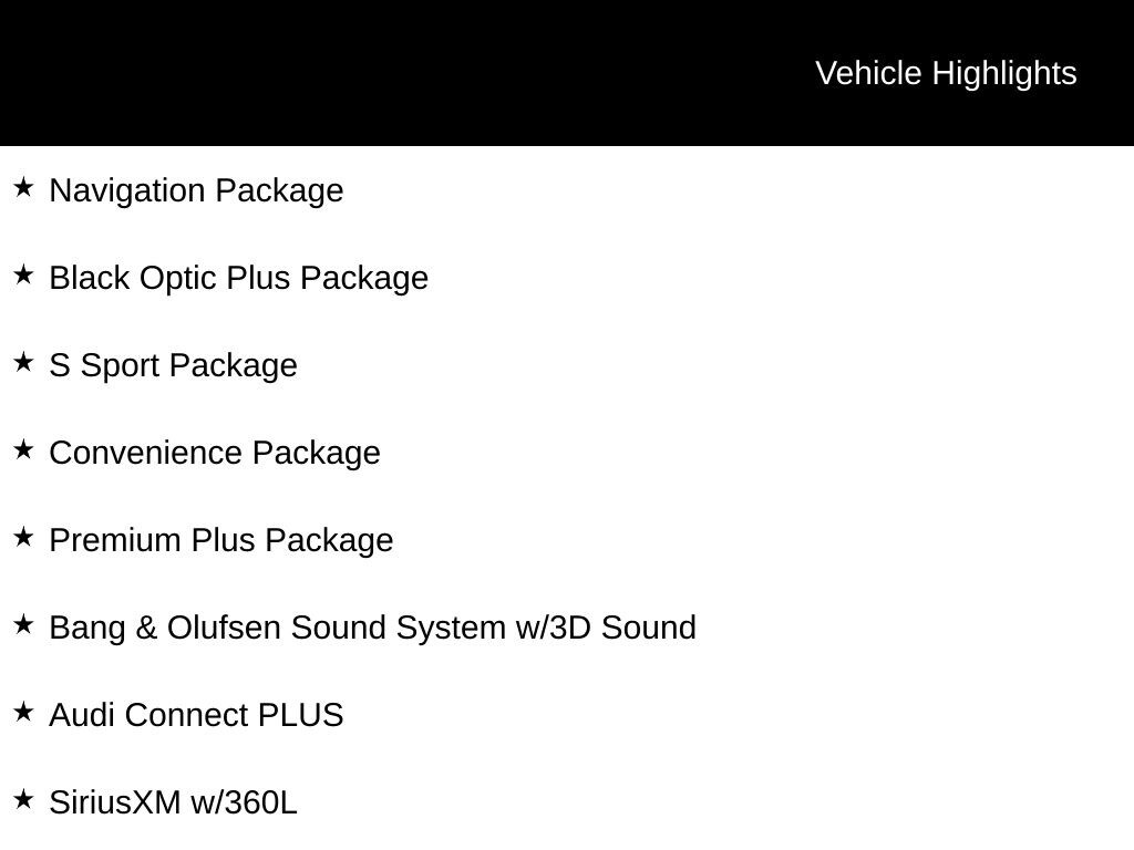 - Smart device integration: Audi smartphone interface (Apple CarPlay/Android Auto)