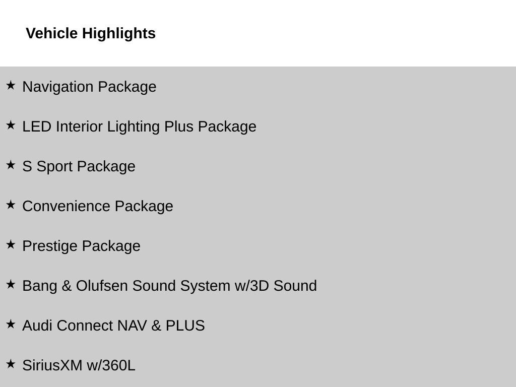 - Smart device integration: Audi smartphone interface w/wireless Apple CarPlay