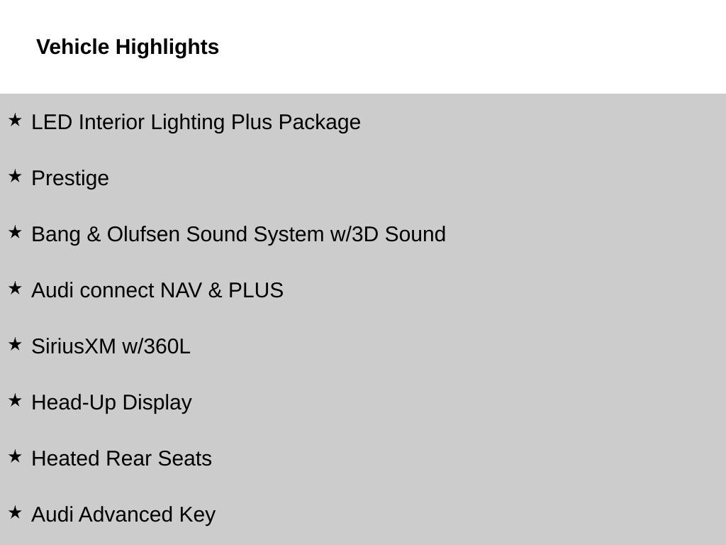 - Smart device integration: Audi smartphone interface w/wireless Apple CarPlay