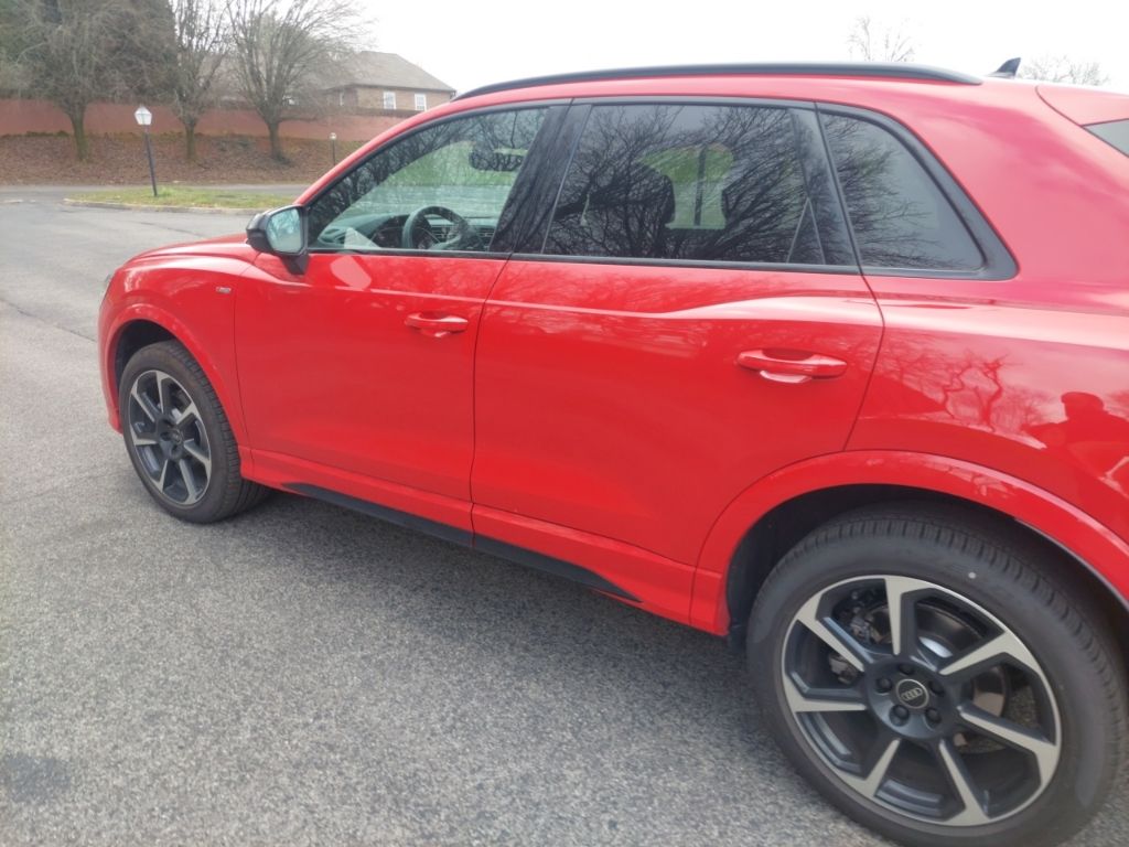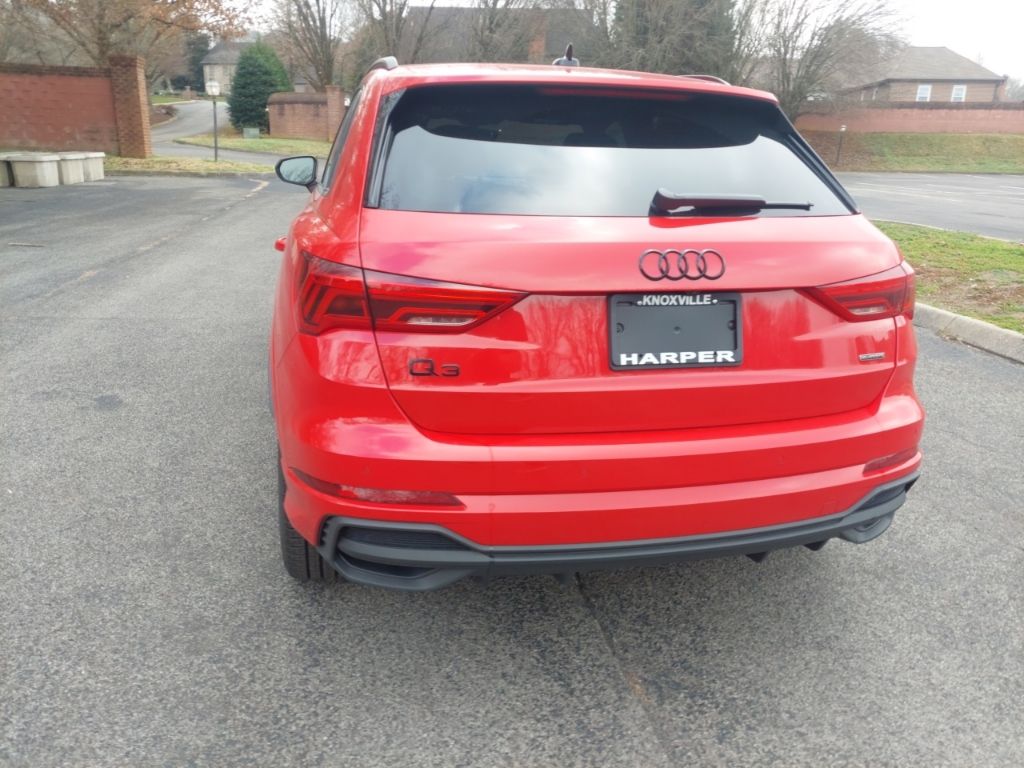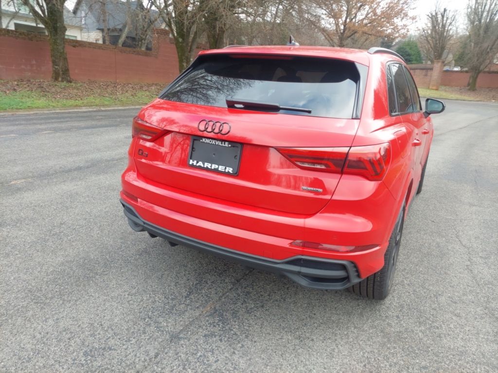 Check out all these great options Black Optic Plus Package (Black Exterior Mirrors, Black Exterior Trim and Badges, Carbon Inlays, Dinamica Upper Inlay and Door Armrests in Steel Gray, Sport Front Bucket Seats with S Embossing, Stainless Steel Pedal Caps, and Wheels: 19" 7-Spoke-Rotor-Design), Convenience Package (Alarm with Motion Sensor, Audi Advanced Key, Auto-Dimming Power-Folding Exterior Mirrors, Auto-Dimming Rear-View Mirror, Driver Seat Memory, Garage Door Opener (HomeLink), SiriusXM with 360L (3 Months Trial), and Wireless Phone Charging Pad), LED Interior Lighting Package, LED Interior Lighting Plus Package, Premium Plus Package (SONOS Premium Sound System with 3D Sound and Top View Camera System), 10 Speakers, 4-Wheel Disc Brakes, ABS brakes, Air Conditioning, Alloy wheels, AM/FM radio, Audi Beam-Rings, Audi Guard Protection Kit, Audi smartphone interface (Apple CarPlay/Android Auto), Auto High-beam Headlights, Automatic temperature control, Brake assist, Bumpers: body-color, Delay-off headlights, Driver door bin, Driver vanity mirror, Dual front impact airbags, Dual front side impact airbags, Electronic Stability Control, Emergency communication system: Audi connect CARE, Exterior Parking Camera Rear, Four wheel independent suspension, Front anti-roll bar, Front Bucket Seats, Front Center Armrest, Front dual zone A/C, Front fog lights, Front reading lights, Fully automatic headlights, Heated door mirrors, Heated Front Bucket Seats, Heated front seats, Illuminated entry, Knee airbag, Leather Seating Surfaces, Leather Shift Knob, Leather steering wheel, Low tire pressure warning, Occupant sensing airbag, Outside temperature display, Overhead airbag, Overhead console, Panic alarm, Passenger door bin, Passenger vanity mirror, Power door mirrors, Power driver seat, Power Liftgate, Power moonroof: Panoramic, Power passenger seat, Power steering, Power windows, Radio data system, Radio: Audi Sound System, Rain sensing wipers, Rear air conditioning, Rear anti-roll bar, Rear reading lights, Rear seat center armrest, Rear window defroster, Rear window wiper, Remote keyless entry, Speed control, Speed-sensing steering, Split folding rear seat, Spoiler, Steering wheel mounted audio controls, Tachometer, Telescoping steering wheel, Tilt steering wheel, Traction control, Trip computer, Turn signal indicator mirrors, Variably intermittent wipers, and Wheels: 18" 5-V-Spoke-S Design. Please contact Harper Audi at (865) 691-2834 for details. Come see why Harper has the easiest car buying experience in the South! CARFAX One-Owner. Clean CARFAX. Progressive Red Metallic quattro 8-Speed Automatic with Tiptronic 2.0L 4-Cylinder TFSI 2025 Audi Q3 Premium Plus in Progressive Red Metallic, Alarm with Motion Sensor, Audi Advanced Key, Auto-Dimming Power-Folding Exterior Mirrors, Auto-Dimming Rear-View Mirror, Black Exterior Mirrors, Black Exterior Trim and Badges, Black Optic Plus Package, Carbon Inlays, Convenience Package, Dinamica Upper Inlay and Door Armrests in Steel Gray, Driver Seat Memory, Garage Door Opener (HomeLink), LED Interior Lighting Package, LED Interior Lighting Plus Package, Premium Plus Package, SiriusXM with 360L (3 Months Trial), SONOS Premium Sound System with 3D Sound, Sport Front Bucket Seats with S Embossing, Stainless Steel Pedal Caps, Top View Camera System, Wheels: 19" 7-Spoke-Rotor-Design, Wireless Phone Charging Pad.