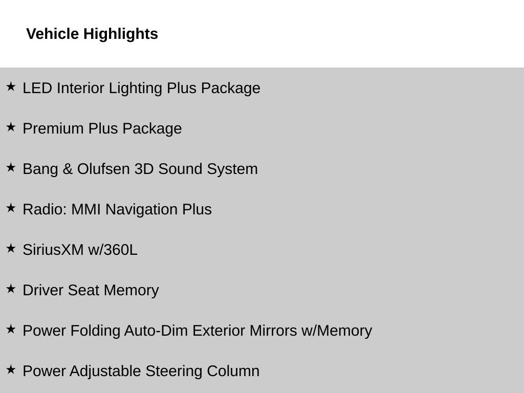 - Smart device integration: Audi smartphone interface w/wireless Apple CarPlay