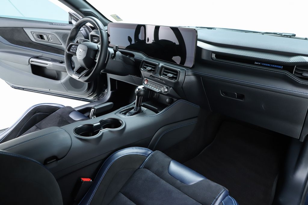 Check out all these great options Dark Horse Appearance Package (Notorious Blue Unique Brake Calipers, Painted Black Roof, and Unique Hood Graphic), Dark Horse Handling Package (Front Towing Hooks, Magnetic Damping System, Performance Front Aero Splitter, Performance Rear Spoiler w/Gurney Flap, and Wheels: 19" x 10.5" Fr/19" x 11" Rr Tarnished Alum), Equipment Group 700A Deluxe Package (Aluminum Foot Pedals, Approach Detection, Memory Driver Seat & Mirrors, Universal Garage Door Opener (UGDO), and Cloth/Vinyl Climate-Controlled Bucket Seats), RECARO Sport Seats (RECARO Micro-Suede/Vinyl Bucket Seats), Security Package (Active Anti-Theft System, Electronic-Locking Center Console, and Wheel Locking Kit), 12 Speakers, 4-Wheel Disc Brakes, ABS brakes, Adaptive suspension, Air Conditioning, Alloy wheels, AM/FM radio: SiriusXM with 360L, AM/FM Stereo, Auto High-beam Headlights, Automatic temperature control, B&O Sound System by Bang & Olufsen, Brake assist, Bumpers: body-color, Delay-off headlights, Dual front impact airbags, Dual front side impact airbags, Electronic Stability Control, Emergency communication system: 911 Assist, Exterior Parking Camera Rear, Four wheel independent suspension, Front anti-roll bar, Front Bucket Seats, Front Center Armrest, Front dual zone A/C, Fully automatic headlights, HD Radio, Heated front seats, Heated steering wheel, Illuminated entry, Knee airbag, Low tire pressure warning, Navigation system: Connected Navigation, Occupant sensing airbag, Outside temperature display, Overhead airbag, Panic alarm, Power door mirrors, Power driver seat, Power passenger seat, Power steering, Power windows, Radio data system, Rain sensing wipers, Rear anti-roll bar, Rear Parking Sensor