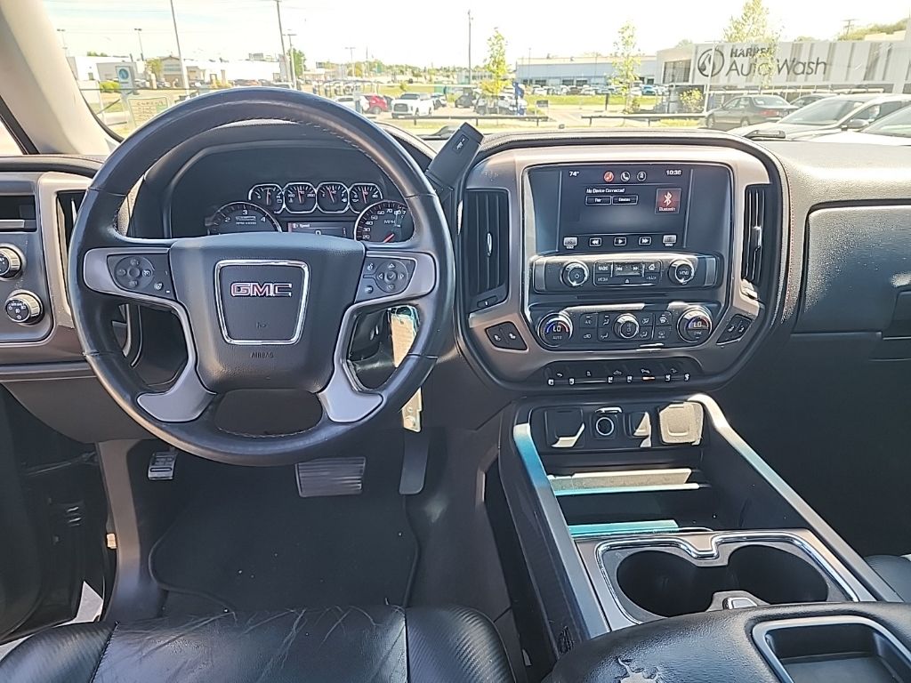 This Sierra 1500 SLT is packed with premium technology, including an 8-inch diagonal color touch screen navigation system with IntelliLink, Bose premium audio, and a manual tilt-wheel and telescoping steering column. The interior offers the ultimate in comfort and refinement, with leather-appointed seating, dual-zone automatic climate control, and a power driver's seat.