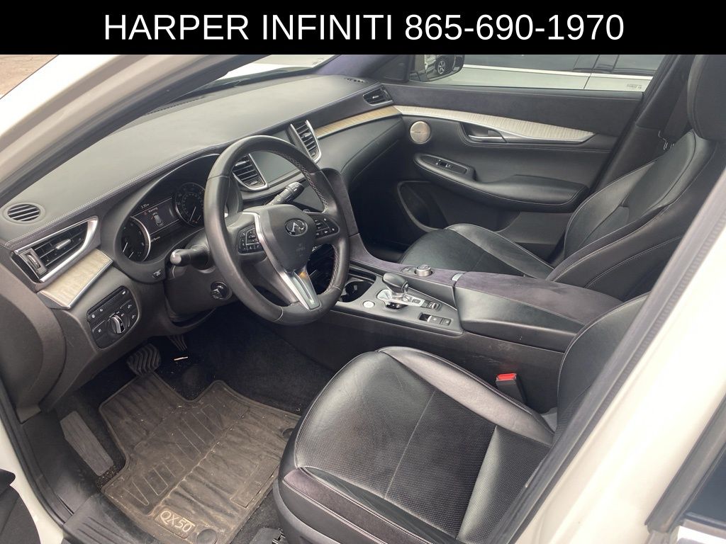Harper INFINITI is excited to offer this good-looking 2019 INFINITI QX50 in Majestic White HARPER INFINITI believes in the quality of the vehicles we sell so well that we provide an UNLIMITED MILES, POWERTRAIN WARRANTY on every new and qualifying pre-owned vehicle it sells!!! This warranty is good at any ASE certified shop in the 48 continental United States!! Check out all these great options ProASSIST Package (Back-Up Collision Intervention (BCI), Distance Control Assist, Intelligent Cruise Control, and Rear Cross Traffic Alert), Sensory Package (2-Way Passenger Power Lumbar, Adaptive Front Lighting System, Advanced Climate Control System, Bose 16-Speaker Premium Audio System, Climate Controlled Seats, Extended Interior Ambient Lighting, Headlamps (LED High/Low Beam), Heated Front Seats, Heated Steering Wheel, Memory Seats, Motion Activated Liftgate, Natural Maple Wood Interior Trim, Power Tilt & Telescopic Steering Wheel, Rear Side Window Sunshades, Reverse Synchronization Mirrors, Semi-Aniline Leather Appointed Seating, and Wheels: 20" x 8.5J Dark Tinted Aluminum Alloy), 4-Wheel Disc Brakes, 5.846 Axle Ratio, 6 Speakers, ABS brakes, Activation Disclaimer, Air Conditioning, Alloy wheels, AM/FM radio: SiriusXM, AM/FM/CD Audio System, Anti-whiplash front head restraints, Auto-dimming Rear-View mirror, Automatic temperature control, Brake assist, Bumpers: body-color, CD player, Delay-off headlights, Driver door bin, Driver vanity mirror, Dual front impact airbags, Dual front side impact airbags, Electronic Stability Control, Emergency communication system: INFINITI Connection, Exterior Parking Camera Rear, Floor Mats, Four wheel independent suspension, Front anti-roll bar, Front Bucket Seats, Front Center Armrest, Front dual zone A/C, Front fog lights, Front reading lights, Garage door transmitter: HomeLink, Heated door mirrors, Illuminated entry, Knee airbag, Leather Shift Knob, Literature Kit, Low tire pressure warning, Navigation system: INFINITI InTouch Navigation, Occupant sensing airbag, Outside temperature display, Overhead airbag, Overhead console, Panic alarm, Passenger door bin, Passenger vanity mirror, Power door mirrors, Power driver seat, Power Liftgate, Power moonroof, Power passenger seat, Power steering, Power windows, Radio data system, Rain sensing wipers, Rear air conditioning, Rear anti-roll bar, Rear reading lights, Rear seat center armrest, Rear window defroster, Rear window wiper, Remote keyless entry, Roof rack: rails only, Security system, Speed control, Speed-sensing steering, Speed-Sensitive Wipers, Split folding rear seat, Spoiler, Standard Leather Seat Trim, Steering wheel mounted audio controls, Tachometer, Telescoping steering wheel, Tilt steering wheel, Traction control, Trip computer, Turn signal indicator mirrors, Variably intermittent wipers, and Wheels: 19" x 7.5J Silver Painted Aluminum Alloy.