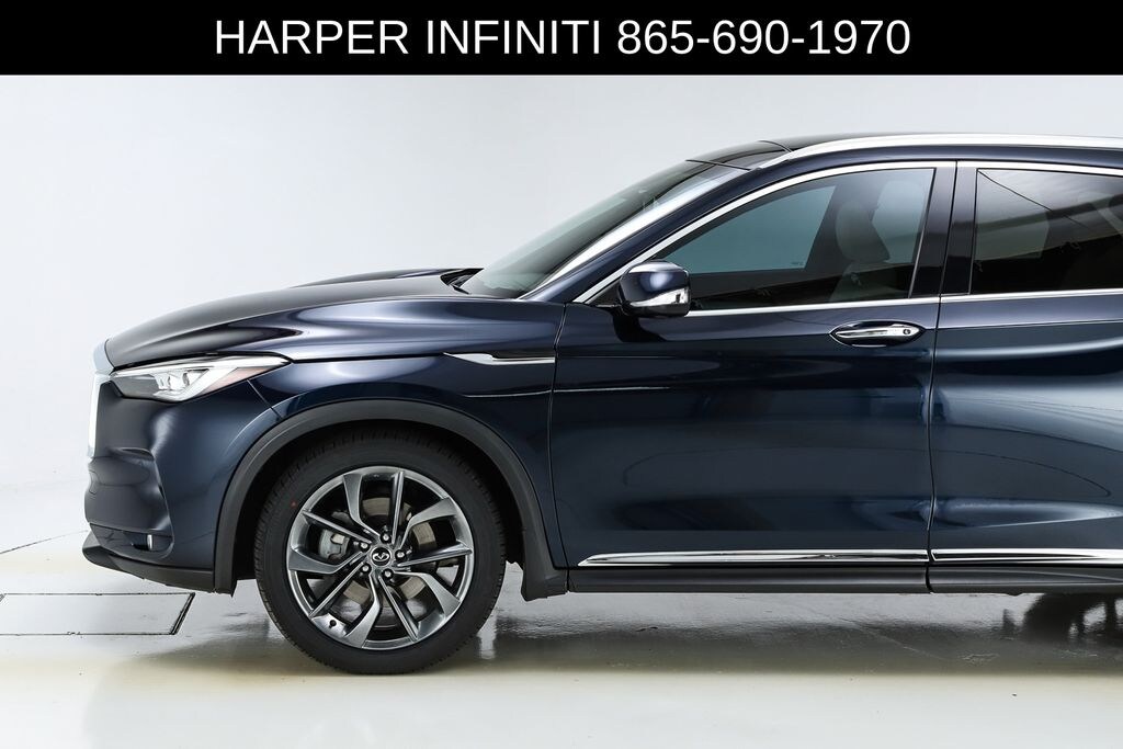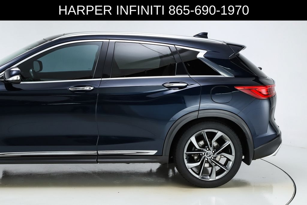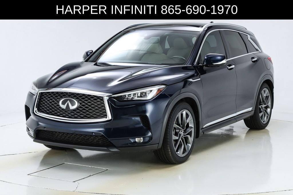 Harper INFINITI is excited to offer this attractive-looking 2019 INFINITI QX50 in Hermosa Blue HARPER INFINITI believes in the quality of the vehicles we sell so well that we provide an UNLIMITED MILES, POWERTRAIN WARRANTY on every new and qualifying pre-owned vehicle it sells!!! This warranty is good at any ASE certified shop in the 48 continental United States!! Check out all these great options Cargo Package, ProACTIVE Package (Back-Up Collision Intervention (BCI), Blind Spot Intervention System (BSI), Direct Adaptive Steering, Distance Control Assist, Head-Up Display, High Beam Assist, Intelligent Cruise Control, Lane Departure Prevention (LDP), Lane Departure Warning System, Park w/Easy Steering, ProPILOT Assist, Rear Cross Traffic Alert, and Steering Assist), ProASSIST Package, Protection Package, Sensory Package (2-Way Passenger Power Lumbar, Adaptive Front Lighting System, Advanced Climate Control System, Bose 16-Speaker Premium Audio System, Climate Controlled Seats, Extended Interior Ambient Lighting, Headlamps (LED High/Low Beam), Heated Front Seats, Heated Steering Wheel, Memory Seats, Motion Activated Liftgate, Natural Maple Wood Interior Trim, Power Tilt & Telescopic Steering Wheel, Rear Side Window Sunshades, Reverse Synchronization Mirrors, Semi-Aniline Leather Appointed Seating, and Wheels: 20" x 8.5J Dark Tinted Aluminum Alloy), Tow Hitch Package, Tow Package, Navigation system: INFINITI InTouch Navigation, 4-Wheel Disc Brakes, 5.846 Axle Ratio, 6 Speakers, ABS brakes, Activation Disclaimer, Air Conditioning, Alloy wheels, AM/FM radio: SiriusXM, AM/FM/CD Audio System, Anti-whiplash front head restraints, Auto-dimming Rear-View mirror, Automatic temperature control, Brake assist, Bumpers: body-color, CD player, Delay-off headlights, Driver door bin, Driver vanity mirror, Dual front impact airbags, Dual front side impact airbags, Electronic Stability Control, Emergency communication system: INFINITI Connection, Exterior Parking Camera Rear, Floor Mats, Four wheel independent suspension, Front anti-roll bar, Front Bucket Seats, Front Center Armrest, Front dual zone A/C, Front fog lights, Front reading lights, Garage door transmitter: HomeLink, Heated door mirrors, Illuminated entry, Illuminated Kick Plates, Knee airbag, Leather Shift Knob, Literature Kit, Low tire pressure warning, Occupant sensing airbag, Outside temperature display, Overhead airbag, Overhead console, Panic alarm, Passenger door bin, Passenger vanity mirror, Power door mirrors, Power driver seat, Power Liftgate, Power moonroof, Power passenger seat, Power steering, Power windows, Radio data system, Rain sensing wipers, Rear air conditioning, Rear anti-roll bar, Rear reading lights, Rear seat center armrest, Rear window defroster, Rear window wiper, Remote keyless entry, Roof rack: rails only, Security system, Speed control, Speed-sensing steering, Speed-Sensitive Wipers, Splash Guards (Set of 4),