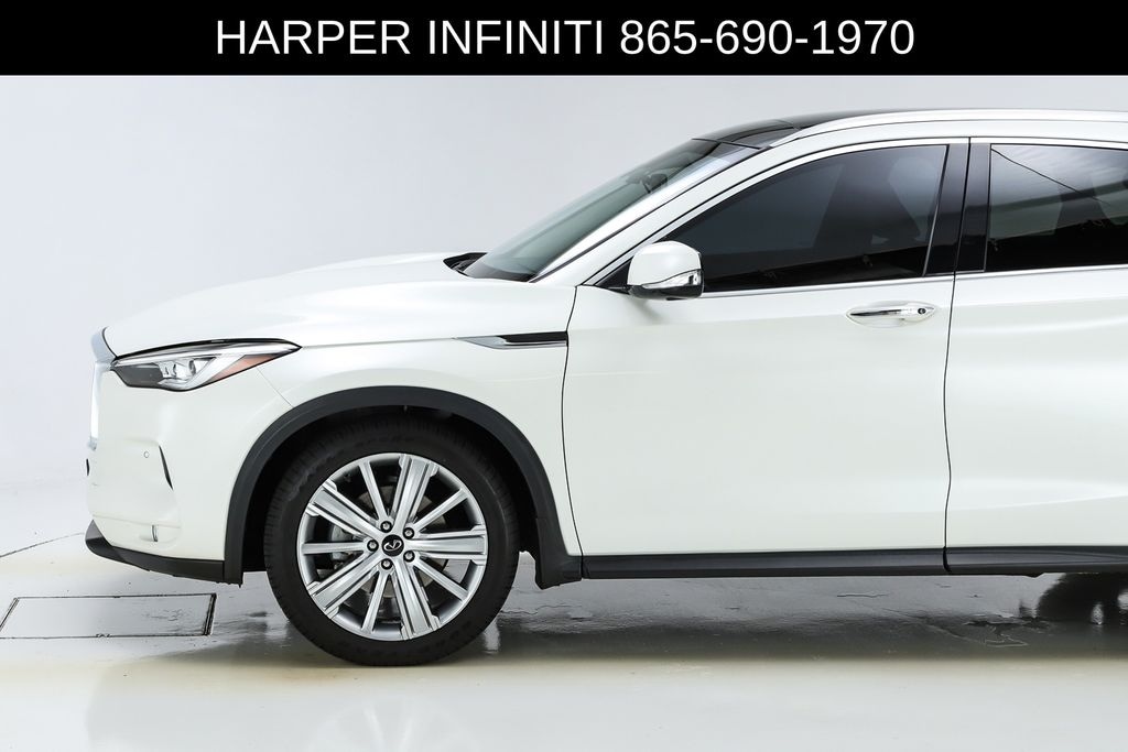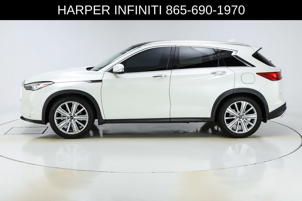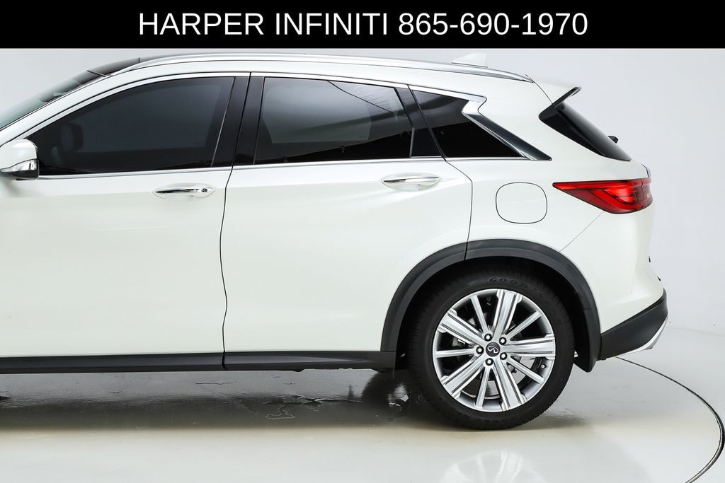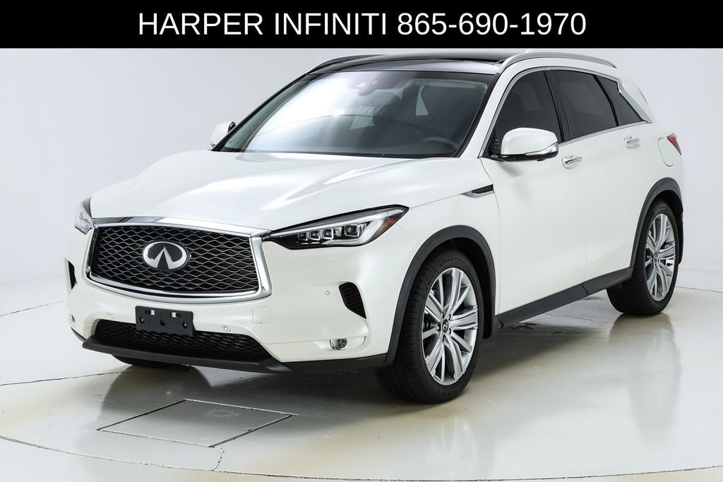 Harper INFINITI is proud to offer this wonderful-looking 2020 INFINITI QX50 in Majestic White HARPER INFINITI believes in the quality of the vehicles we sell so well that we provide an UNLIMITED MILES, POWERTRAIN WARRANTY on every new and qualifying pre-owned vehicle it sells!!! This warranty is good at any ASE certified shop in the 48 continental United States!! Check out all these great options Cargo Package, Climate Package (Climate Controlled Seats, Rear Passenger Sunshades, and Tri-Zone Automatic Climate Control), ProACTIVE Package (Direct Adaptive Steering, Head-Up Display, Intelligent Cruise Control w/Full Speed Range, ProPILOT Assist, and Traffic Sign Recognition), Navigation System, 16 Speakers, 4-Wheel Disc Brakes, 5.846 Axle Ratio, ABS brakes, Air Conditioning, Alloy wheels, AM/FM radio: SiriusXM, Anti-whiplash front head restraints, Apple CarPlay/Android Auto, Auto High-beam Headlights, Auto tilt-away steering wheel, Auto-dimming Rear-View mirror, Automatic temperature control, Brake assist, Bumpers: body-color, CD player, Delay-off headlights, Driver door bin, Driver vanity mirror, Dual front impact airbags, Dual front side impact airbags, Electronic Stability Control, Emergency communication system: INFINITI Connection, Floor Mats, Four wheel independent suspension, Front anti-roll bar, Front Bucket Seats, Front Center Armrest, Front dual zone A/C, Front fog lights, Front reading lights, Garage door transmitter: HomeLink, Heated door mirrors, Heated Front Bucket Seats, Heated front seats, Heated steering wheel, Illuminated entry, Illuminated Kick Plates, Knee airbag, Leather Shift Knob, Literature Kit, Low tire pressure warning, Memory seat, Occupant sensing airbag, Outside temperature display, Overhead airbag, Overhead console, Panic alarm, Passenger door bin, Passenger vanity mirror, Power door mirrors, Power driver seat, Power Liftgate, Power moonroof, Power passenger seat, Power steering, Power windows, Radio data system, Radio: Bose Performance Series Audio System, Rain sensing wipers, Rear anti-roll bar, Rear Bumper Protector, Rear reading lights, Rear seat center armrest, Rear window defroster, Rear window wiper, Remote keyless entry, Security system, Speed control, Speed-sensing steering, Speed-Sensitive Wipers, Splash Guards (Set of 4), Split folding rear seat, Spoiler, Standard Leather Seat Trim, Steering wheel memory, Steering wheel mounted audio controls, Tachometer, Telescoping steering wheel, Tilt steering wheel, Traction control, Trip computer, Turn signal indicator mirrors, Variably intermittent wipers, and Wheels: 20" x 8.5J Silver Painted Aluminum Alloy.