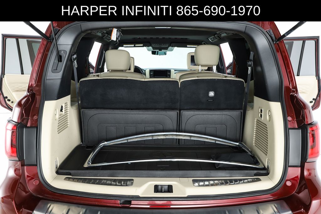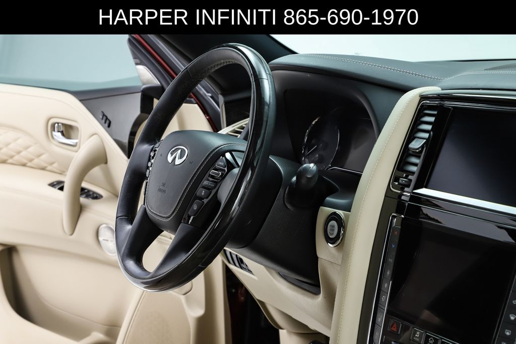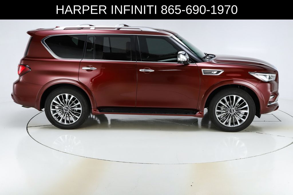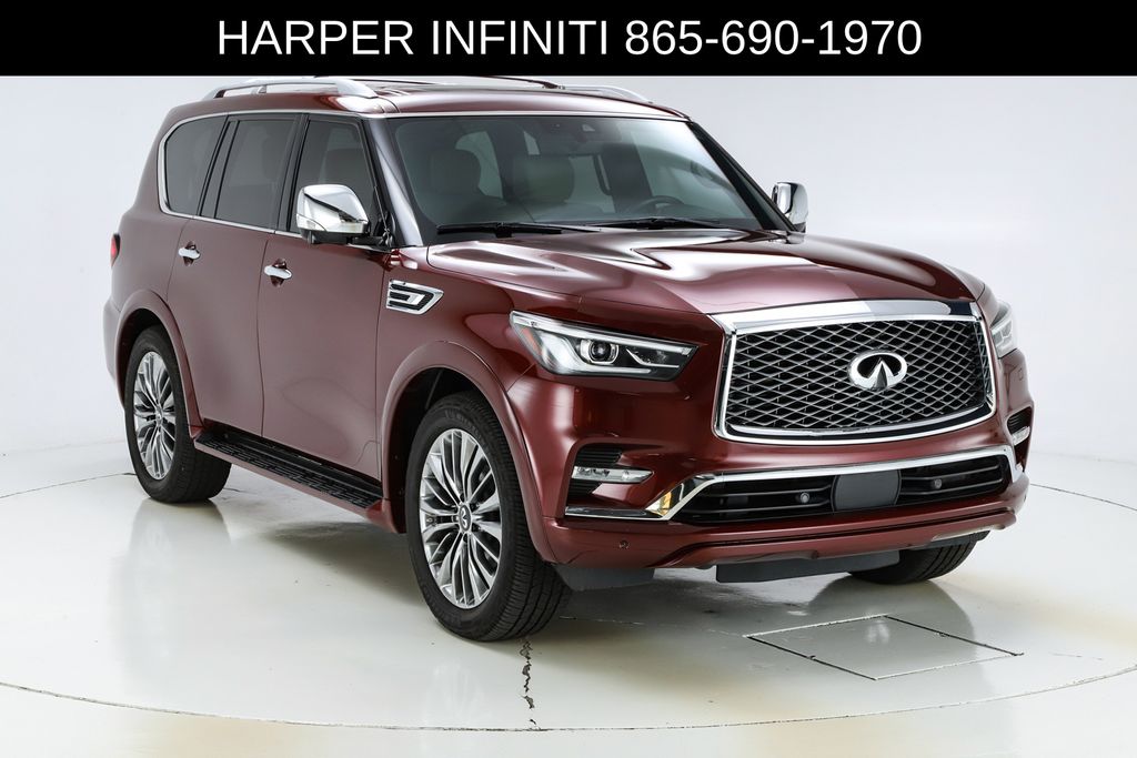 Harper INFINITI is proud to offer this terrific-looking 2021 INFINITI QX80 in Coulis Red HARPER INFINITI believes in the quality of the vehicles we sell so well that we provide an UNLIMITED MILES, POWERTRAIN WARRANTY on every new and qualifying pre-owned vehicle it sells!!! This warranty is good at any ASE certified shop in the 48 continental United States!! Check out all these great options ABS brakes, Active Cruise Control, Alloy wheels, Compass, DVD-Audio, Electronic Stability Control, Front dual zone A/C, Heated door mirrors, Heated front seats, Heated rear seats, Illuminated entry, Low tire pressure warning, Navigation System, Power Liftgate, Power moonroof, Remote keyless entry, Traction control, 17 Speakers, 2.937 Axle Ratio, 3rd row seats: split-bench, 4-Wheel Disc Brakes, A/V remote, Air Conditioning, AM/FM radio: SiriusXM, Anti-whiplash front head restraints, Apple CarPlay/Android Auto, Auto High-beam Headlights, Auto tilt-away steering wheel, Auto-dimming door mirrors, Auto-dimming Rear-View mirror, Auto-leveling suspension, Automatic temperature control, Brake assist, Bumpers: body-color, CD player, Climate Controlled Front Bucket Seats, Delay-off headlights, Driver door bin, Driver vanity mirror, Dual front impact airbags, Dual front side impact airbags, Emergency communication system: INFINITI Connection, Four wheel independent suspension, Front anti-roll bar, Front Bucket Seats, Front Center Armrest, Front fog lights, Front reading lights, Fully automatic headlights, Garage door transmitter: HomeLink, Headlight cleaning, Headphones, Heated steering wheel, Leather Shift Knob, Leather steering wheel, Memory seat, Navigation system: INFINITI InTouch Navigation, Occupant sensing airbag, Outside temperature display, Overhead airbag, Overhead console, Panic alarm, Passenger door bin, Passenger vanity mirror, Power door mirrors, Power driver seat, Power passenger seat, Power steering, Power windows, Radio data system, Radio: Bose Performance Audio System w/17 Speakers, Rain sensing wipers, Rear air conditioning, Rear anti-roll bar, Rear audio controls, Rear reading lights, Rear seat center armrest, Rear window defroster, Rear window wiper, Reclining 3rd row seat, Security system, Semi-Aniline Leather Appointed Seats, Speed control, Speed-sensing steering, Split folding rear seat, Spoiler, Steering wheel memory, Steering wheel mounted audio controls, Tachometer, Telescoping steering wheel, Tilt steering wheel, Trip computer, Turn signal indicator mirrors, Variably intermittent wipers, Ventilated front seats, Voltmeter, and Wheels: 22" x 8.0" Forged Aluminum-Alloy.