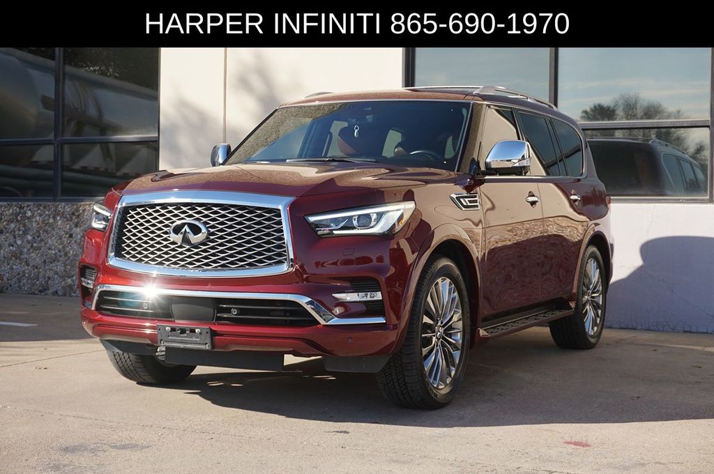Harper INFINITI is excited to offer this charming 2021 INFINITI QX80 in Coulis Red HARPER INFINITI believes in the quality of the vehicles we sell so well that we provide an UNLIMITED MILES, POWERTRAIN WARRANTY on every new and qualifying pre-owned vehicle it sells!!! This warranty is good at any ASE certified shop in the 48 continental United States!! Check out all these great options ABS brakes, Active Cruise Control, Alloy wheels, Compass, DVD-Audio, Electronic Stability Control, Front dual zone A/C, Heated door mirrors, Heated front seats, Heated rear seats, Illuminated entry, Low tire pressure warning, Navigation System, Power Liftgate, Power moonroof, Remote keyless entry, Traction control, 17 Speakers, 2.937 Axle Ratio, 3rd row seats: split-bench, 4-Wheel Disc Brakes, A/V remote, Air Conditioning, AM/FM radio: SiriusXM, Anti-whiplash front head restraints, Apple CarPlay/Android Auto, Auto High-beam Headlights, Auto tilt-away steering wheel, Auto-dimming door mirrors, Auto-dimming Rear-View mirror, Auto-leveling suspension, Automatic temperature control, Brake assist, Bumpers: body-color, CD player, Climate Controlled Front Bucket Seats, Delay-off headlights, Driver door bin, Driver vanity mirror, Dual front impact airbags, Dual front side impact airbags, Emergency communication system: INFINITI Connection, Four wheel independent suspension, Front anti-roll bar, Front Bucket Seats, Front Center Armrest, Front fog lights, Front reading lights, Fully automatic headlights, Garage door transmitter: HomeLink, Headlight cleaning, Headphones, Heated steering wheel, Leather Shift Knob, Leather steering wheel, Memory seat, Navigation system: INFINITI InTouch Navigation, Occupant sensing airbag, Outside temperature display, Overhead airbag, Overhead console, Panic alarm, Passenger door bin, Passenger vanity mirror, Power door mirrors, Power driver seat, Power passenger seat, Power steering, Power windows, Radio data system, Radio: Bose Performance Audio System w/17 Speakers, Rain sensing wipers, Rear air conditioning, Rear anti-roll bar, Rear audio controls, Rear reading lights, Rear seat center armrest, Rear window defroster, Rear window wiper, Reclining 3rd row seat, Security system, Semi-Aniline Leather Appointed Seats, Speed control, Speed-sensing steering, Split folding rear seat, Spoiler, Steering wheel memory, Steering wheel mounted audio controls, Tachometer, Telescoping steering wheel, Tilt steering wheel, Trip computer, Turn signal indicator mirrors, Variably intermittent wipers, Ventilated front seats, Voltmeter, and Wheels: 22" x 8.0" Forged Aluminum-Alloy.