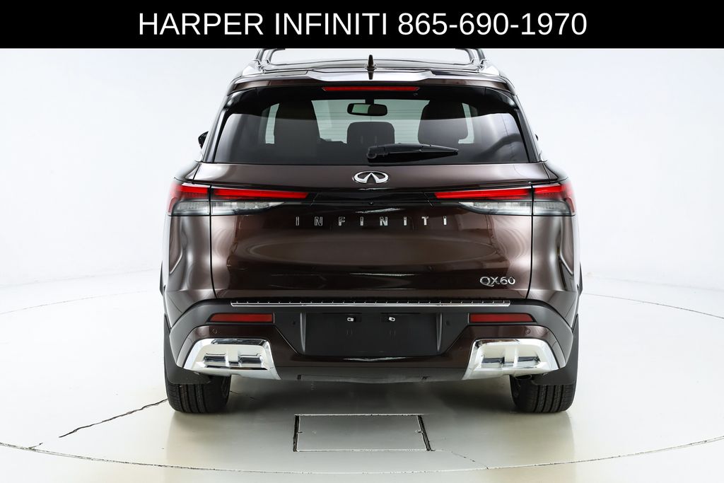 Harper INFINITI is very proud to offer this good-looking 2022 INFINITI QX60 in Mocha Almond HARPER INFINITI believes in the quality of the vehicles we sell so well that we provide an UNLIMITED MILES, POWERTRAIN WARRANTY on every new and qualifying pre-owned vehicle it sells!!! This warranty is good at any ASE certified shop in the 48 continental United States!! Check out all these great options Cargo Package (Cargo Mat (Reversible) and First Aid Kit), 17 Speakers, 3rd row seats: bench, 4-Wheel Disc Brakes, 4.334 Axle Ratio, ABS brakes, Air Conditioning, Alloy wheels, AM/FM radio: SiriusXM, Anti-whiplash front head restraints, Auto High-beam Headlights, Auto-dimming door mirrors, Auto-dimming Rear-View mirror, Automatic temperature control, Bose Performance Series 17-Speaker Sound System, Brake assist, Bumpers: body-color, Delay-off headlights, Driver door bin, Driver vanity mirror, Dual front impact airbags, Dual front side impact airbags, Electronic Stability Control, Emergency communication system: INFINITI InTouch w/1-year trial, Floor Mats, Four wheel independent suspension, Front anti-roll bar, Front Bucket Seats, Front Center Armrest, Front dual zone A/C, Front reading lights, Fully automatic headlights, Garage door transmitter: HomeLink, Heated & Cooled Front Bucket Seats, Heated door mirrors, Heated front seats, Heated rear seats, Heated steering wheel, Illuminated entry, Illuminated Kick Plates, Knee airbag, Leather Shift Knob, Leather steering wheel, Leather-Appointed Seating Surfaces, Literature Kit, Low tire pressure warning, Memory seat, Navigation system: INFINITI InTouch Navigation, Occupant sensing airbag, Outside temperature display, Overhead airbag, Overhead console, Panic alarm, Passenger door bin, Passenger vanity mirror, Power door mirrors, Power driver seat, Power Liftgate, Power moonroof, Power passenger seat, Power steering, Power windows, Radio data system, Radio: AM/FM Audio System, Rain sensing wipers, Rear air conditioning, Rear anti-roll bar, Rear reading lights, Rear seat center armrest, Rear side impact airbag, Rear window defroster, Rear window wiper, Reclining 3rd row seat, Remote keyless entry, Roof rack: rails only, Security system, Silver Roof Rail Cross Bars, Speed control, Speed-sensing steering, Speed-Sensitive Wipers, Splash Guards, Split folding rear seat, Spoiler, Steering wheel memory, Steering wheel mounted audio controls, Tachometer, Telescoping steering wheel, Tilt steering wheel, Traction control, Trip computer, Turn signal indicator mirrors, Variably intermittent wipers, Ventilated front seats, and Wheels: 20" x 8J Luxury Machined Aluminum Alloy.