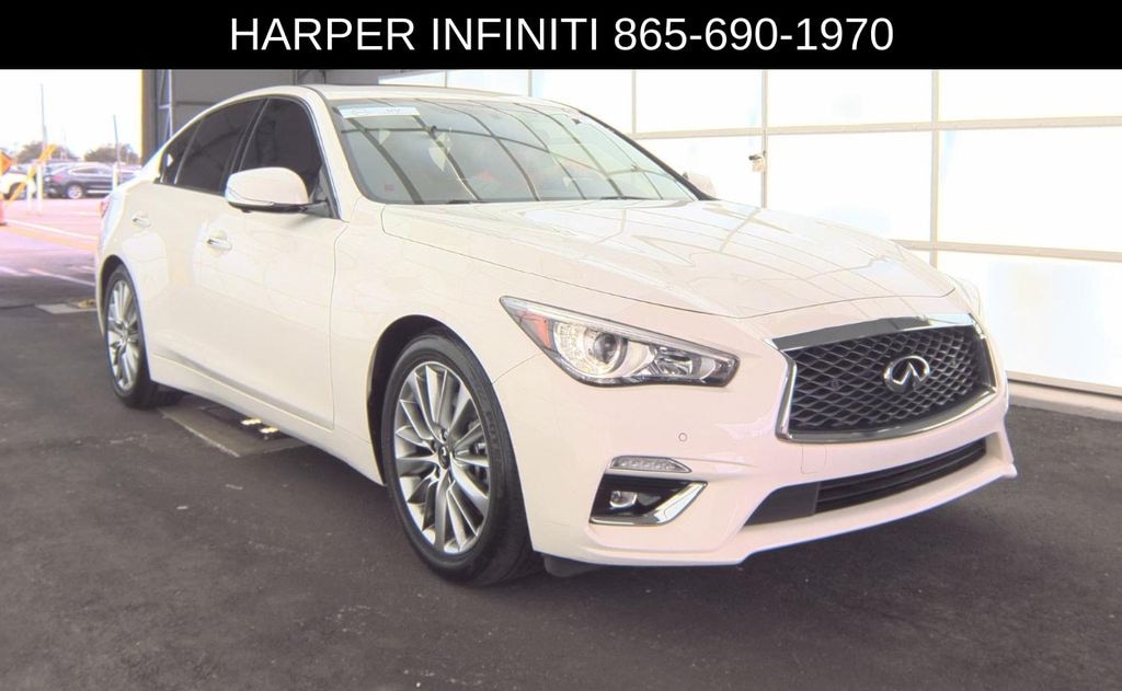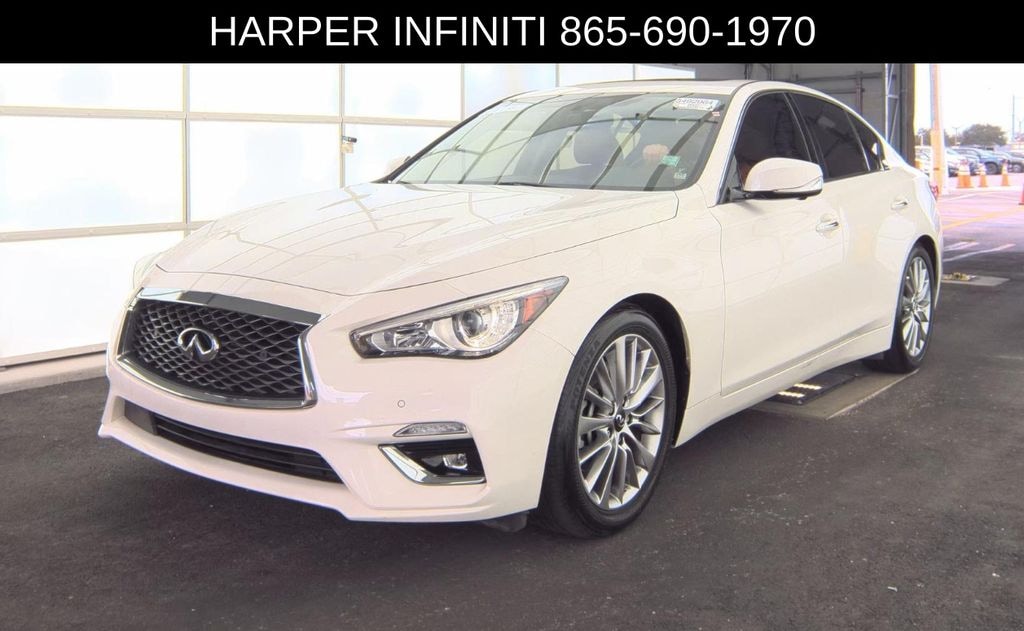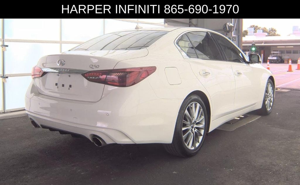 Harper INFINITI is excited to offer this stunning-looking 2023 INFINITI Q50 in Pure White HARPER INFINITI believes in the quality of the vehicles we sell so well that we provide an UNLIMITED MILES, POWERTRAIN WARRANTY on every new and qualifying pre-owned vehicle it sells!!! This warranty is good at any ASE certified shop in the 48 continental United States!! Check out all these great options Cargo Package (Cargo Net, First Aid Kit, Shopping Bag Hooks, and Trunk Mat), 16 Speakers, 18" x 7.5" Aluminum Alloy Wheels, 4-Wheel Disc Brakes, ABS brakes, Air Conditioning, Alloy wheels, AM/FM radio: SiriusXM, Auto High-beam Headlights, Auto tilt-away steering wheel, Auto-dimming Rear-View mirror, Automatic temperature control, Blind Spot Warning, Brake assist, Bumpers: body-color, CD player, Compass, Delay-off headlights, Driver door bin, Driver vanity mirror, Dual front impact airbags, Dual front side impact airbags, Electronic Stability Control, Emergency communication system: INFINITI Connection, Four wheel independent suspension, Front anti-roll bar, Front Bucket Seats, Front Center Armrest, Front dual zone A/C, Front fog lights, Front reading lights, Fully automatic headlights, Garage door transmitter: HomeLink, Heated door mirrors, Heated Front Bucket Seats, Heated front seats, Heated steering wheel, Illuminated entry, Leather Shift Knob, Leather steering wheel, Leather-Appointed Seating Surfaces, Literature Kit, Low tire pressure warning, Memory seat, Occupant sensing airbag, Outside temperature display, Overhead airbag, Overhead console, Panic alarm, Passenger door bin, Passenger vanity mirror, Power door mirrors, Power driver seat, Power moonroof, Power passenger seat, Power steering, Power windows, Radio data system, Radio: INFINITI InTouch Dual HD Display System, Rain sensing wipers, Rear anti-roll bar, Rear reading lights, Rear seat center armrest, Rear window defroster, Remote keyless entry, Saddle Brown Interior, Security system, Speed control, Speed-Sensitive Wipers, Split folding rear seat, Steering wheel memory, Steering wheel mounted audio controls, Tachometer, Telescoping steering wheel, Tilt steering wheel, Traction control, Trip computer, Turn signal indicator mirrors, and Variably intermittent wipers.