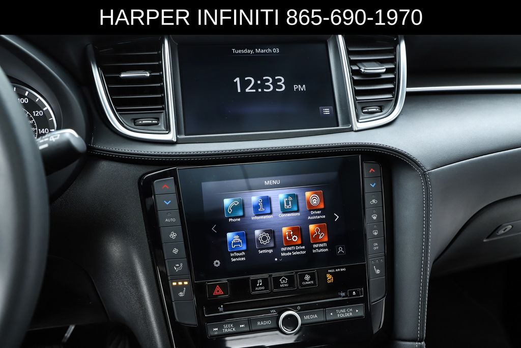 Indulge in the refined elegance of the QX50 LUXE, featuring a wealth of premium amenities that elevate your driving experience. Enjoy the convenience of the Illuminated Kick Plates, the added protection of the Splash Guards, and the seamless integration of the INFINITI InTouch infotainment system.