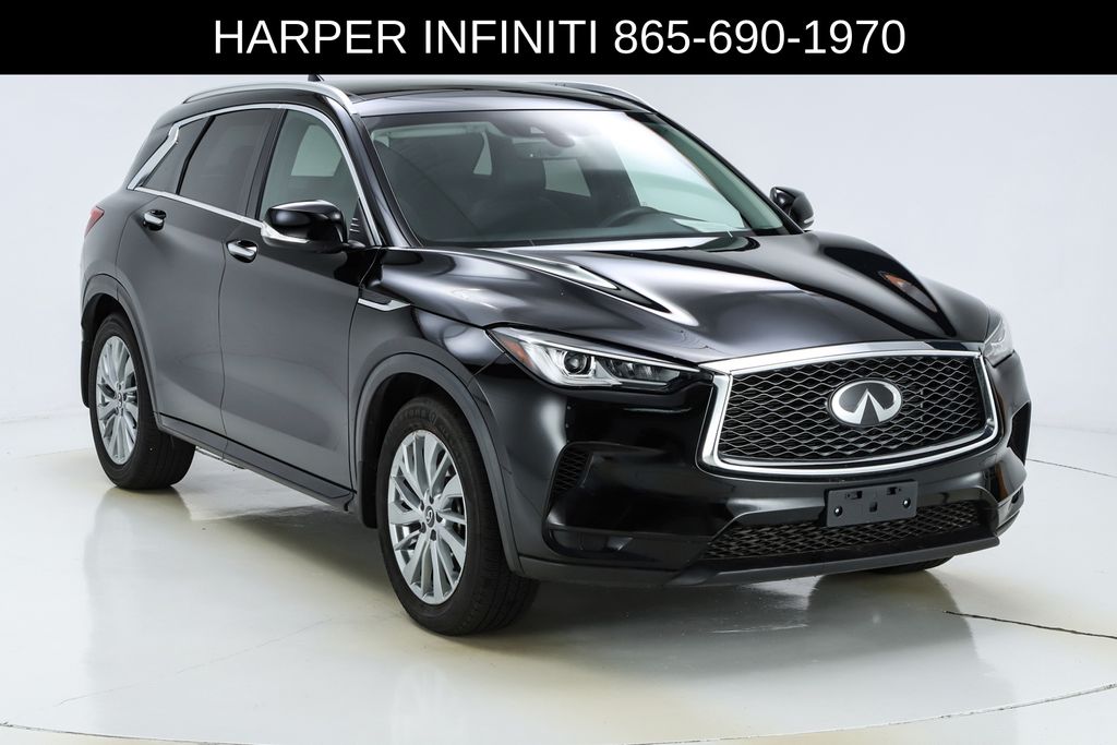 Harper INFINITI is excited to offer this exceptional QX50 LUXE in Black. Boasting a host of advanced safety features, including Intelligent Cruise Control, Blind Spot Warning, and Rear Automatic Braking, this vehicle prioritizes your well-being on the road.