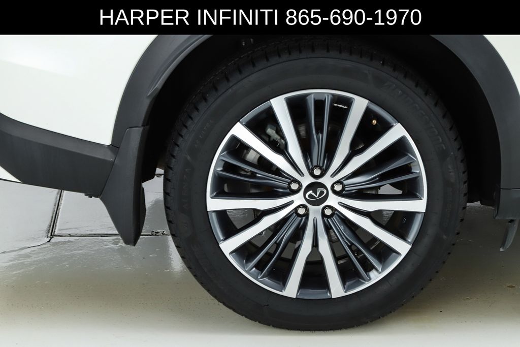Beyond its impressive performance and luxurious amenities, the 2023 INFINITI QX60 Sensory also boasts a stunning exterior design. The sleek and modern lines, accentuated by the White paint, create a bold and distinctive presence on the road. The Silver Cross Bar and 20-inch Luxury Machined Aluminum Alloy wheels further enhance the vehicle's elegant and sophisticated appearance.
