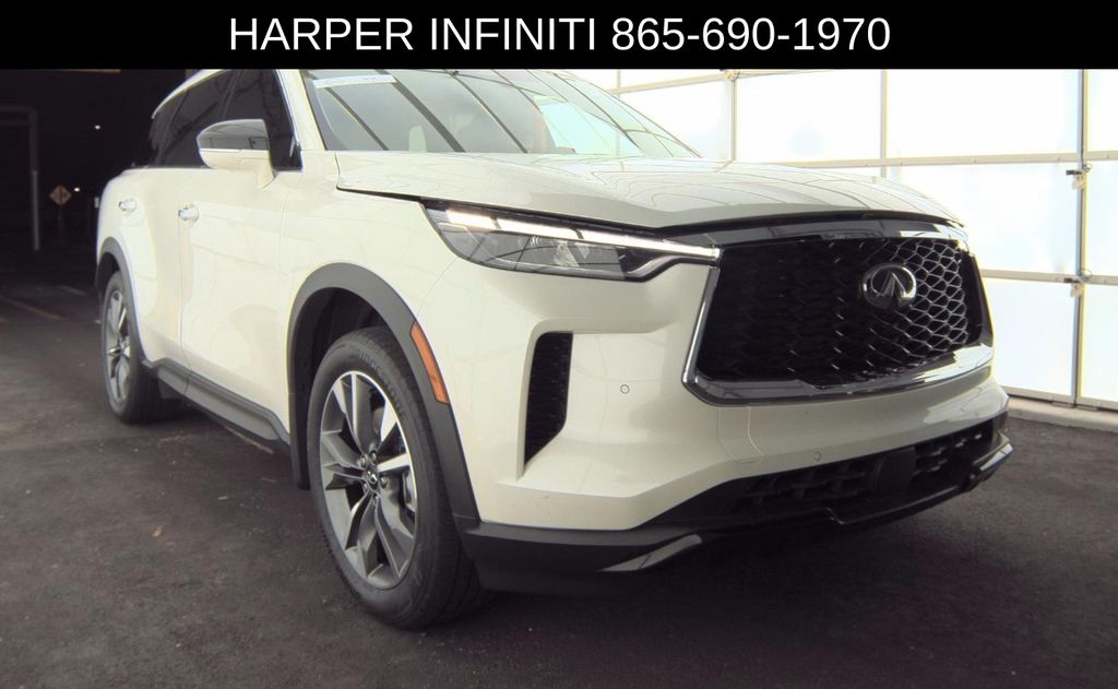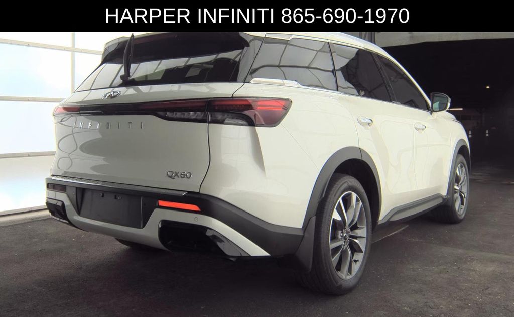Harper Infiniti is excited to offer this impressive 2023 INFINITI QX60 LUXE in White. HARPER INFINITI believes in the quality of the vehicles we sell so well that we provide an UNLIMITED MILES, POWERTRAIN WARRANTY on every new and qualifying pre-owned vehicle it sells!!! This warranty is good at any ASE certified shop in the 48 continental United States!! Check out all these great options - Navigation system: INFINITI InTouch Navigation, 9 Speakers, AM/FM radio: SiriusXM, Radio data system, Radio: AM/FM Audio System, Air Conditioning, Automatic temperature control, Front dual zone A/C, Rear air conditioning, Rear window defroster, Memory seat, Power driver seat, Power steering, Power windows, Remote keyless entry, Steering wheel memory, Steering wheel mounted audio controls, Four wheel independent suspension, Speed-sensing steering, Traction control, 4-Wheel Disc Brakes, ABS brakes, Anti-whiplash front head restraints, Dual front impact airbags, Dual front side impact airbags, Emergency communication system, Front anti-roll bar, Knee airbag, Low tire pressure warning, Occupant sensing airbag, Overhead airbag, Rear anti-roll bar, Rear side impact airbag, Power moonroof, Power Liftgate, Brake assist, Electronic Stability Control, Auto High-beam Headlights, Delay-off headlights, Fully automatic headlights, Panic alarm, Security system, Speed control, Auto-dimming door mirrors, Bumpers: body-color, Heated door mirrors, Power door mirrors, Radiant Grille Emblem, Splash Guards, Spoiler, Turn signal indicator mirrors, Auto-dimming Rear-View mirror, Climate-Controlled Front Bucket Seats, Driver door bin, Driver vanity mirror, Floor Mats on Bench Seats w/3rd Row Tray, Front reading lights, Garage door transmitter: HomeLink, Heated steering wheel, Illuminated entry, Illuminated Kick Plates w/Pass Through Light, INFINITI USB Charging Cable Set, Leather Shift Knob, Leather steering wheel, Literature Kit, Outside temperature display, Overhead console, Passenger vanity mirror, Rear reading lights, Rear seat center armrest, Tachometer, Telescoping steeri