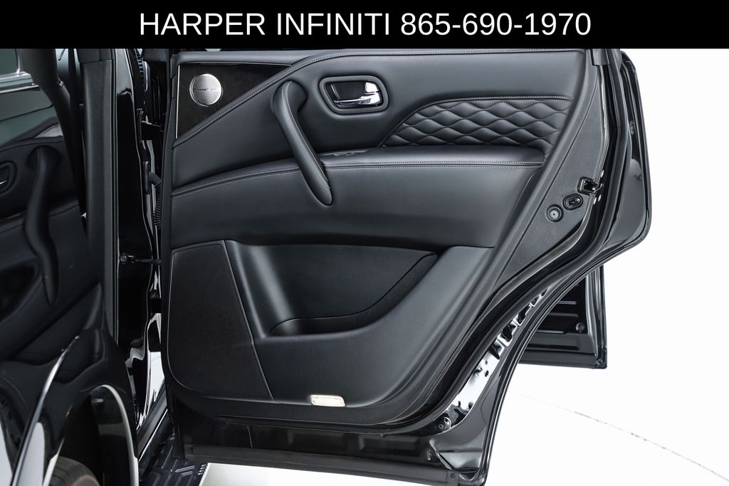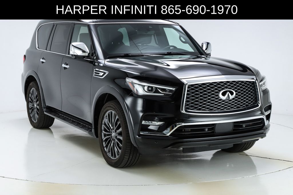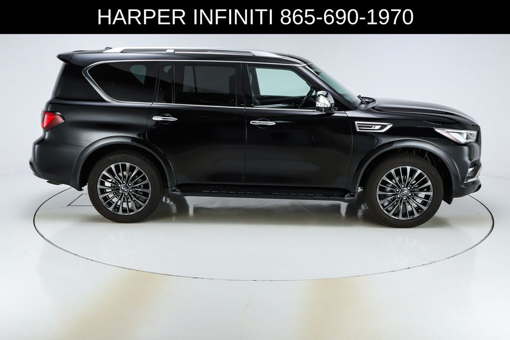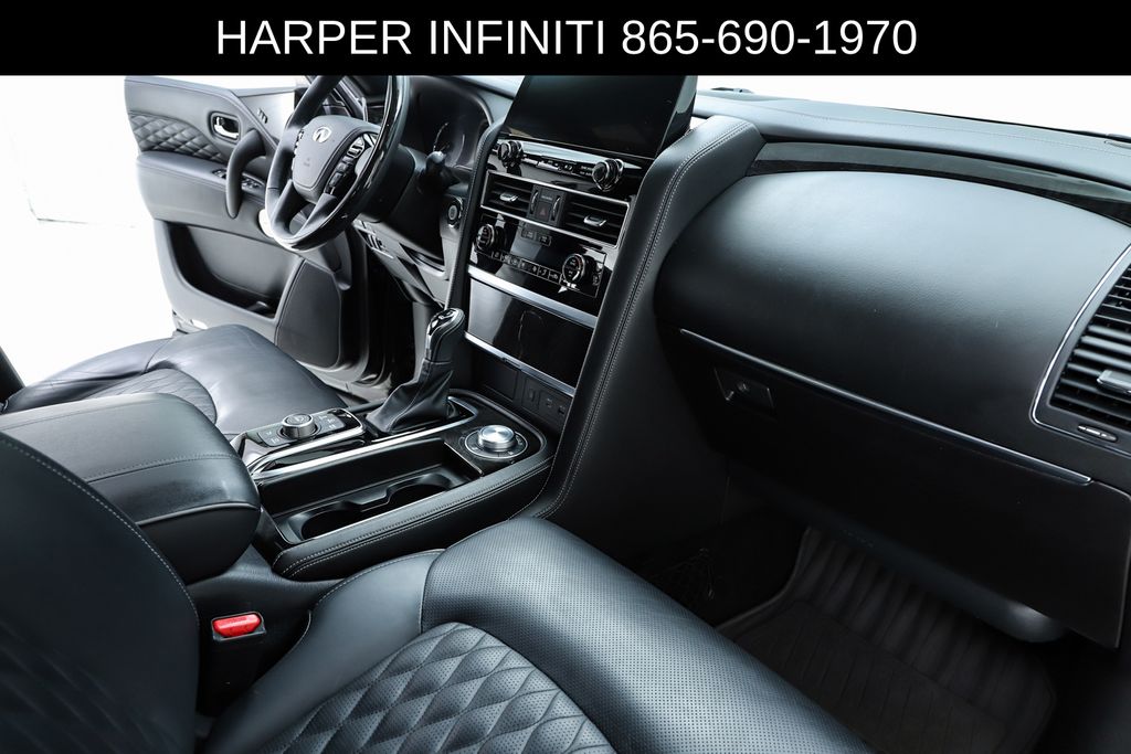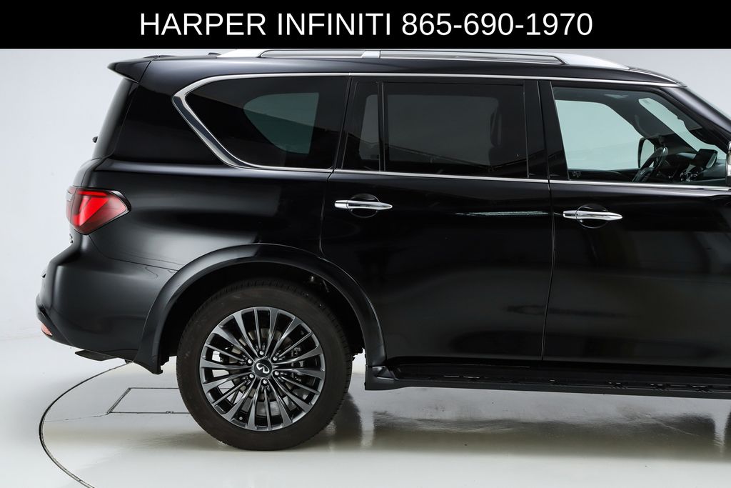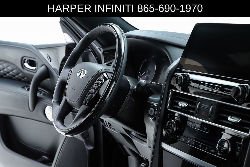 Harper INFINITI is pumped up to offer this great-looking 2023 INFINITI QX80 in Black Obsidian HARPER INFINITI believes in the quality of the vehicles we sell so well that we provide an UNLIMITED MILES, POWERTRAIN WARRANTY on every new and qualifying pre-owned vehicle it sells!!! This warranty is good at any ASE certified shop in the 48 continental United States!! Check out all these great options Cargo Package (Cargo Net, Carpeted Cargo Mat, Center Console Tray, Console Net, and First-Aid Kit), Split Bench Seat Package, Navigation system: INFINITI InTouch Navigation, 17 Speakers, 2.937 Axle Ratio, 3rd row seats: split-bench, 4-Wheel Disc Brakes, ABS brakes, Air Conditioning, Alloy wheels, AM/FM radio: SiriusXM, Anti-whiplash front head restraints, Auto High-beam Headlights, Auto tilt-away steering wheel, Auto-dimming door mirrors, Auto-dimming Rear-View mirror, Auto-leveling suspension, Automatic temperature control, Brake assist, Bumpers: body-color, Climate Controlled Front Bucket Seats, Compass, Delay-off headlights, Driver door bin, Driver vanity mirror, Dual front impact airbags, Dual front side impact airbags, Electronic Stability Control, Emergency communication system: INFINITI InTouch, Four wheel independent suspension, Front anti-roll bar, Front Bucket Seats, Front Center Armrest, Front dual zone A/C, Front fog lights, Front reading lights, Fully automatic headlights, Garage door transmitter: HomeLink, Heated door mirrors, Heated front seats, Heated rear seats, Heated steering wheel, Illuminated entry, INFINITI Radiant Illuminated Kick Plates, Leather Shift Knob, Leather steering wheel, Literature Kit, Low tire pressure warning, Memory seat, Occupant sensing airbag, Outside temperature display, Overhead airbag, Overhead console, Panic alarm, Passenger door bin, Passenger vanity mirror, Perforated Semi-Aniline Leather-Appointed Seats, Power door mirrors, Power driver seat, Power Liftgate, Power moonroof, Power passenger seat, Power steering, Power windows, Premium audio system: Bose, Radio data system, Radio: Bose Performance Audio System w/17 Speakers, Rain sensing wipers, Rear air conditioning, Rear anti-roll bar, Rear reading lights, Rear seat center armrest, Rear window defroster, Rear window wiper, Rear-Seat Entertainment, Reclining 3rd row seat, Remote keyless entry, Security system, Speed control, Speed-sensing steering, Split folding rear seat, Spoiler, Steering wheel memory, Steering wheel mounted audio controls, Tachometer, Telescoping steering wheel, Tilt steering wheel, Traction control, Trip computer, Turn signal indicator mirrors, Variably intermittent wipers, Ventilated front seats, Voltmeter, and Wheels: 22" x 8.0" Dark Chrome Cast Aluminum-Alloy.