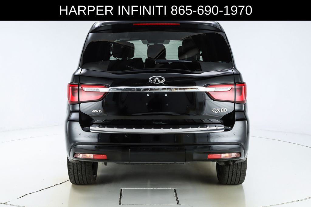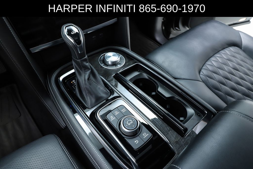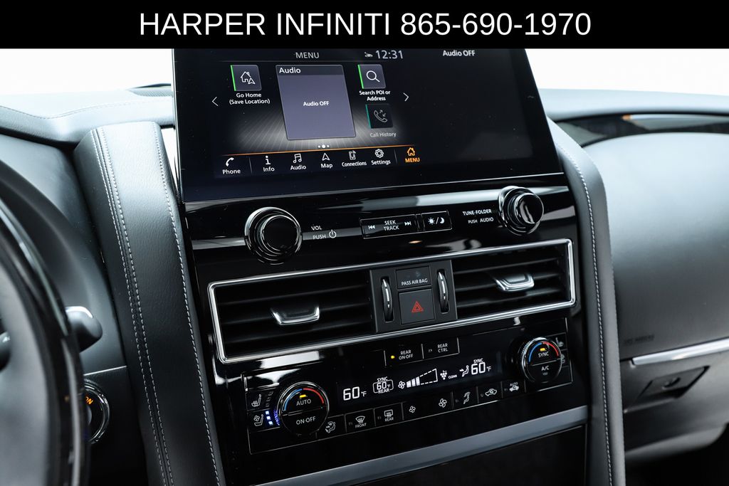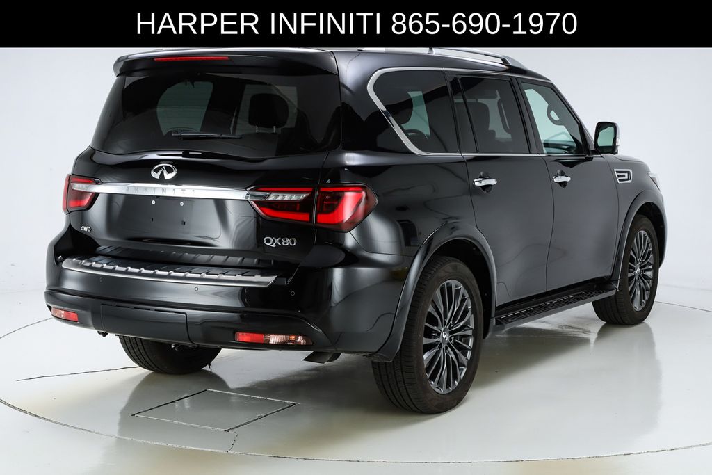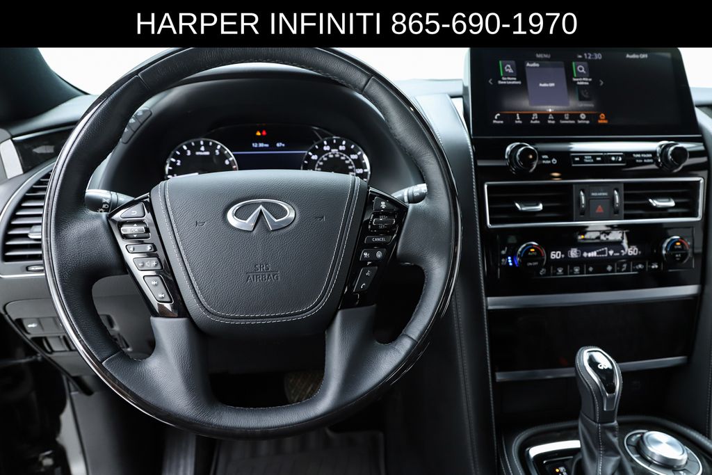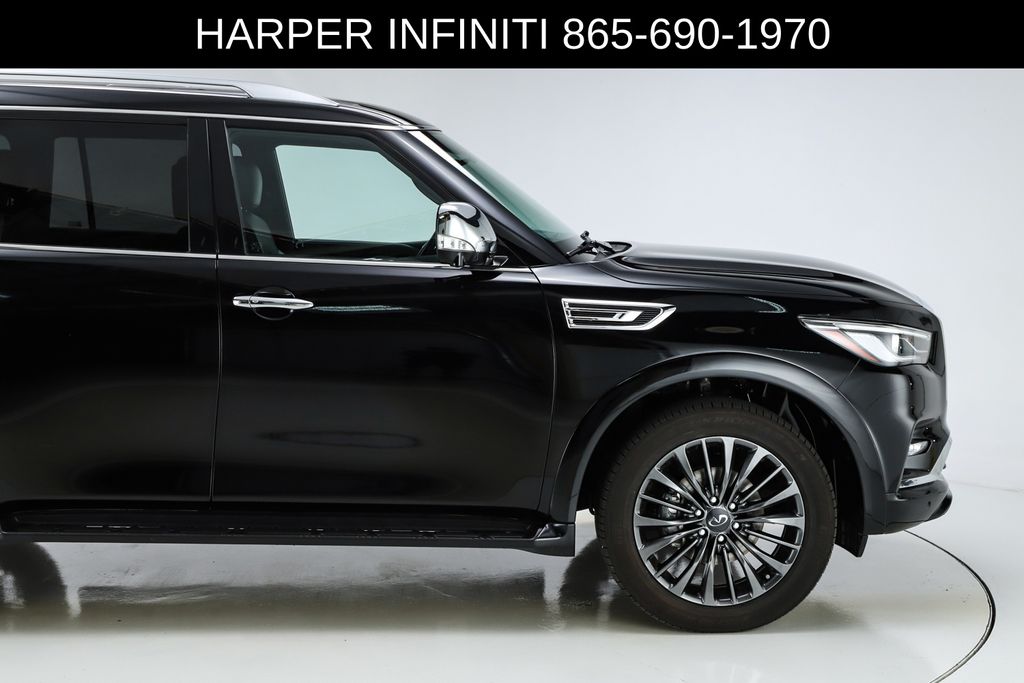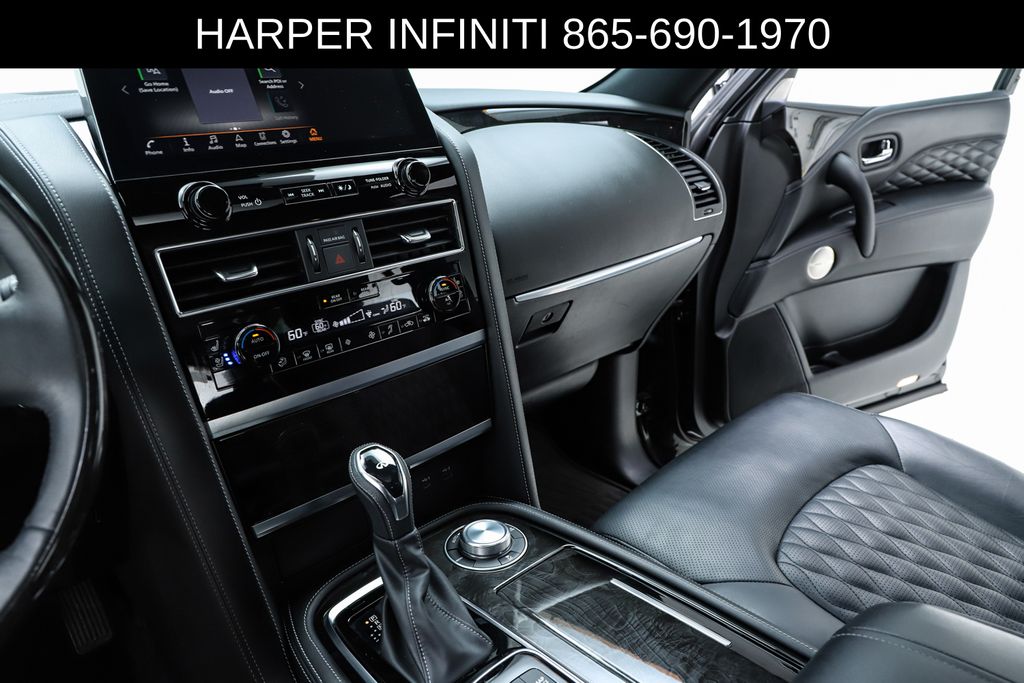 Harper INFINITI is pumped up to offer this great-looking 2023 INFINITI QX80 in Black Obsidian HARPER INFINITI believes in the quality of the vehicles we sell so well that we provide an UNLIMITED MILES, POWERTRAIN WARRANTY on every new and qualifying pre-owned vehicle it sells!!! This warranty is good at any ASE certified shop in the 48 continental United States!! Check out all these great options Cargo Package (Cargo Net, Carpeted Cargo Mat, Center Console Tray, Console Net, and First-Aid Kit), Split Bench Seat Package, Navigation system: INFINITI InTouch Navigation, 17 Speakers, 2.937 Axle Ratio, 3rd row seats: split-bench, 4-Wheel Disc Brakes, ABS brakes, Air Conditioning, Alloy wheels, AM/FM radio: SiriusXM, Anti-whiplash front head restraints, Auto High-beam Headlights, Auto tilt-away steering wheel, Auto-dimming door mirrors, Auto-dimming Rear-View mirror, Auto-leveling suspension, Automatic temperature control, Brake assist, Bumpers: body-color, Climate Controlled Front Bucket Seats, Compass, Delay-off headlights, Driver door bin, Driver vanity mirror, Dual front impact airbags, Dual front side impact airbags, Electronic Stability Control, Emergency communication system: INFINITI InTouch, Four wheel independent suspension, Front anti-roll bar, Front Bucket Seats, Front Center Armrest, Front dual zone A/C, Front fog lights, Front reading lights, Fully automatic headlights, Garage door transmitter: HomeLink, Heated door mirrors, Heated front seats, Heated rear seats, Heated steering wheel, Illuminated entry, INFINITI Radiant Illuminated Kick Plates, Leather Shift Knob, Leather steering wheel, Literature Kit, Low tire pressure warning, Memory seat, Occupant sensing airbag, Outside temperature display, Overhead airbag, Overhead console, Panic alarm, Passenger door bin, Passenger vanity mirror, Perforated Semi-Aniline Leather-Appointed Seats, Power door mirrors, Power driver seat, Power Liftgate, Power moonroof, Power passenger seat, Power steering, Power windows, Premium audio system: Bose, Radio data system, Radio: Bose Performance Audio System w/17 Speakers, Rain sensing wipers, Rear air conditioning, Rear anti-roll bar, Rear reading lights, Rear seat center armrest, Rear window defroster, Rear window wiper, Rear-Seat Entertainment, Reclining 3rd row seat, Remote keyless entry, Security system, Speed control, Speed-sensing steering, Split folding rear seat, Spoiler, Steering wheel memory, Steering wheel mounted audio controls, Tachometer, Telescoping steering wheel, Tilt steering wheel, Traction control, Trip computer, Turn signal indicator mirrors, Variably intermittent wipers, Ventilated front seats, Voltmeter, and Wheels: 22" x 8.0" Dark Chrome Cast Aluminum-Alloy.