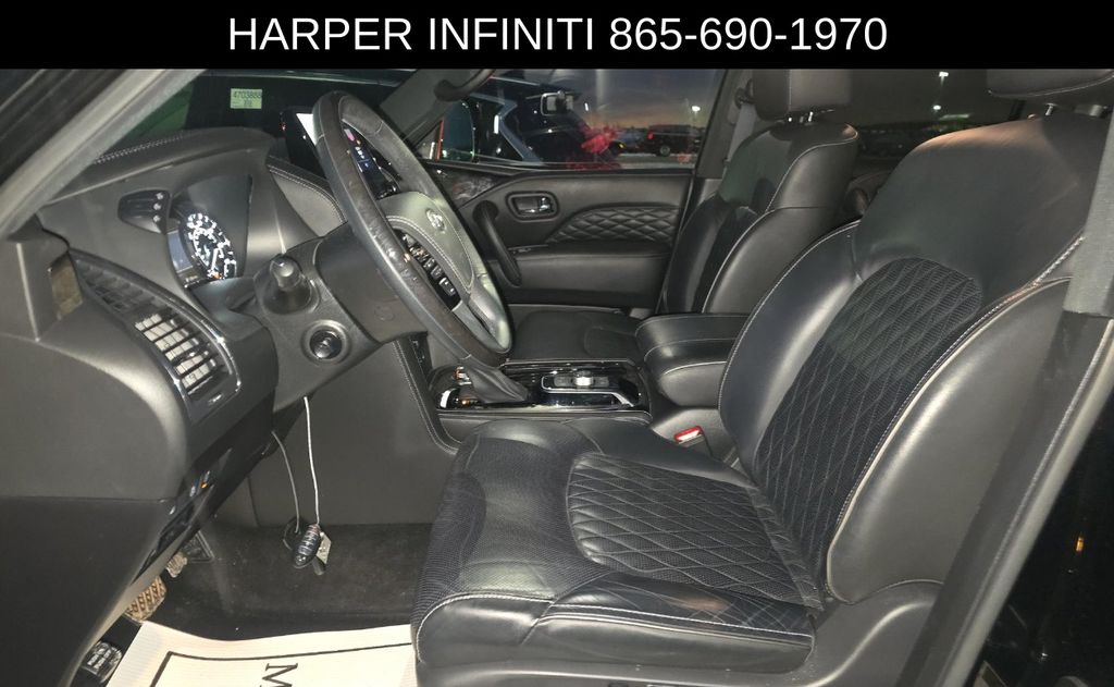 Harper INFINITI is pumped up to offer this good-looking 2023 INFINITI QX80 in Black Obsidian HARPER INFINITI believes in the quality of the vehicles we sell so well that we provide an UNLIMITED MILES, POWERTRAIN WARRANTY on every new and qualifying pre-owned vehicle it sells!!! This warranty is good at any ASE certified shop in the 48 continental United States!! Check out all these great options Cargo Package (Cargo Net, Carpeted Cargo Mat, Center Console Tray, Console Net, and First-Aid Kit), Split Bench Seat Package, Navigation system: INFINITI InTouch Navigation, 17 Speakers, 2.937 Axle Ratio, 3rd row seats: split-bench, 4-Wheel Disc Brakes, ABS brakes, Air Conditioning, Alloy wheels, AM/FM radio: SiriusXM, Anti-whiplash front head restraints, Auto High-beam Headlights, Auto tilt-away steering wheel, Auto-dimming door mirrors, Auto-dimming Rear-View mirror, Auto-leveling suspension, Automatic temperature control, Brake assist, Bumpers: body-color, Climate Controlled Front Bucket Seats, Compass, Delay-off headlights, Driver door bin, Driver vanity mirror, Dual front impact airbags, Dual front side impact airbags, Electronic Stability Control, Emergency communication system: INFINITI InTouch, Four wheel independent suspension, Front anti-roll bar, Front Bucket Seats, Front Center Armrest, Front dual zone A/C, Front fog lights, Front reading lights, Fully automatic headlights, Garage door transmitter: HomeLink, Heated door mirrors, Heated front seats, Heated rear seats, Heated steering wheel, Illuminated entry, INFINITI Radiant Illuminated Kick Plates, Leather Shift Knob, Leather steering wheel, Literature Kit, Low tire pressure warning, Memory seat, Occupant sensing airbag, Outside temperature display, Overhead airbag, Overhead console, Panic alarm, Passenger door bin, Passenger vanity mirror, Perforated Semi-Aniline Leather-Appointed Seats, Power door mirrors, Power driver seat, Power Liftgate, Power moonroof, Power passenger seat, Power steering, Power windows, Premium audio system: Bose, Radio data system, Radio: Bose Performance Audio System w/17 Speakers, Rain sensing wipers, Rear air conditioning, Rear anti-roll bar, Rear reading lights, Rear seat center armrest, Rear window defroster, Rear window wiper, Rear-Seat Entertainment, Reclining 3rd row seat, Remote keyless entry, Security system, Speed control, Speed-sensing steering, Split folding rear seat, Spoiler, Steering wheel memory, Steering wheel mounted audio controls, Tachometer, Telescoping steering wheel, Tilt steering wheel, Traction control, Trip computer, Turn signal indicator mirrors, Variably intermittent wipers, Ventilated front seats, Voltmeter, and Wheels: 22" x 8.0" Dark Chrome Cast Aluminum-Alloy.