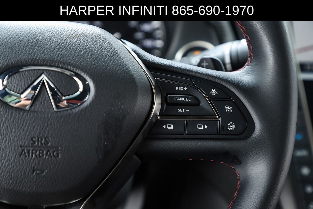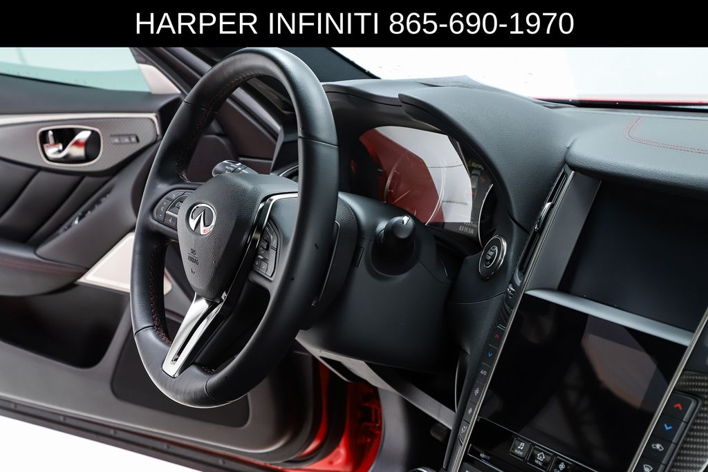 Harper INFINITI is pumped up to offer this charming 2024 INFINITI Q50 in Dynamic Sunstone Red HARPER INFINITI believes in the quality of the vehicles we sell so well that we provide an UNLIMITED MILES, POWERTRAIN WARRANTY on every new and qualifying pre-owned vehicle it sells!!! This warranty is good at any ASE certified shop in the 48 continental United States!! Check out all these great options Navigation system: INFINITI InTouch Navigation, 16 Speakers, 4-Wheel Disc Brakes, ABS brakes, Adaptive suspension, Air Conditioning, Alloy wheels, AM/FM radio: SiriusXM, Auto High-beam Headlights, Auto tilt-away steering wheel, Auto-dimming door mirrors, Auto-dimming Rear-View mirror, Automatic temperature control, Blind Spot Warning, Brake assist, Bumpers: body-color, CD player, Compass, Delay-off headlights, Driver door bin, Driver vanity mirror, Dual front impact airbags, Dual front side impact airbags, Electronic Stability Control, Emergency communication system: INFINITI Connection, Exclusive Paint - Dynamic Sunstone Red, Exterior Parking Camera Rear, Four wheel independent suspension, Front anti-roll bar, Front Bucket Seats, Front Center Armrest, Front dual zone A/C, Front fog lights, Front reading lights, Fully automatic headlights, Garage door transmitter: HomeLink, Heated door mirrors, Heated front seats, Heated Front Sport Bucket Seats, Heated steering wheel, Illuminated entry, Leather Shift Knob, Leather steering wheel, Literature Kit, Low tire pressure warning, Memory seat, Occupant sensing airbag, Outside temperature display, Overhead airbag, Overhead console, Panic alarm, Passenger door bin, Passenger vanity mirror, Power door mirrors, Power driver seat, Power moonroof, Power passenger seat, Power steering, Power windows, Quilted Semi-Aniline Leather-Appointed Seating, Radiant Grille Emblem, Radio data system, Radio: INFINITI InTouch w/Navigation, Rain sensing wipers, Rear anti-roll bar, Rear reading lights, Rear seat center armrest, Rear window defroster, Remote keyless entry, Security system, Speed control, Speed-Sensitive Wipers, Split folding rear seat, Steering wheel memory, Steering wheel mounted audio controls, Tachometer, Telescoping steering wheel, Tilt steering wheel, Traction control, Trip computer, Turn signal indicator mirrors, Variably intermittent wipers, and Wheels: 19" x 9" Fr/19" x 9.5" Rr.
