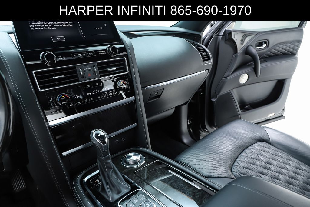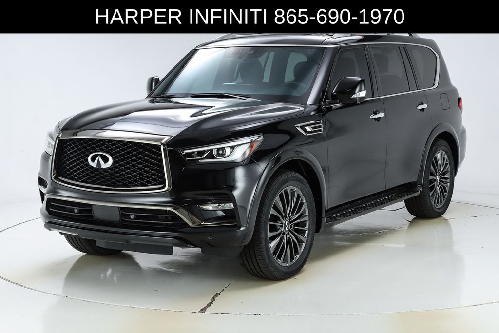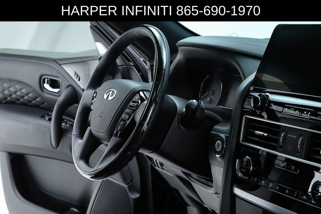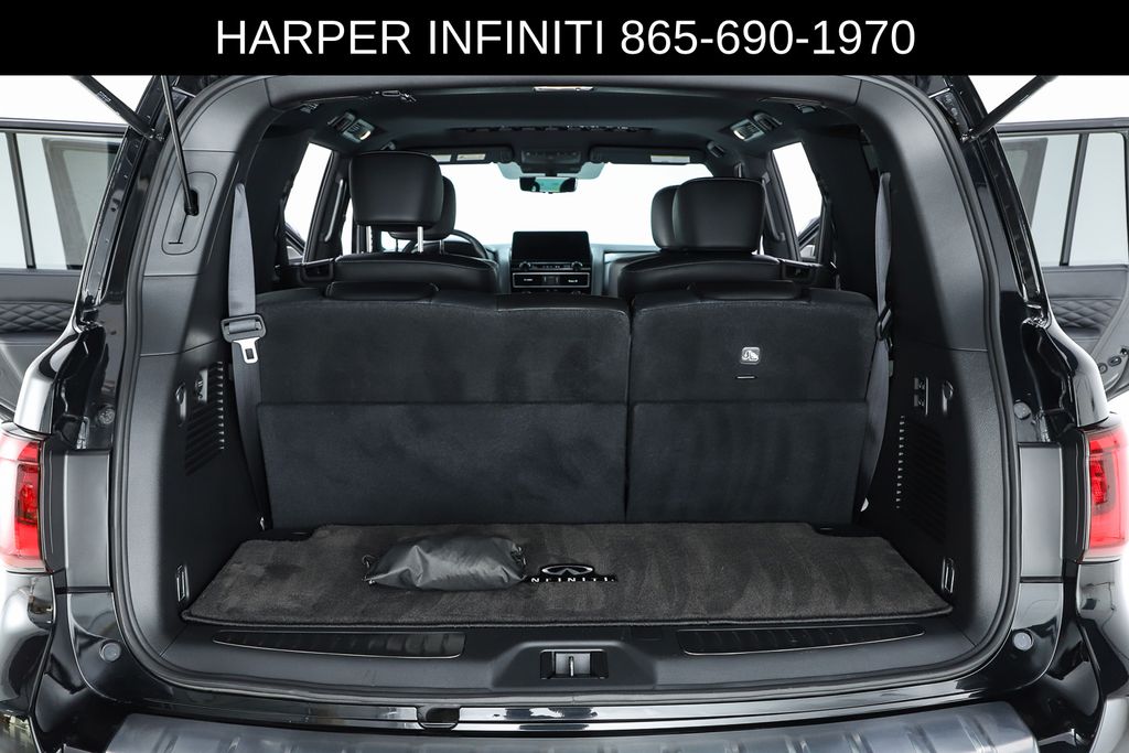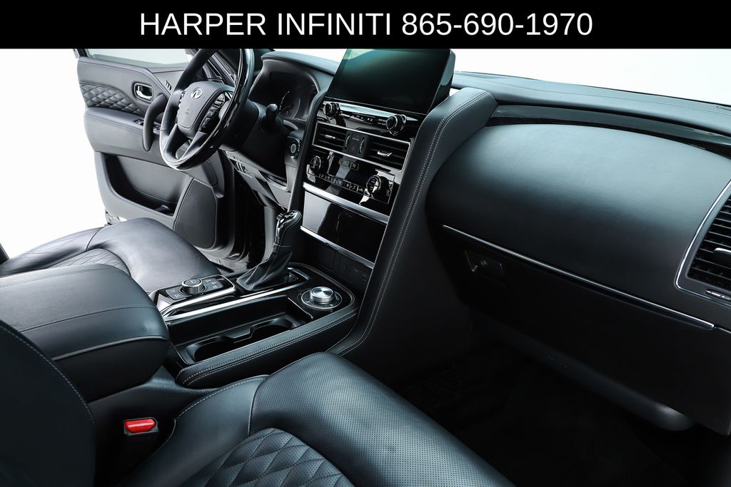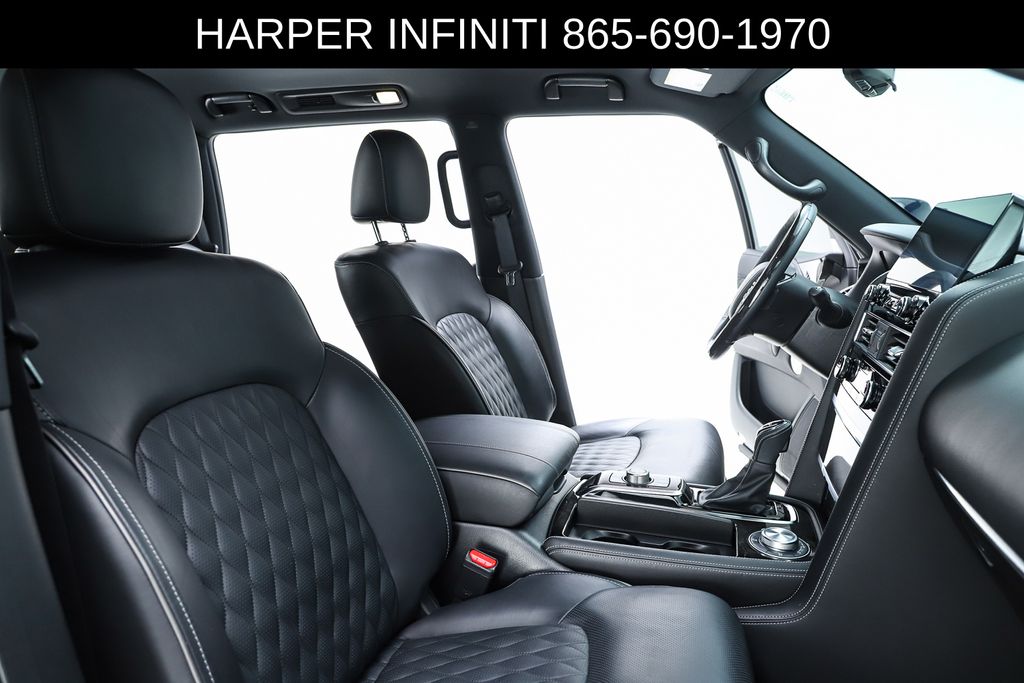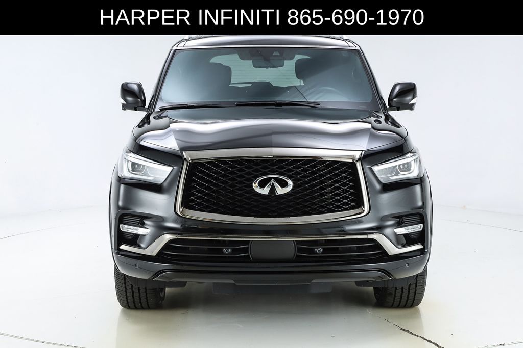 Harper INFINITI is proud to offer this fantastic 2024 INFINITI QX80 in Mineral Black HARPER INFINITI believes in the quality of the vehicles we sell so well that we provide an UNLIMITED MILES, POWERTRAIN WARRANTY on every new and qualifying pre-owned vehicle it sells!!! This warranty is good at any ASE certified shop in the 48 continental United States!! Check out all these great options Cargo Package (Console Net, First-Aid Kit, Moisture-Resistant Rear Cargo Carpet, and Nylon-Cord Cargo Net), Sensory Dark Chrome Appearance Package (Black Painted Mirror Caps, Dark Chrome Front Fascia Trim, and Dark Chrome Grille Surround), Navigation system: INFINITI InTouch Navigation, 17 Speakers, 2.937 Axle Ratio, 3rd row seats: bench, 4-Wheel Disc Brakes, ABS brakes, Air Conditioning, Alloy wheels, AM/FM radio: SiriusXM, Anti-whiplash front head restraints, Apple CarPlay/Android Auto, Auto High-beam Headlights, Auto tilt-away steering wheel, Auto-dimming door mirrors, Auto-dimming Rear-View mirror, Auto-leveling suspension, Automatic temperature control, Brake assist, Bumpers: body-color, Climate Controlled Front Bucket Seats, Compass, Delay-off headlights, Driver door bin, Driver vanity mirror, Dual front impact airbags, Dual front side impact airbags, Electronic Stability Control, Emergency communication system: INFINITI InTouch, Four wheel independent suspension, Front anti-roll bar, Front Bucket Seats, Front Center Armrest, Front dual zone A/C, Front fog lights, Front reading lights, Fully automatic headlights, Garage door transmitter: HomeLink, Heated door mirrors, Heated front seats, Heated rear seats, Heated steering wheel, Illuminated entry, INFINITI Radiant Illuminated Cargo Scuff Plates, INFINITI Radiant Welcome Lighting, Leather Shift Knob, Leather steering wheel, Literature Kit, Low tire pressure warning, Memory seat, Occupant sensing airbag, Outside temperature display, Overhead airbag, Overhead console, Panic alarm, Passenger door bin, Passenger vanity mirror, Perforated Semi-Aniline Leather-Appointed Seats, Power door mirrors, Power driver seat, Power Liftgate, Power moonroof, Power passenger seat, Power steering, Power windows, Radio data system, Radio: Bose Performance Audio System w/17 Speakers, Rain sensing wipers, Rear air conditioning, Rear anti-roll bar, Rear reading lights, Rear seat center armrest, Rear window defroster, Rear window wiper, Reclining 3rd row seat, Remote keyless entry, Roof Rail Cross Bars, Security system, Speed control, Speed-sensing steering, Split folding rear seat, Spoiler, Steering wheel memory, Steering wheel mounted audio controls, Tachometer, Telescoping steering wheel, Tilt steering wheel, Traction control, Trip computer, Turn signal indicator mirrors, USB Charging Cable Set, Variably intermittent wipers, Ventilated front seats, Voltmeter, and Wheels: 22" Dark Chrome Cast Aluminum-Alloy.