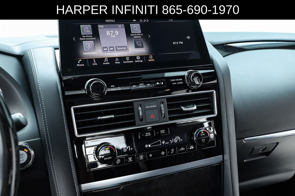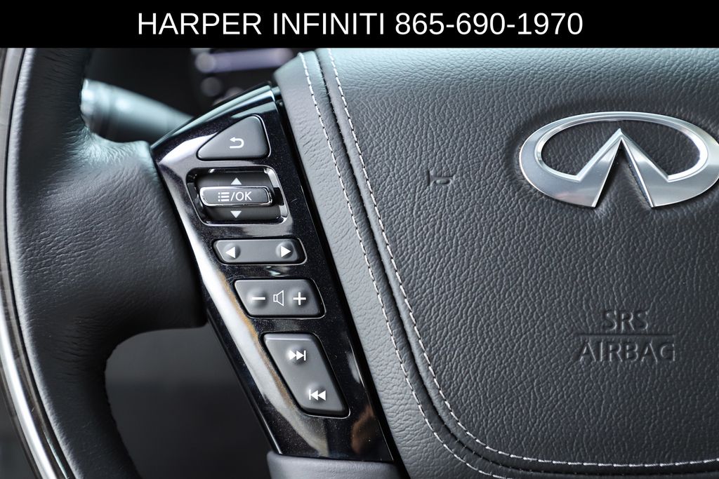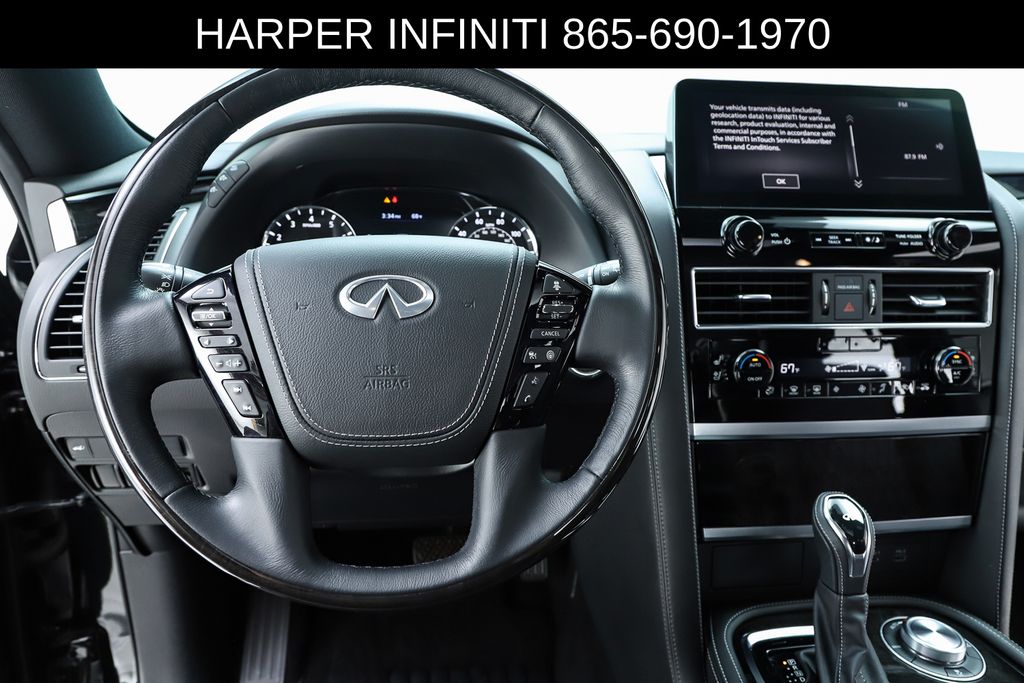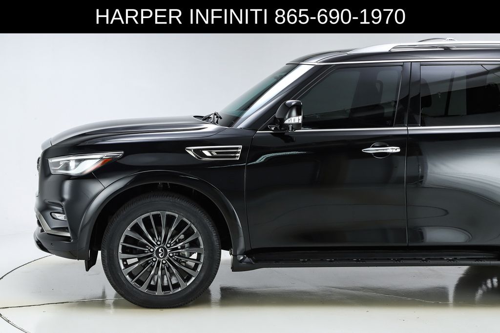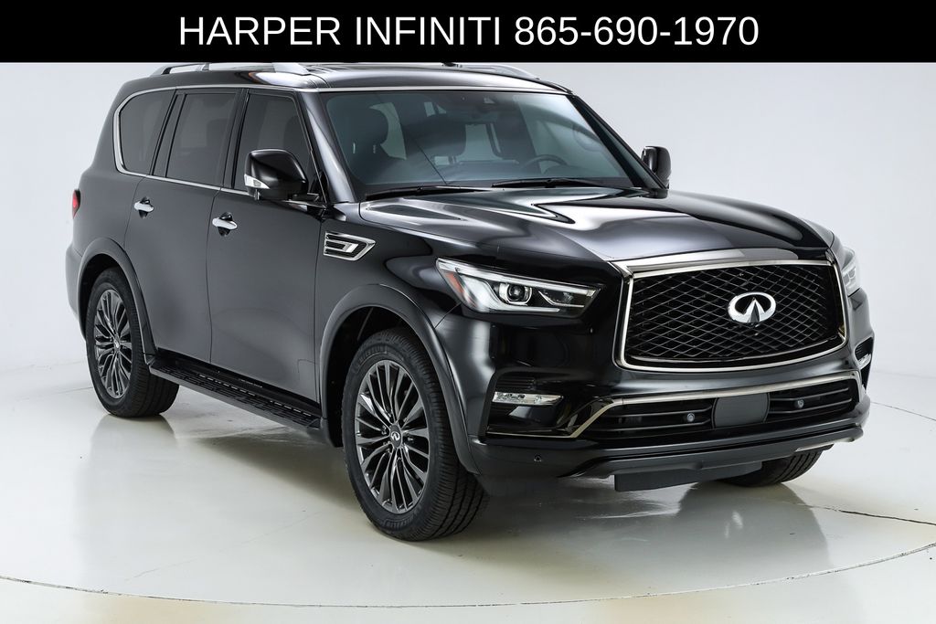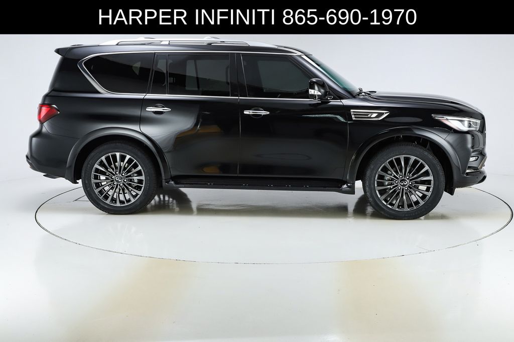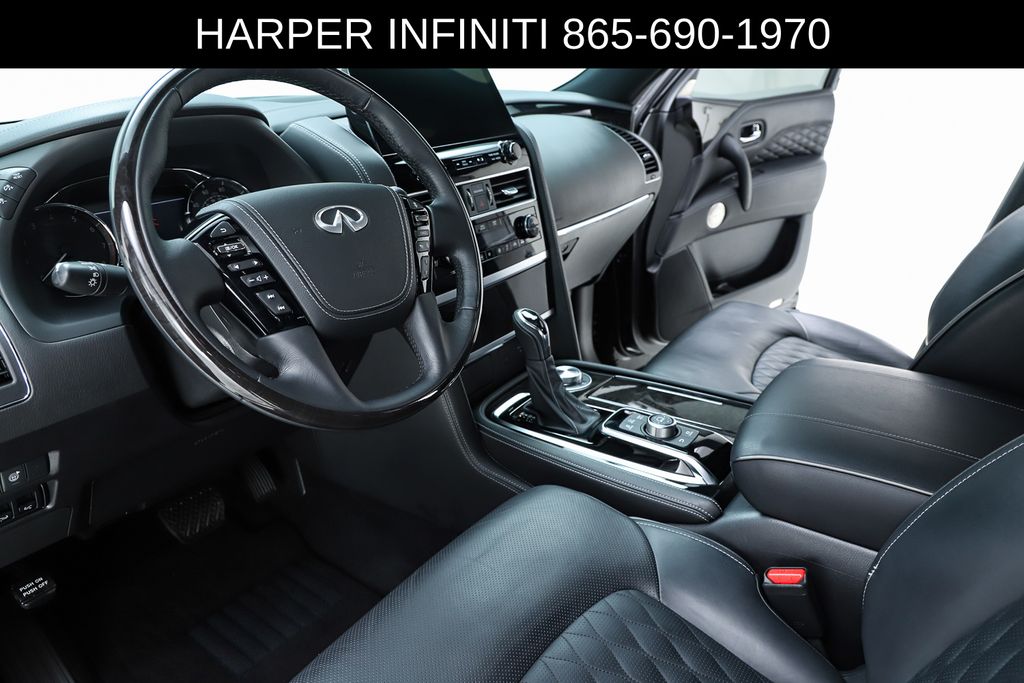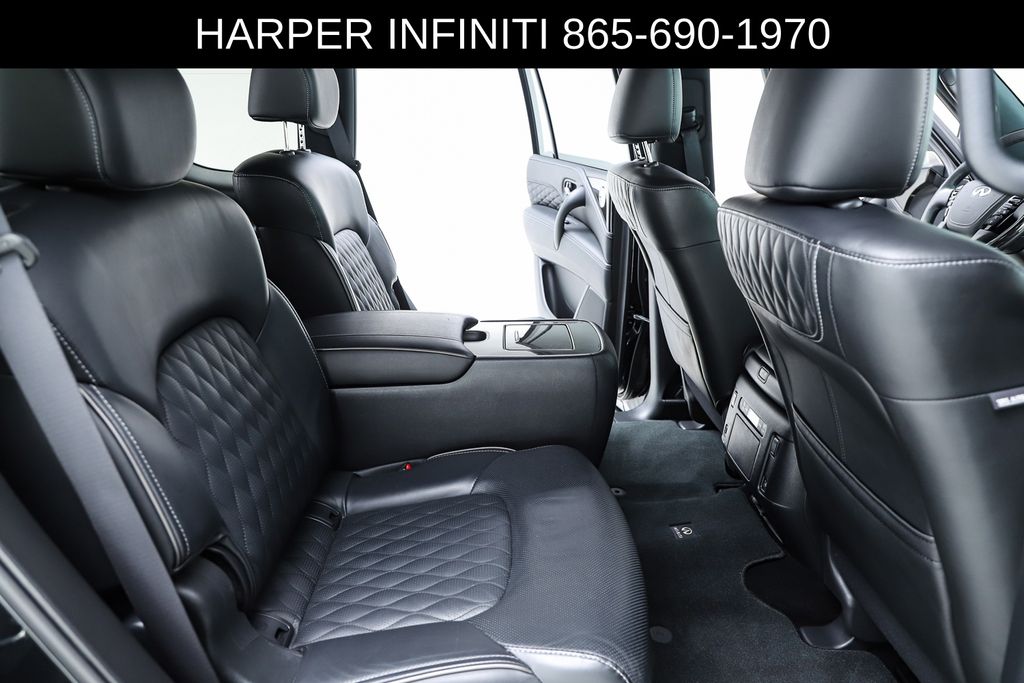 Harper INFINITI is proud to offer this fantastic 2024 INFINITI QX80 in Mineral Black HARPER INFINITI believes in the quality of the vehicles we sell so well that we provide an UNLIMITED MILES, POWERTRAIN WARRANTY on every new and qualifying pre-owned vehicle it sells!!! This warranty is good at any ASE certified shop in the 48 continental United States!! Check out all these great options Cargo Package (Console Net, First-Aid Kit, Moisture-Resistant Rear Cargo Carpet, and Nylon-Cord Cargo Net), Sensory Dark Chrome Appearance Package (Black Painted Mirror Caps, Dark Chrome Front Fascia Trim, and Dark Chrome Grille Surround), Navigation system: INFINITI InTouch Navigation, 17 Speakers, 2.937 Axle Ratio, 3rd row seats: bench, 4-Wheel Disc Brakes, ABS brakes, Air Conditioning, Alloy wheels, AM/FM radio: SiriusXM, Anti-whiplash front head restraints, Apple CarPlay/Android Auto, Auto High-beam Headlights, Auto tilt-away steering wheel, Auto-dimming door mirrors, Auto-dimming Rear-View mirror, Auto-leveling suspension, Automatic temperature control, Brake assist, Bumpers: body-color, Climate Controlled Front Bucket Seats, Compass, Delay-off headlights, Driver door bin, Driver vanity mirror, Dual front impact airbags, Dual front side impact airbags, Electronic Stability Control, Emergency communication system: INFINITI InTouch, Four wheel independent suspension, Front anti-roll bar, Front Bucket Seats, Front Center Armrest, Front dual zone A/C, Front fog lights, Front reading lights, Fully automatic headlights, Garage door transmitter: HomeLink, Heated door mirrors, Heated front seats, Heated rear seats, Heated steering wheel, Illuminated entry, INFINITI Radiant Illuminated Cargo Scuff Plates, INFINITI Radiant Welcome Lighting, Leather Shift Knob, Leather steering wheel, Literature Kit, Low tire pressure warning, Memory seat, Occupant sensing airbag, Outside temperature display, Overhead airbag, Overhead console, Panic alarm, Passenger door bin, Passenger vanity mirror, Perforated Semi-Aniline Leather-Appointed Seats, Power door mirrors, Power driver seat, Power Liftgate, Power moonroof, Power passenger seat, Power steering, Power windows, Radio data system, Radio: Bose Performance Audio System w/17 Speakers, Rain sensing wipers, Rear air conditioning, Rear anti-roll bar, Rear reading lights, Rear seat center armrest, Rear window defroster, Rear window wiper, Reclining 3rd row seat, Remote keyless entry, Roof Rail Cross Bars, Security system, Speed control, Speed-sensing steering, Split folding rear seat, Spoiler, Steering wheel memory, Steering wheel mounted audio controls, Tachometer, Telescoping steering wheel, Tilt steering wheel, Traction control, Trip computer, Turn signal indicator mirrors, USB Charging Cable Set, Variably intermittent wipers, Ventilated front seats, Voltmeter, and Wheels: 22" Dark Chrome Cast Aluminum-Alloy.