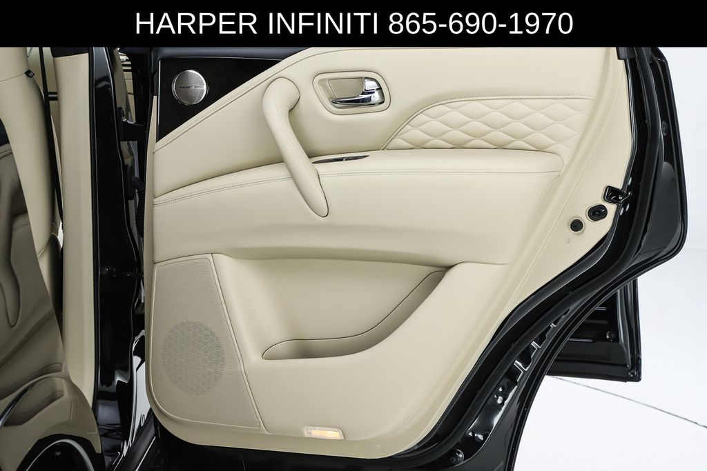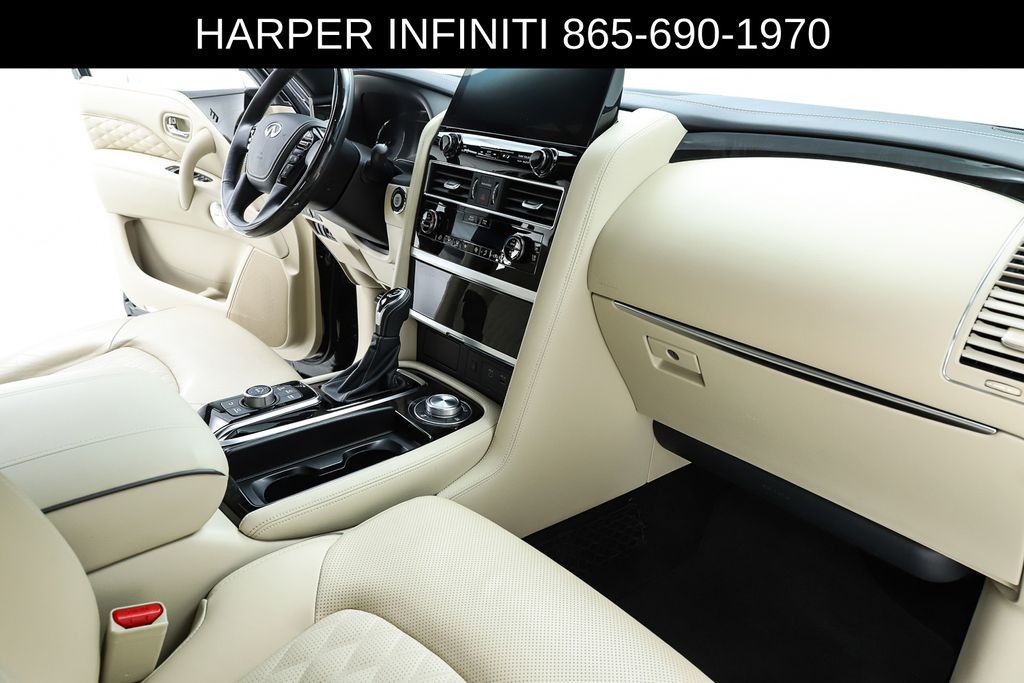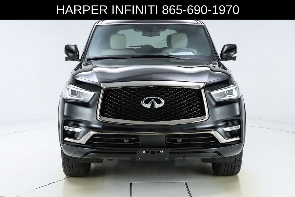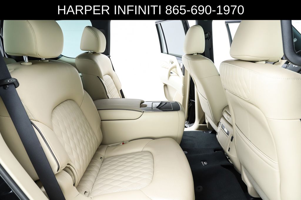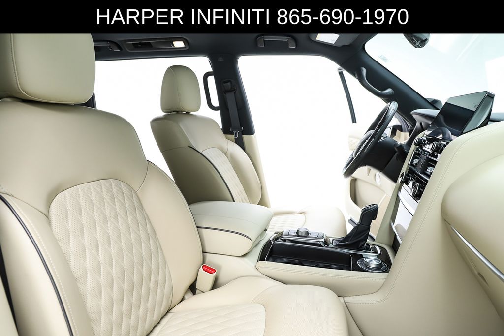 Harper INFINITI is pumped up to offer this fantastic 2024 INFINITI QX80 in Mineral Black HARPER INFINITI believes in the quality of the vehicles we sell so well that we provide an UNLIMITED MILES, POWERTRAIN WARRANTY on every new and qualifying pre-owned vehicle it sells!!! This warranty is good at any ASE certified shop in the 48 continental United States!! Check out all these great options Cargo Package (Console Net, First-Aid Kit, Moisture-Resistant Rear Cargo Carpet, and Nylon-Cord Cargo Net), Sensory Dark Chrome Appearance Package (Black Painted Mirror Caps, Dark Chrome Front Fascia Trim, and Dark Chrome Grille Surround), Navigation system: INFINITI InTouch Navigation, 17 Speakers, 2.937 Axle Ratio, 3rd row seats: bench, 4-Wheel Disc Brakes, ABS brakes, Air Conditioning, Alloy wheels, AM/FM radio: SiriusXM, Anti-whiplash front head restraints, Apple CarPlay/Android Auto, Auto High-beam Headlights, Auto tilt-away steering wheel, Auto-dimming door mirrors, Auto-dimming Rear-View mirror, Auto-leveling suspension, Automatic temperature control, Brake assist, Bumpers: body-color, Climate Controlled Front Bucket Seats, Compass, Delay-off headlights, Driver door bin, Driver vanity mirror, Dual front impact airbags, Dual front side impact airbags, Electronic Stability Control, Emergency communication system: INFINITI InTouch, Four wheel independent suspension, Front anti-roll bar, Front Bucket Seats, Front Center Armrest, Front dual zone A/C, Front fog lights, Front reading lights, Fully automatic headlights, Garage door transmitter: HomeLink, Heated door mirrors, Heated front seats, Heated rear seats, Heated steering wheel, Illuminated entry, Leather Shift Knob, Leather steering wheel, Literature Kit, Low tire pressure warning, Memory seat, Occupant sensing airbag, Outside temperature display, Overhead airbag, Overhead console, Panic alarm, Passenger door bin, Passenger vanity mirror, Perforated Semi-Aniline Leather-Appointed Seats, Power door mirrors, Power driver seat, Power Liftgate, Power moonroof, Power passenger seat, Power steering, Power windows, Radio data system, Radio: Bose Performance Audio System w/17 Speakers, Rain sensing wipers, Rear air conditioning, Rear anti-roll bar, Rear reading lights, Rear seat center armrest, Rear window defroster, Rear window wiper, Reclining 3rd row seat, Remote keyless entry, Roof Rail Cross Bars, Security system, Speed control, Speed-sensing steering, Split folding rear seat, Spoiler, Steering wheel memory, Steering wheel mounted audio controls, Tachometer, Telescoping steering wheel, Tilt steering wheel, Traction control, Trip computer, Turn signal indicator mirrors, Variably intermittent wipers, Ventilated front seats, Voltmeter, and Wheels: 22" Dark Chrome Cast Aluminum-Alloy.