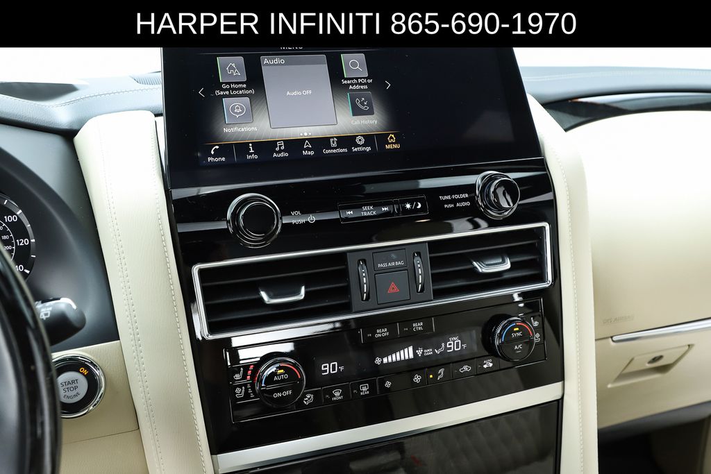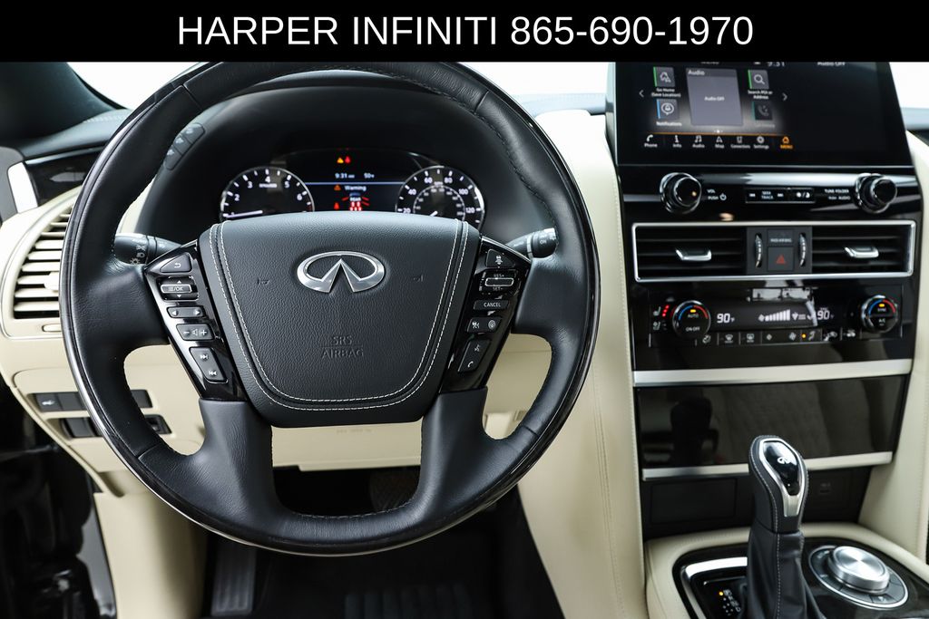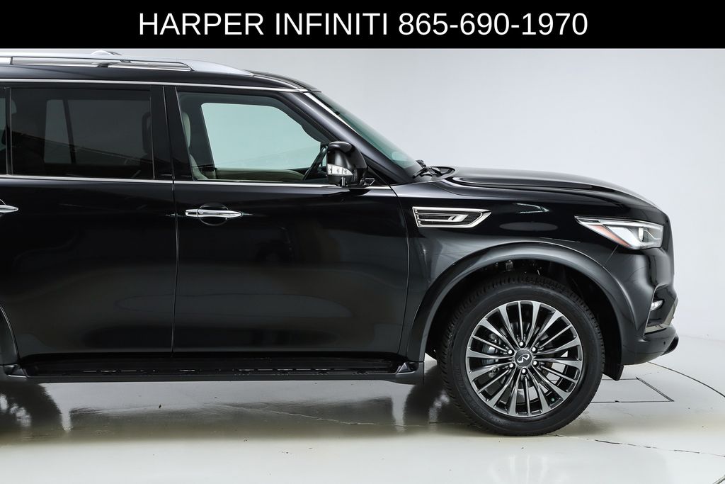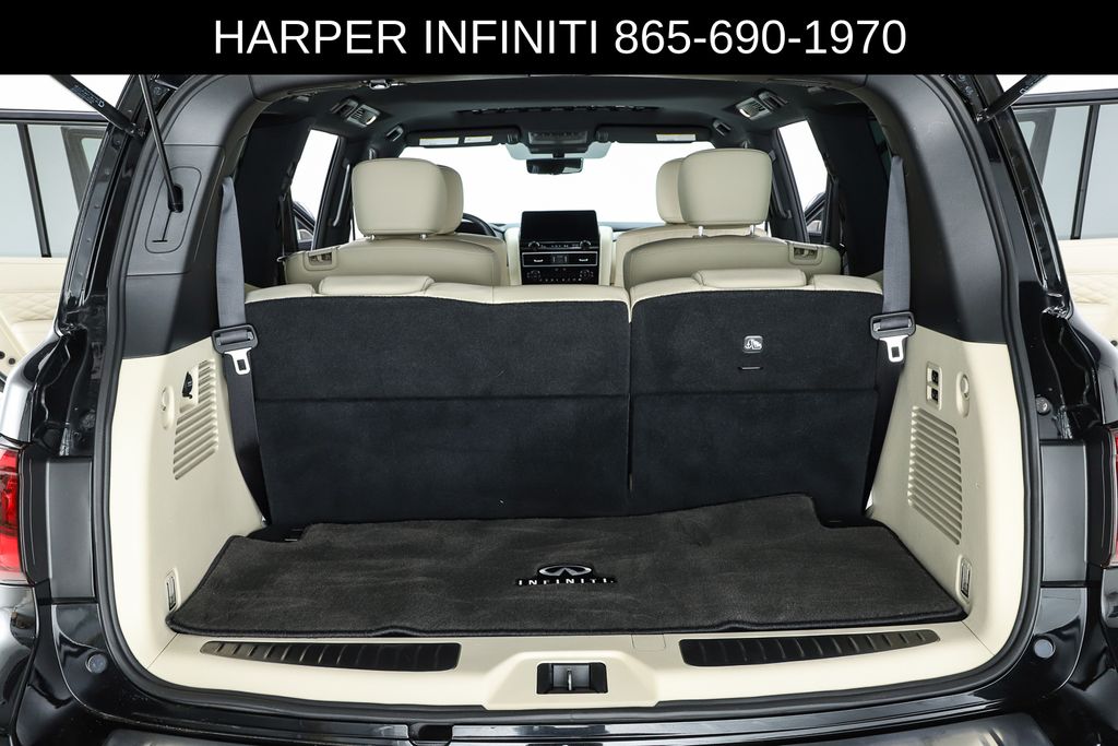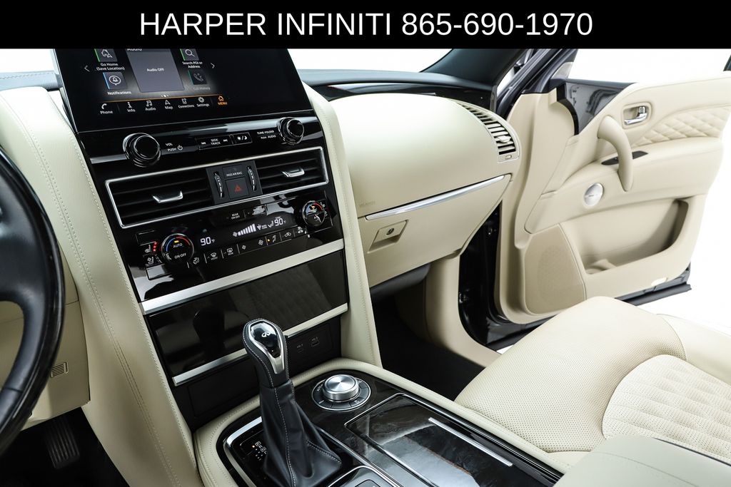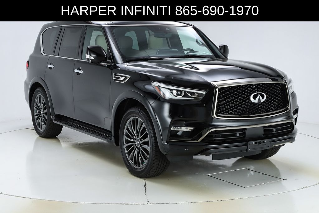 Harper INFINITI is pumped up to offer this fantastic 2024 INFINITI QX80 in Mineral Black HARPER INFINITI believes in the quality of the vehicles we sell so well that we provide an UNLIMITED MILES, POWERTRAIN WARRANTY on every new and qualifying pre-owned vehicle it sells!!! This warranty is good at any ASE certified shop in the 48 continental United States!! Check out all these great options Cargo Package (Console Net, First-Aid Kit, Moisture-Resistant Rear Cargo Carpet, and Nylon-Cord Cargo Net), Sensory Dark Chrome Appearance Package (Black Painted Mirror Caps, Dark Chrome Front Fascia Trim, and Dark Chrome Grille Surround), Navigation system: INFINITI InTouch Navigation, 17 Speakers, 2.937 Axle Ratio, 3rd row seats: bench, 4-Wheel Disc Brakes, ABS brakes, Air Conditioning, Alloy wheels, AM/FM radio: SiriusXM, Anti-whiplash front head restraints, Apple CarPlay/Android Auto, Auto High-beam Headlights, Auto tilt-away steering wheel, Auto-dimming door mirrors, Auto-dimming Rear-View mirror, Auto-leveling suspension, Automatic temperature control, Brake assist, Bumpers: body-color, Climate Controlled Front Bucket Seats, Compass, Delay-off headlights, Driver door bin, Driver vanity mirror, Dual front impact airbags, Dual front side impact airbags, Electronic Stability Control, Emergency communication system: INFINITI InTouch, Four wheel independent suspension, Front anti-roll bar, Front Bucket Seats, Front Center Armrest, Front dual zone A/C, Front fog lights, Front reading lights, Fully automatic headlights, Garage door transmitter: HomeLink, Heated door mirrors, Heated front seats, Heated rear seats, Heated steering wheel, Illuminated entry, Leather Shift Knob, Leather steering wheel, Literature Kit, Low tire pressure warning, Memory seat, Occupant sensing airbag, Outside temperature display, Overhead airbag, Overhead console, Panic alarm, Passenger door bin, Passenger vanity mirror, Perforated Semi-Aniline Leather-Appointed Seats, Power door mirrors, Power driver seat, Power Liftgate, Power moonroof, Power passenger seat, Power steering, Power windows, Radio data system, Radio: Bose Performance Audio System w/17 Speakers, Rain sensing wipers, Rear air conditioning, Rear anti-roll bar, Rear reading lights, Rear seat center armrest, Rear window defroster, Rear window wiper, Reclining 3rd row seat, Remote keyless entry, Roof Rail Cross Bars, Security system, Speed control, Speed-sensing steering, Split folding rear seat, Spoiler, Steering wheel memory, Steering wheel mounted audio controls, Tachometer, Telescoping steering wheel, Tilt steering wheel, Traction control, Trip computer, Turn signal indicator mirrors, Variably intermittent wipers, Ventilated front seats, Voltmeter, and Wheels: 22" Dark Chrome Cast Aluminum-Alloy.