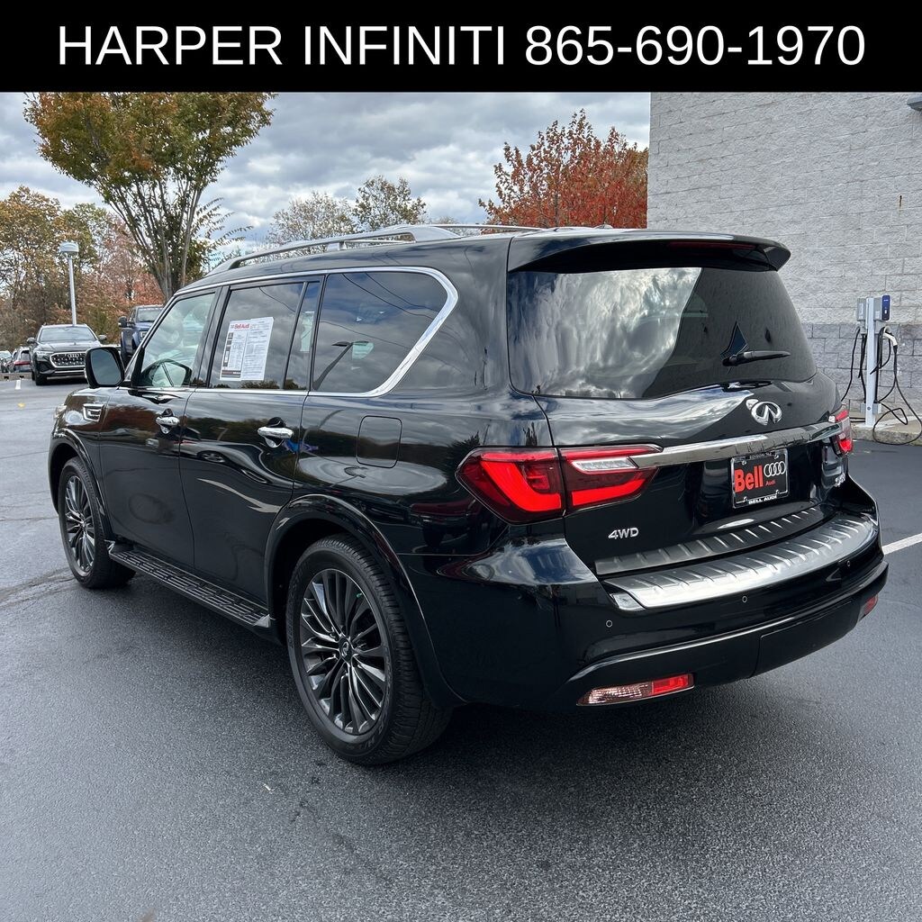 Harper INFINITI is excited to offer this wonderful 2024 INFINITI QX80 in Mineral Black HARPER INFINITI believes in the quality of the vehicles we sell so well that we provide an UNLIMITED MILES, POWERTRAIN WARRANTY on every new and qualifying pre-owned vehicle it sells!!! This warranty is good at any ASE certified shop in the 48 continental United States!! Check out all these great options Cargo Package (Console Net, First-Aid Kit, Moisture-Resistant Rear Cargo Carpet, and Nylon-Cord Cargo Net), Sensory Dark Chrome Appearance Package (Black Painted Mirror Caps, Dark Chrome Front Fascia Trim, and Dark Chrome Grille Surround), Navigation system: INFINITI InTouch Navigation, 17 Speakers, 2.937 Axle Ratio, 3rd row seats: bench, 4-Wheel Disc Brakes, ABS brakes, Air Conditioning, Alloy wheels, AM/FM radio: SiriusXM, Anti-whiplash front head restraints, Apple CarPlay/Android Auto, Auto High-beam Headlights, Auto tilt-away steering wheel, Auto-dimming door mirrors, Auto-dimming Rear-View mirror, Auto-leveling suspension, Automatic temperature control, Brake assist, Bumpers: body-color, Climate Controlled Front Bucket Seats, Compass, Delay-off headlights, Driver door bin, Driver vanity mirror, Dual front impact airbags, Dual front side impact airbags, Electronic Stability Control, Emergency communication system: INFINITI InTouch, Four wheel independent suspension, Front anti-roll bar, Front Bucket Seats, Front Center Armrest, Front dual zone A/C, Front fog lights, Front reading lights, Fully automatic headlights, Garage door transmitter: HomeLink, Heated door mirrors, Heated front seats, Heated rear seats, Heated steering wheel, Illuminated entry, Leather Shift Knob, Leather steering wheel, Literature Kit, Low tire pressure warning, Memory seat, Occupant sensing airbag, Outside temperature display, Overhead airbag, Overhead console, Panic alarm, Passenger door bin, Passenger vanity mirror, Perforated Semi-Aniline Leather-Appointed Seats, Power door mirrors, Power driver seat, Power Liftgate, Power moonroof, Power passenger seat, Power steering, Power windows, Radio data system, Radio: Bose Performance Audio System w/17 Speakers, Rain sensing wipers, Rear air conditioning, Rear anti-roll bar, Rear reading lights, Rear seat center armrest, Rear window defroster, Rear window wiper, Reclining 3rd row seat, Remote keyless entry, Roof Rail Cross Bars, Security system, Speed control, Speed-sensing steering, Split folding rear seat, Spoiler, Steering wheel memory, Steering wheel mounted audio controls, Tachometer, Telescoping steering wheel, Tilt steering wheel, Traction control, Trip computer, Turn signal indicator mirrors, Variably intermittent wipers, Ventilated front seats, Voltmeter, and Wheels: 22" Dark Chrome Cast Aluminum-Alloy.