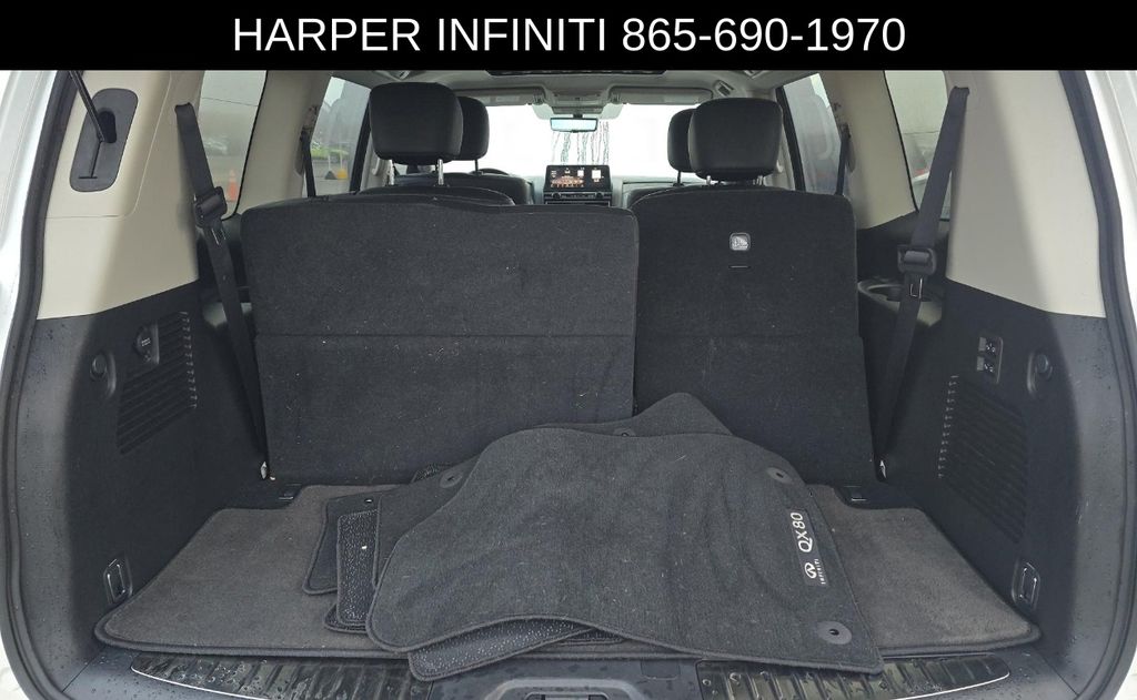 Harper Infiniti is excited to offer this magnificent QX80 LUXE in White. HARPER INFINITI believes in the quality of the vehicles we sell so well that we provide an UNLIMITED MILES, POWERTRAIN WARRANTY on every new and qualifying pre-owned vehicle it sells!!! This warranty is good at any ASE certified shop in the 48 continental United States!! Check out all these great options - Navigation system: INFINITI InTouch Navigation, Cargo Package, 13 Speakers, Bose Premium Audio System, Dual-zone automatic climate control, Power driver's seat with memory, Leather-appointed seating, Heated front seats, Power liftgate.