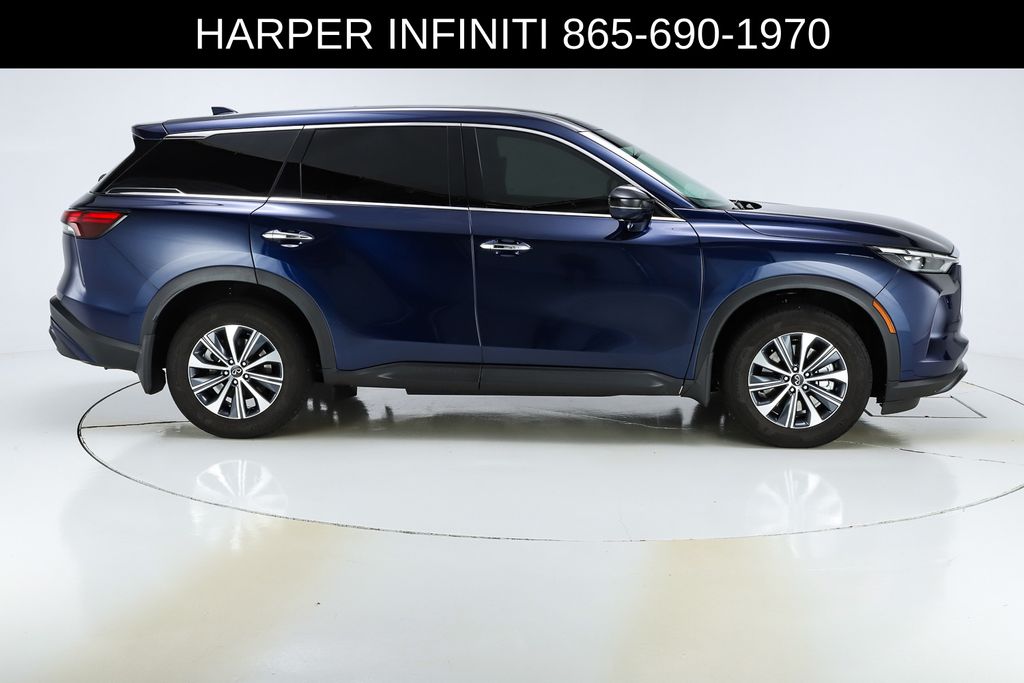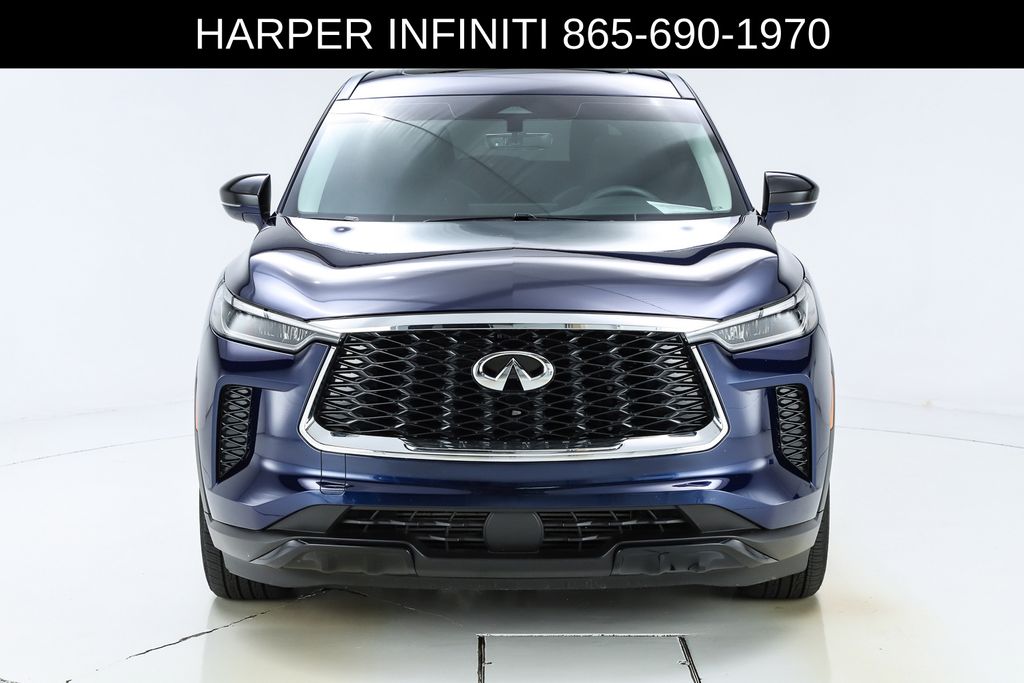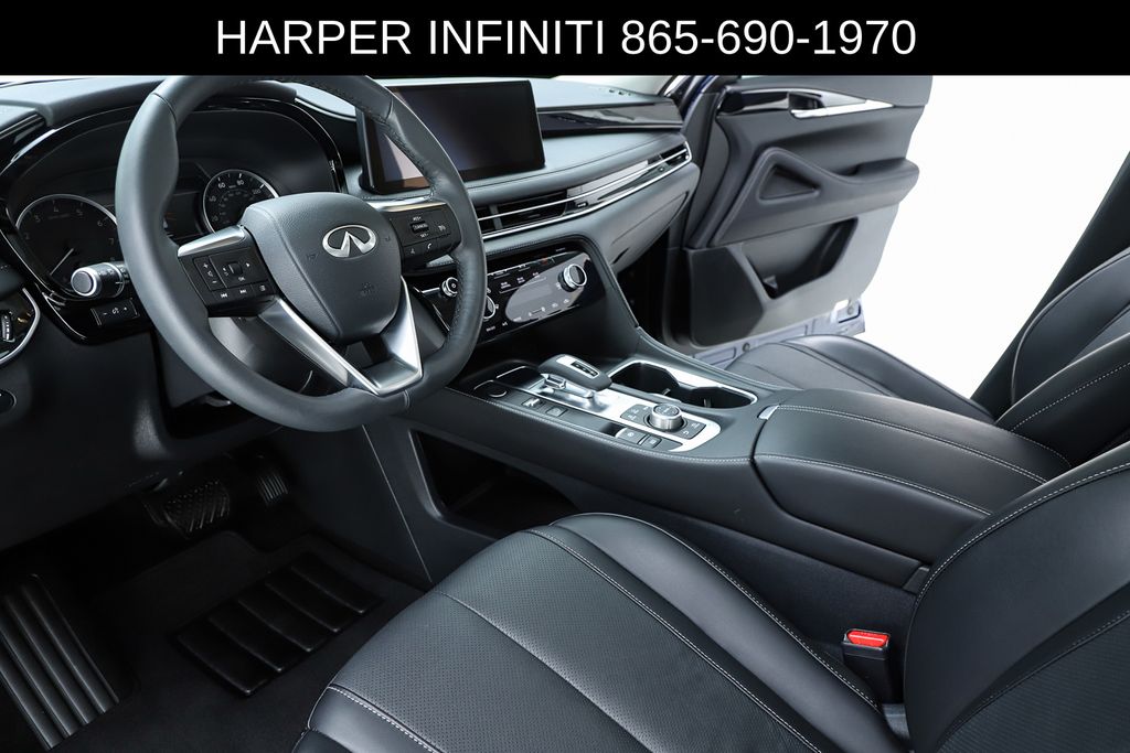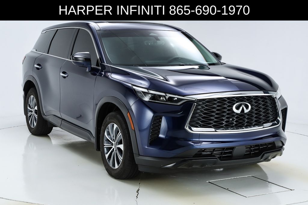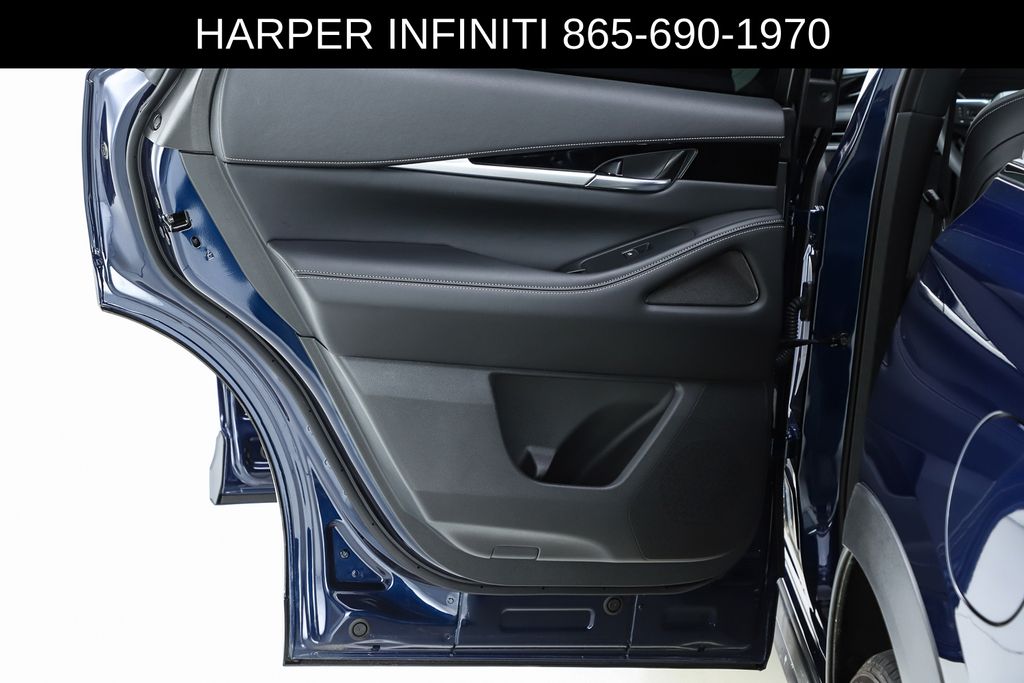 Harper INFINITI is pumped up to offer this stunning 2025 INFINITI QX60 in Grand Blue HARPER INFINITI believes in the quality of the vehicles we sell so well that we provide an UNLIMITED MILES, POWERTRAIN WARRANTY on every new and qualifying pre-owned vehicle it sells!!! This warranty is good at any ASE certified shop in the 48 continental United States!! Check out all these great options 3rd row seats: bench, 4-Wheel Disc Brakes, 9 Speakers, ABS brakes, Air Conditioning, Alloy wheels, AM/FM radio: SiriusXM, Auto High-beam Headlights, Auto-dimming Rear-View mirror, Automatic temperature control, Blind Spot Warning, Brake assist, Delay-off headlights, Driver door bin, Driver vanity mirror, Dual front impact airbags, Dual front side impact airbags, Electronic Stability Control, Four wheel independent suspension, Front anti-roll bar, Front Bucket Seats, Front dual zone A/C, Front reading lights, Fully automatic headlights, Heated door mirrors, Heated front seats, Heated steering wheel, Illuminated entry, Knee airbag, Leather Shift Knob, Leather steering wheel, Leather-Appointed Seating Surfaces, Low tire pressure warning, Memory seat, Occupant sensing airbag, Outside temperature display, Overhead airbag, Overhead console, Panic alarm, Passenger door bin, Passenger vanity mirror, Power door mirrors, Power driver seat, Power Liftgate, Power moonroof, Power passenger seat, Power steering, Power windows, Radio data system, Rain sensing wipers, Rear air conditioning, Rear anti-roll bar, Rear Parking Sensors, Rear reading lights, Rear side impact airbag, Rear window defroster, Rear window wiper, Reclining 3rd row seat, Remote keyless entry, Security system, Speed control, Speed-sensing steering, Speed-Sensitive Wipers, Split folding rear seat, Spoiler, Steering wheel mounted audio controls, Tachometer, Telescoping steering wheel, Tilt steering wheel, Traction control, Trip computer, Turn signal indicator mirrors, and Variably intermittent wipers.